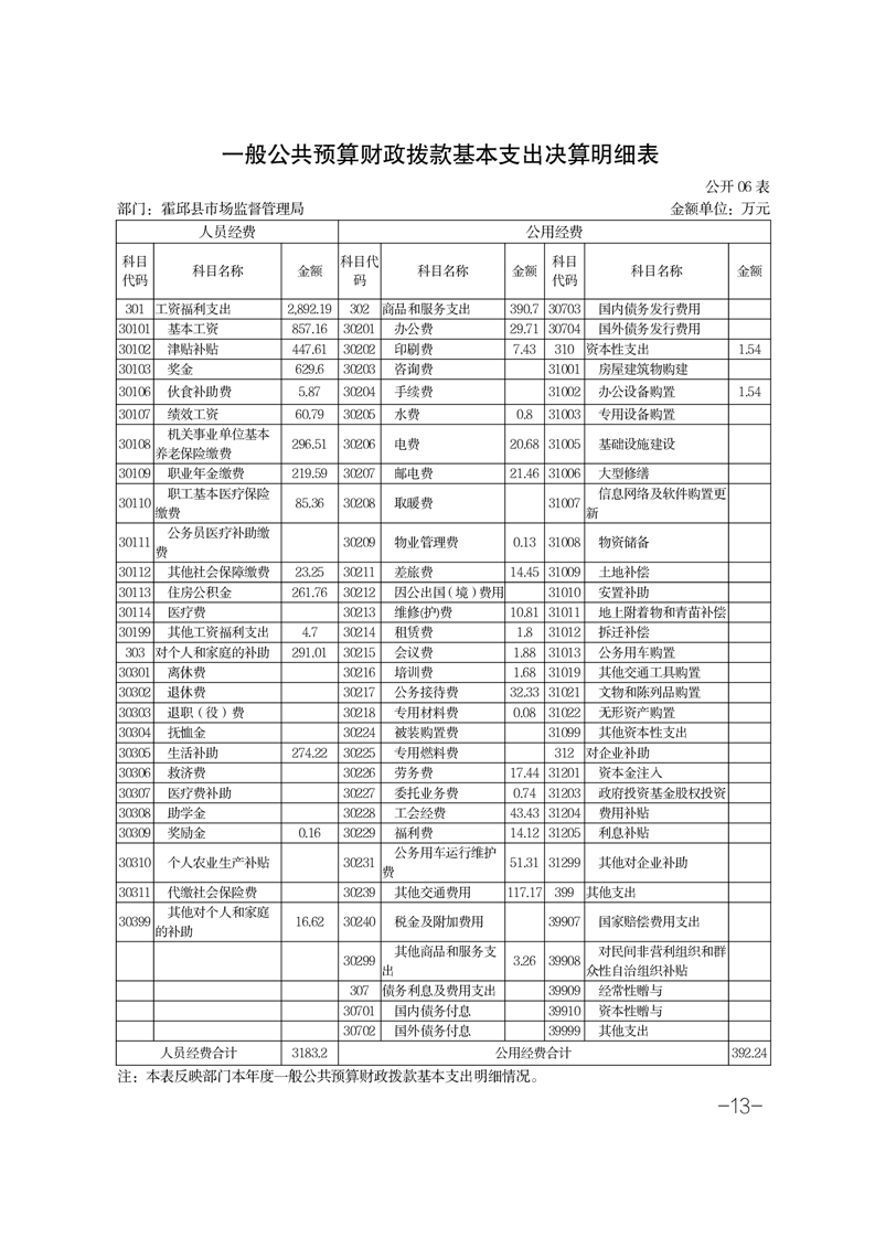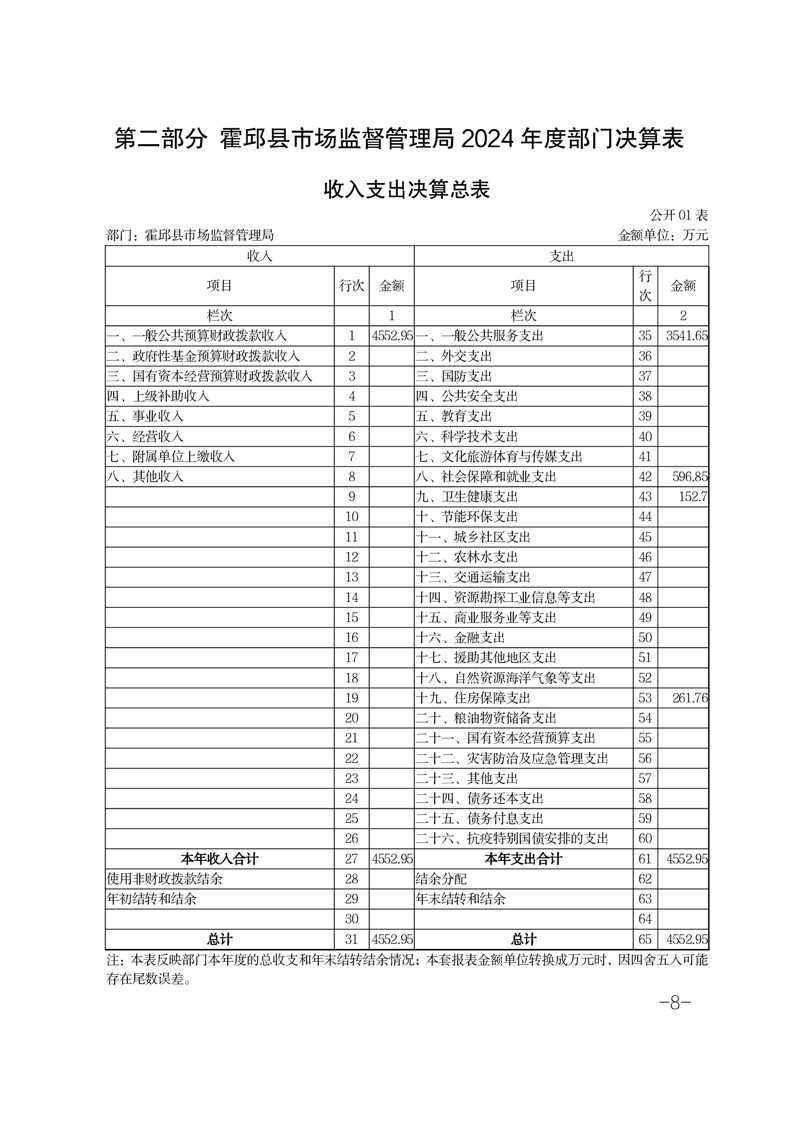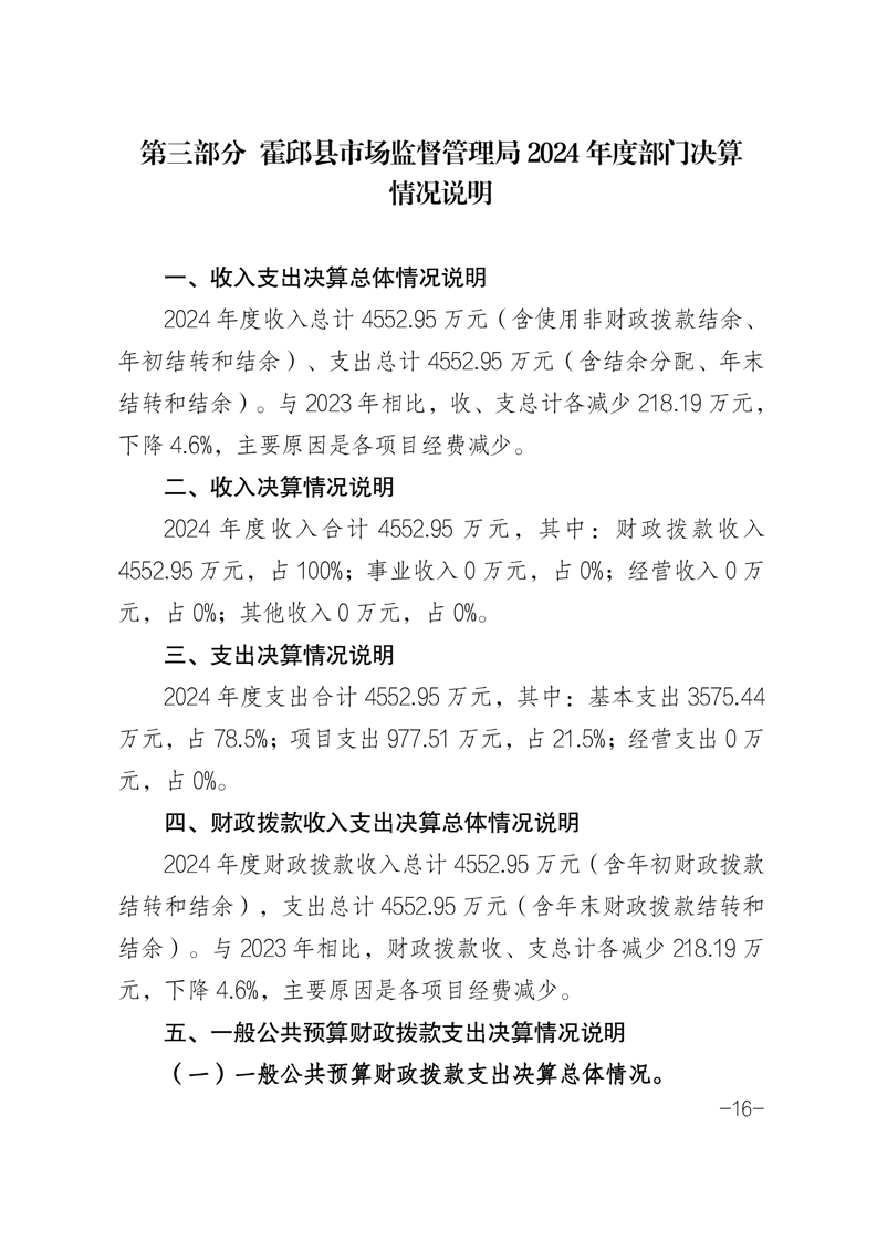霍邱县市场监督管理局2024年部门决算