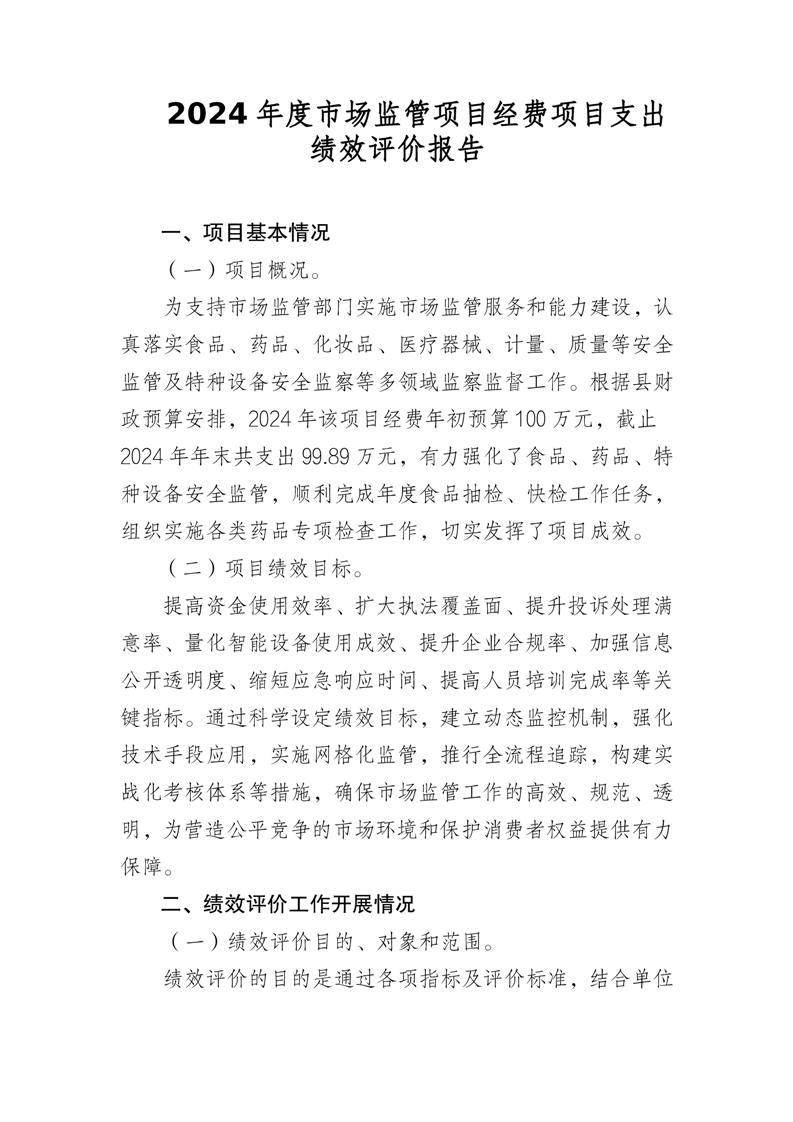 2024 年度市场监管项目经费项目支出绩效评价报告