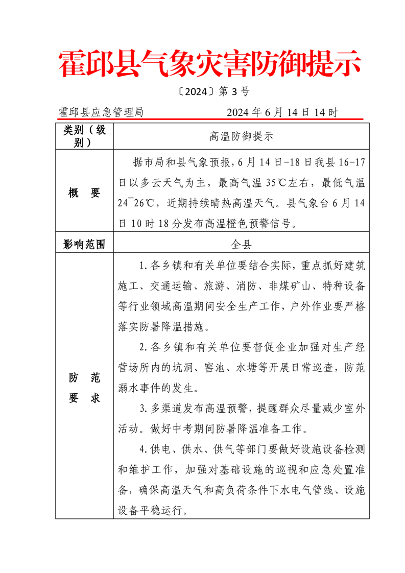 霍邱县气象灾害防御提示(〔2024〕第3号)