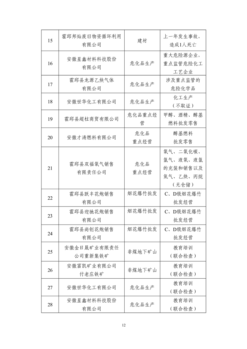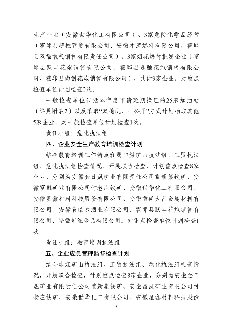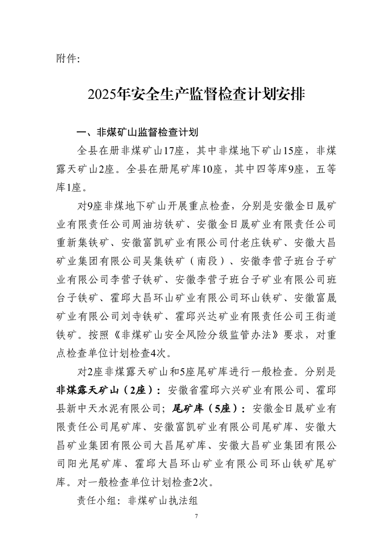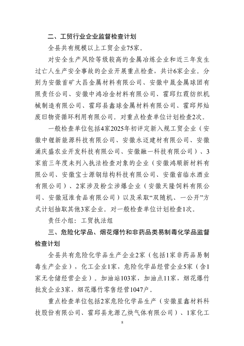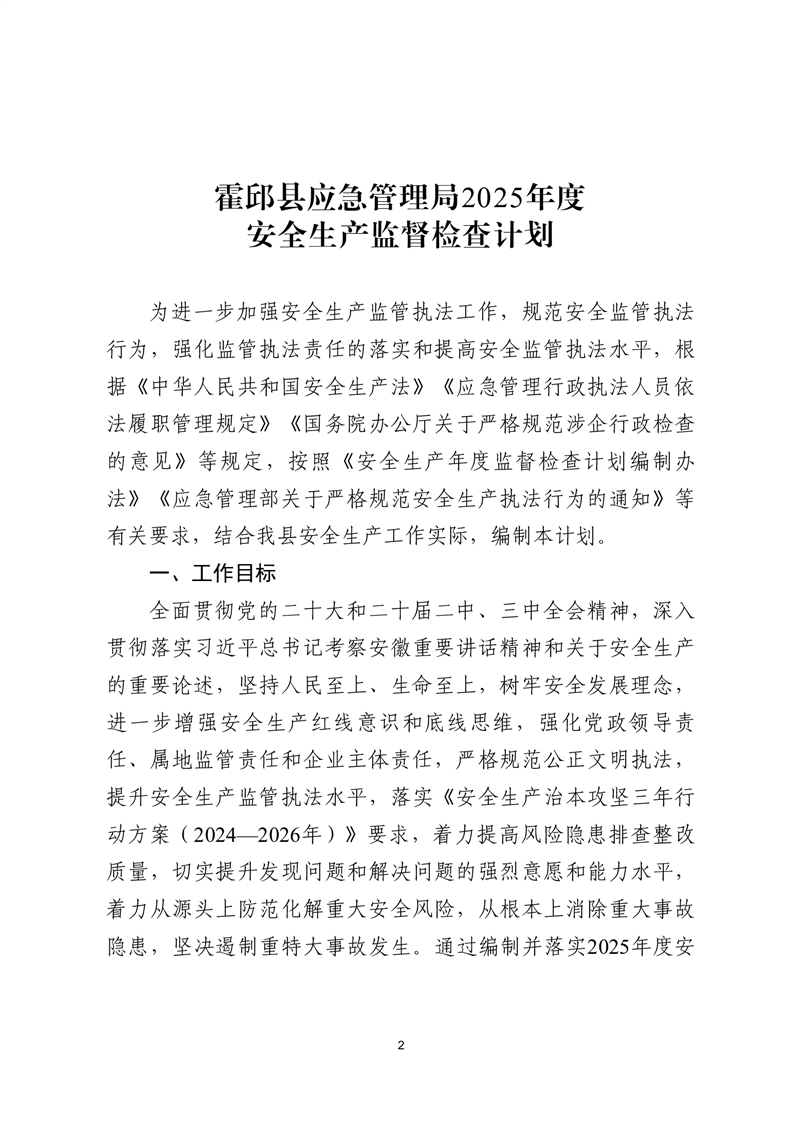 霍邱县应急管理局2025年度安全生产监督检查计划