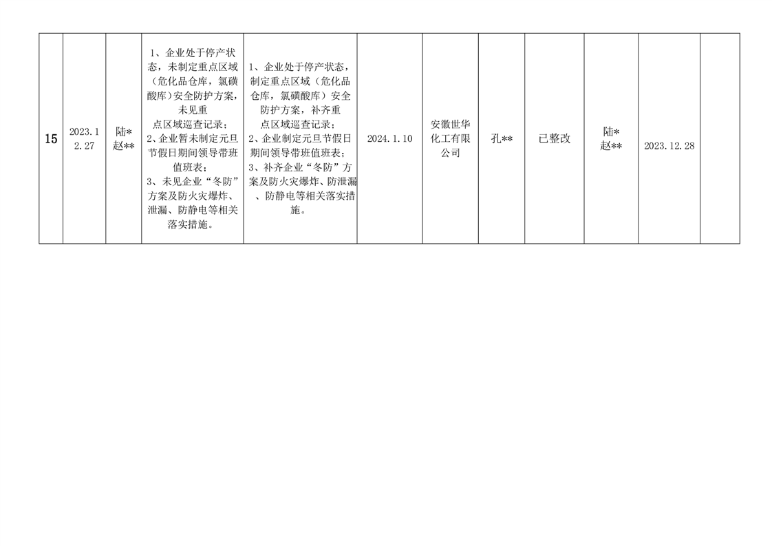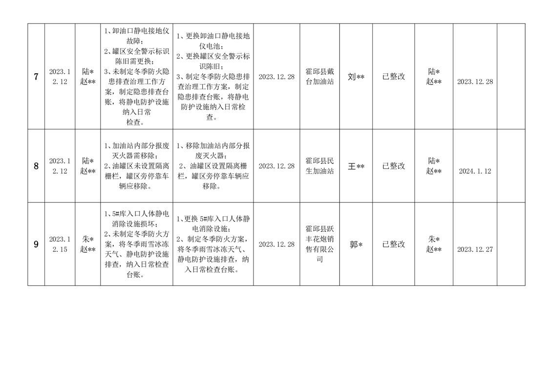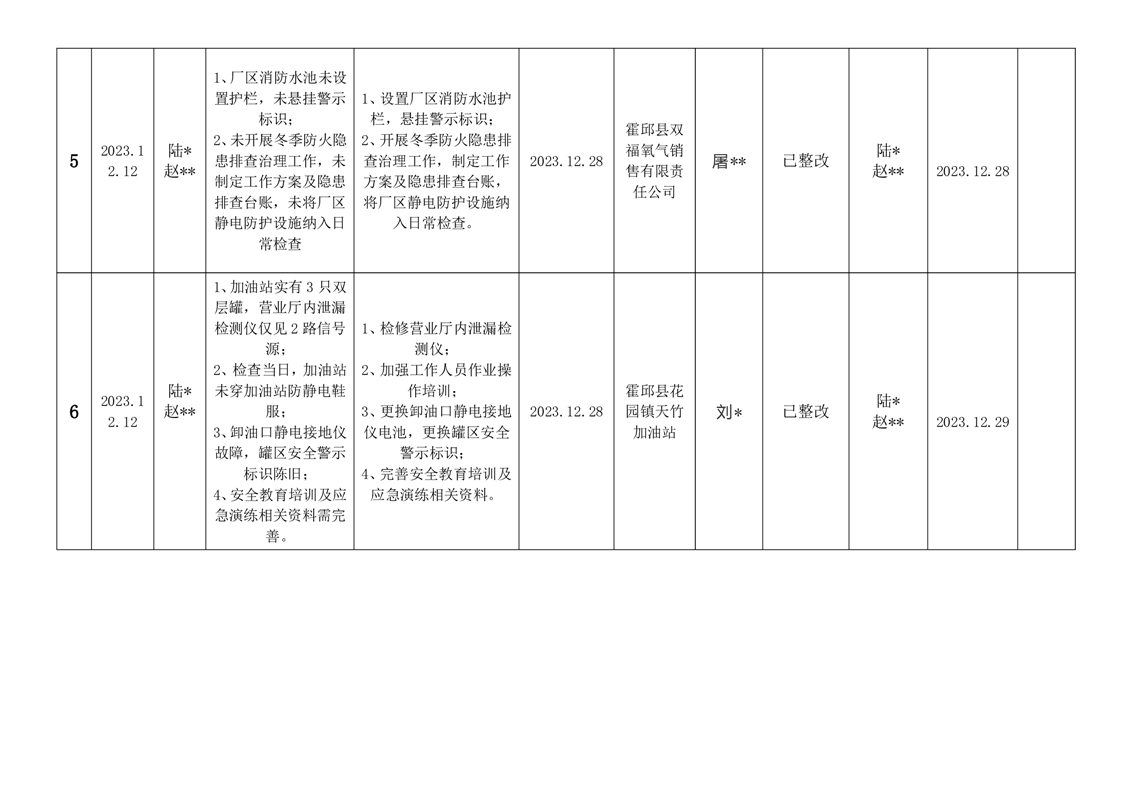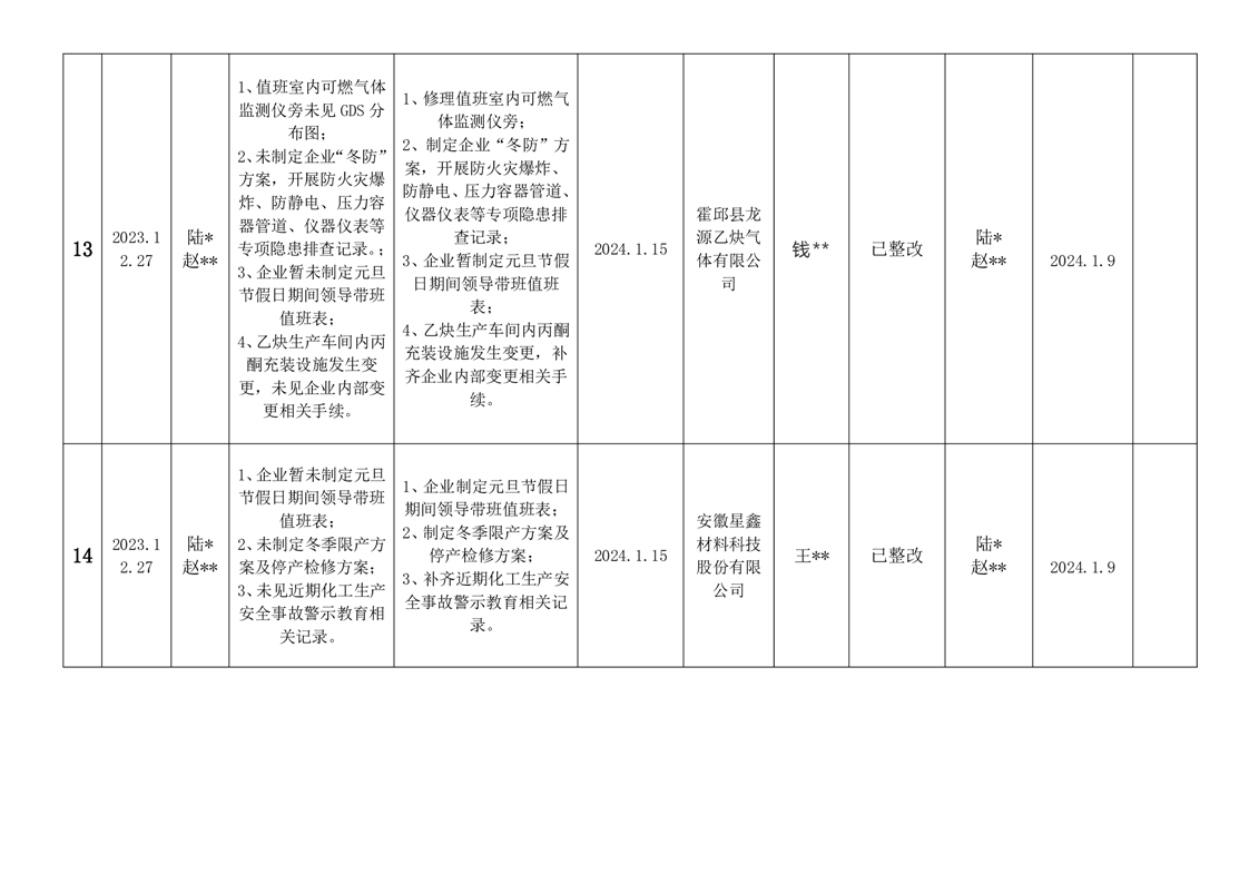 霍邱县应急管理局2023年12月安全生产隐患排查治理“三清单”