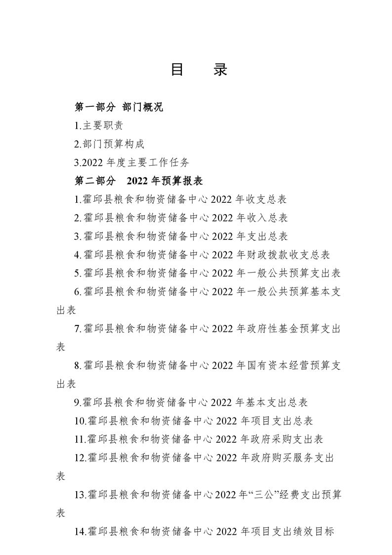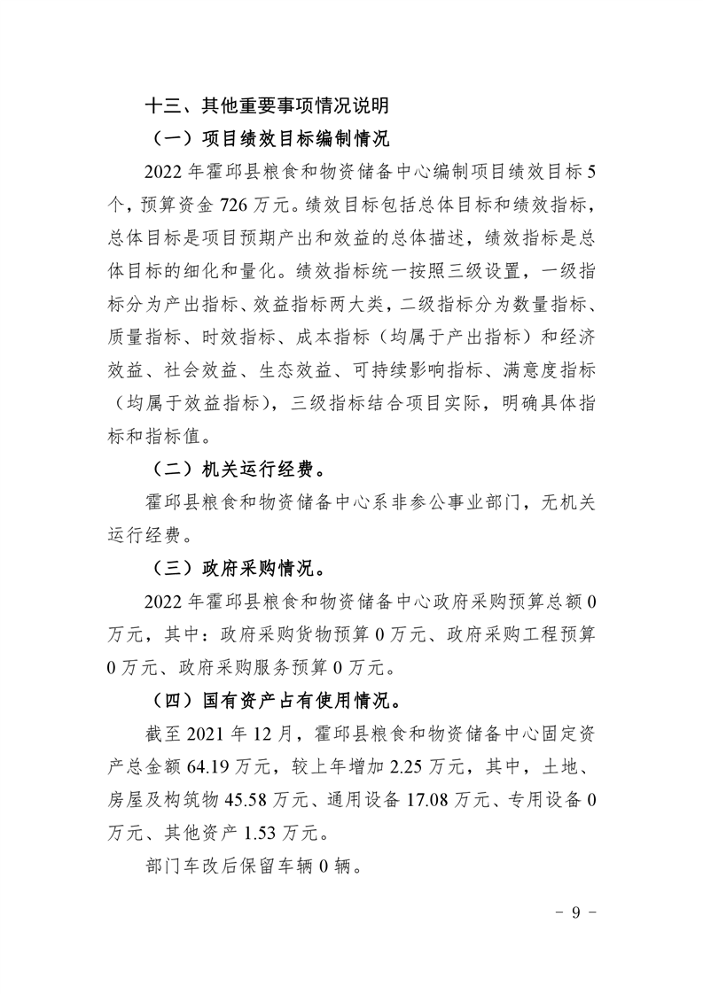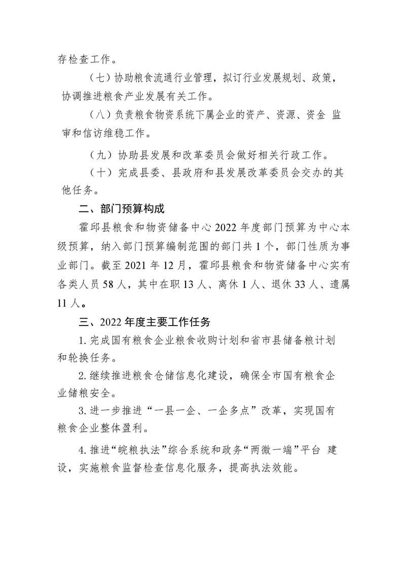 霍邱县粮食和物资储备中心2022年部门预算公开