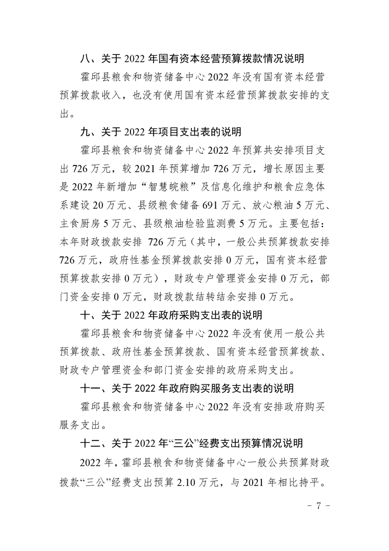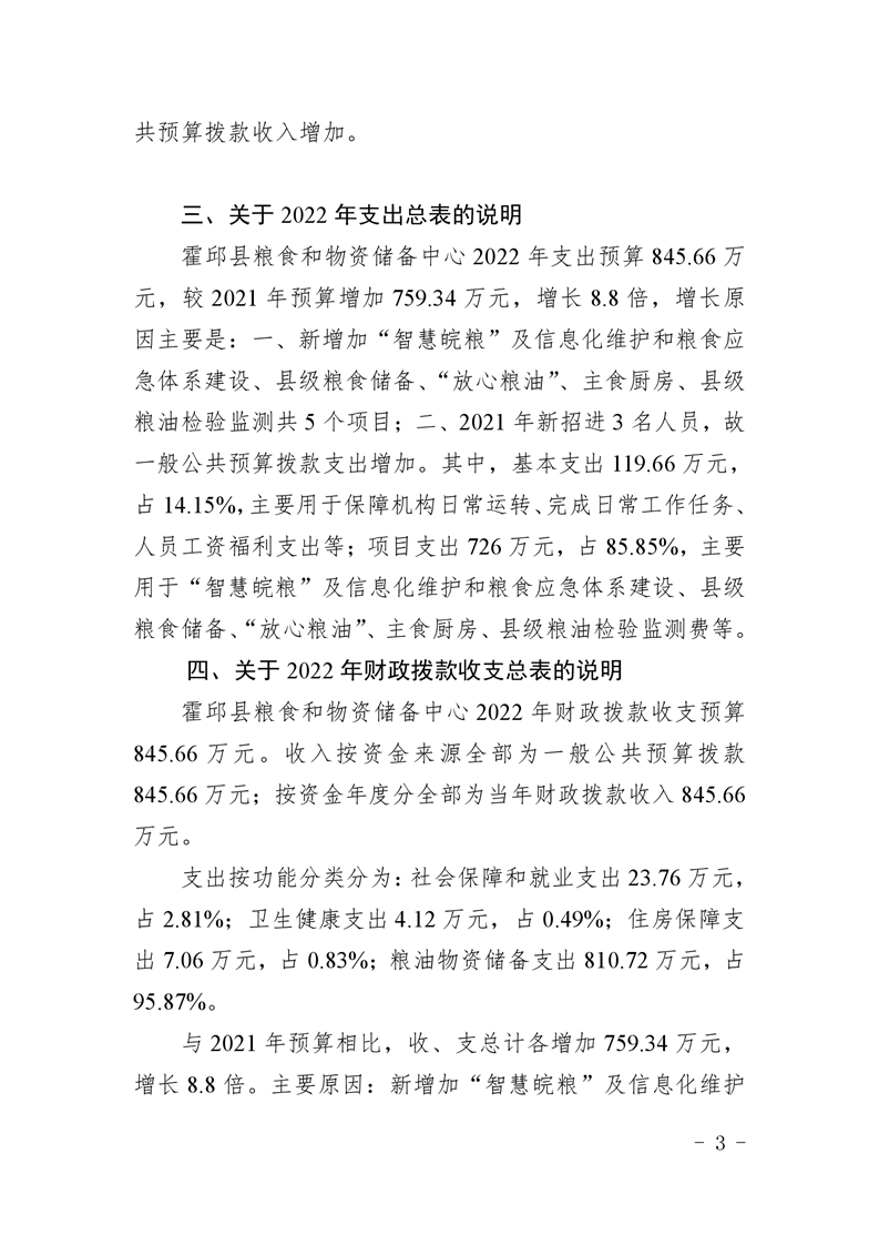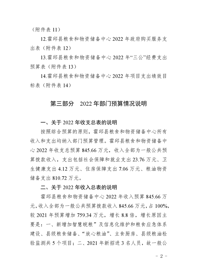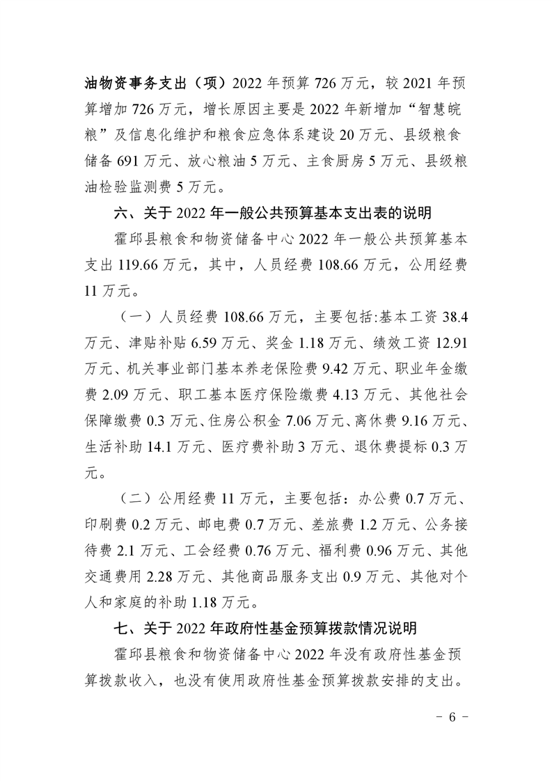 霍邱县粮食和物资储备中心2022年部门预算公开