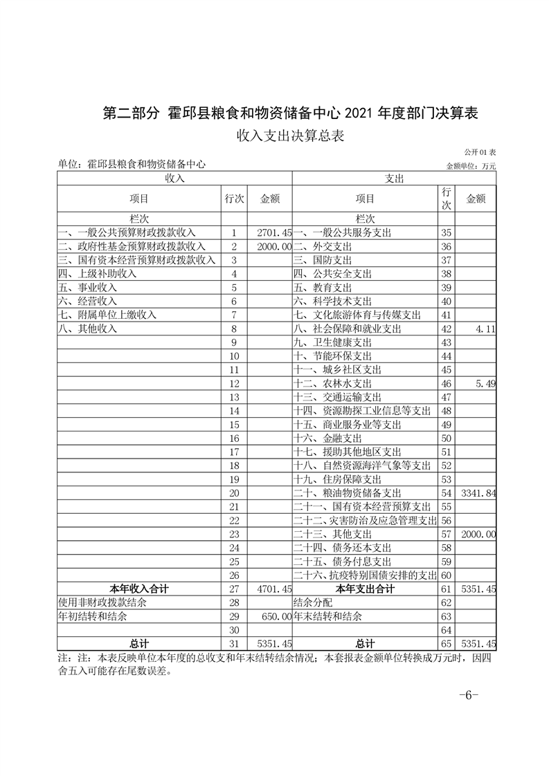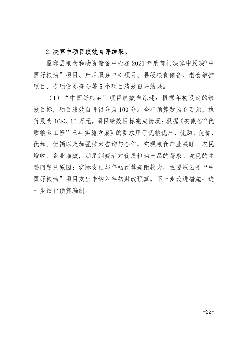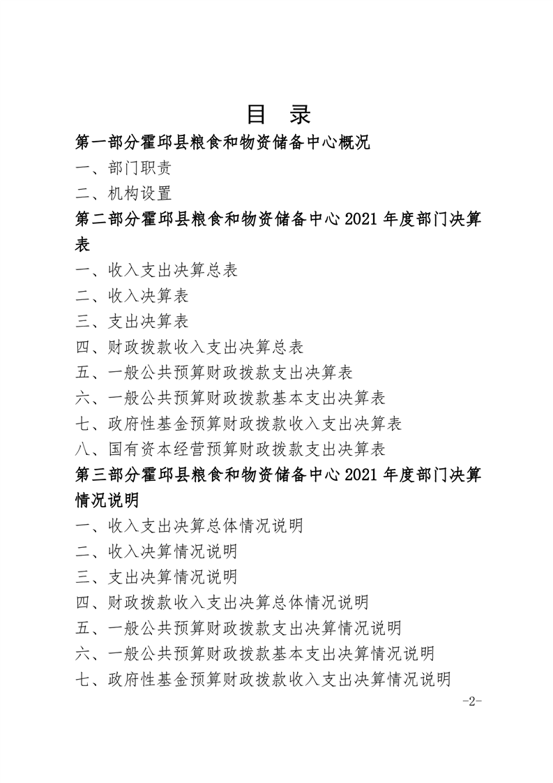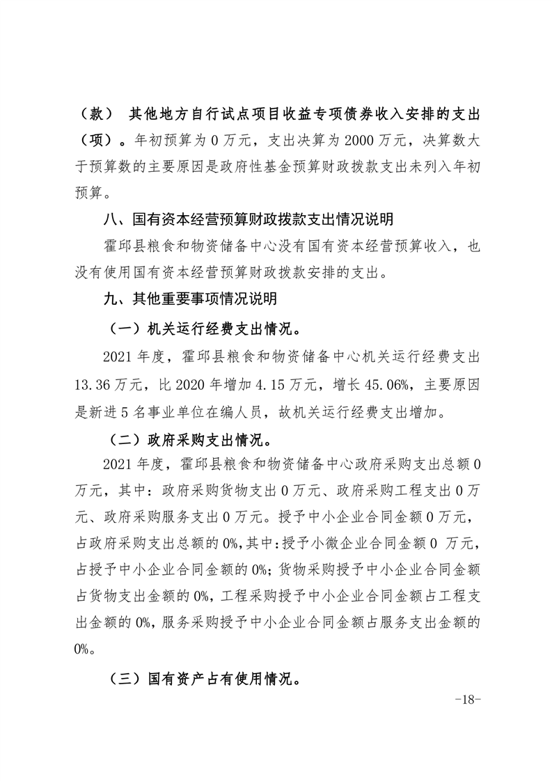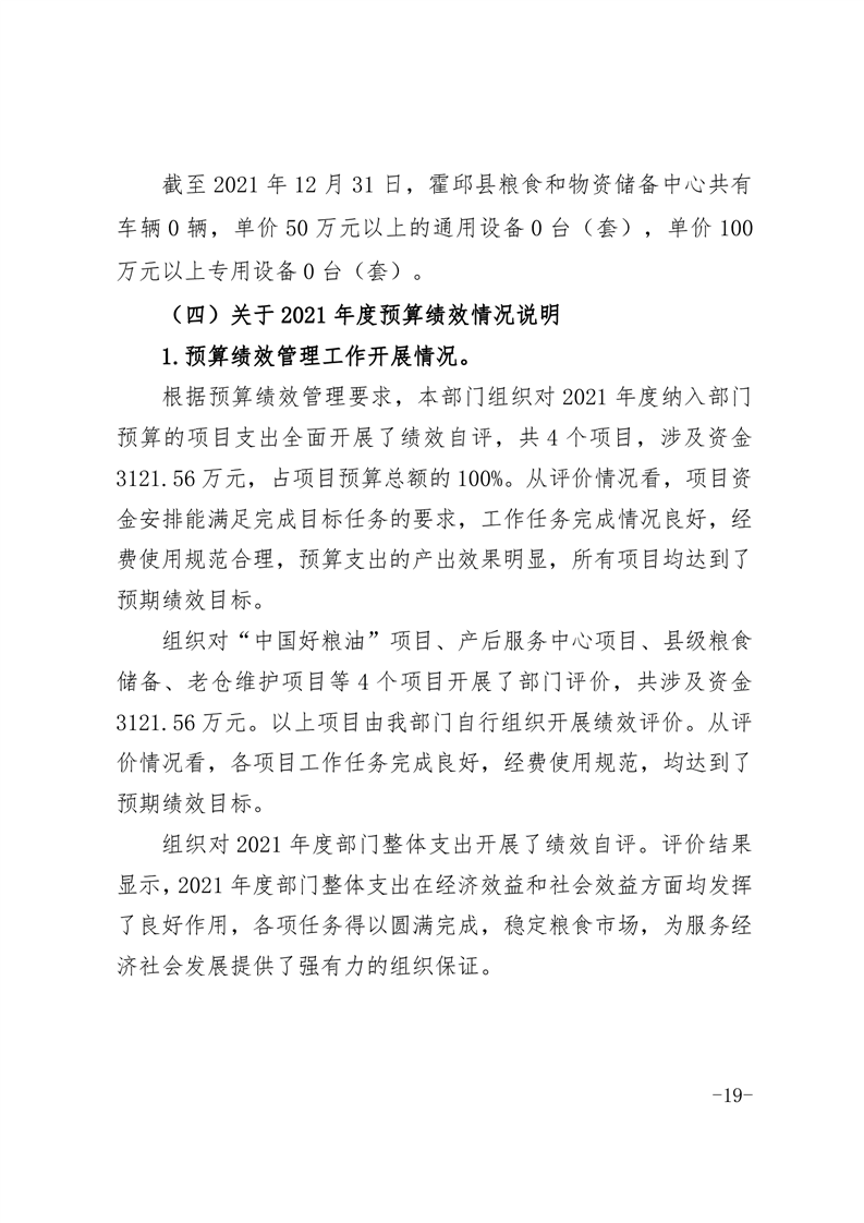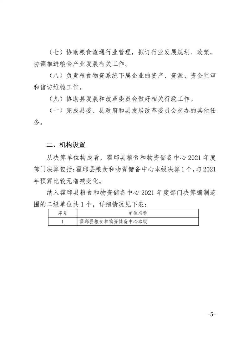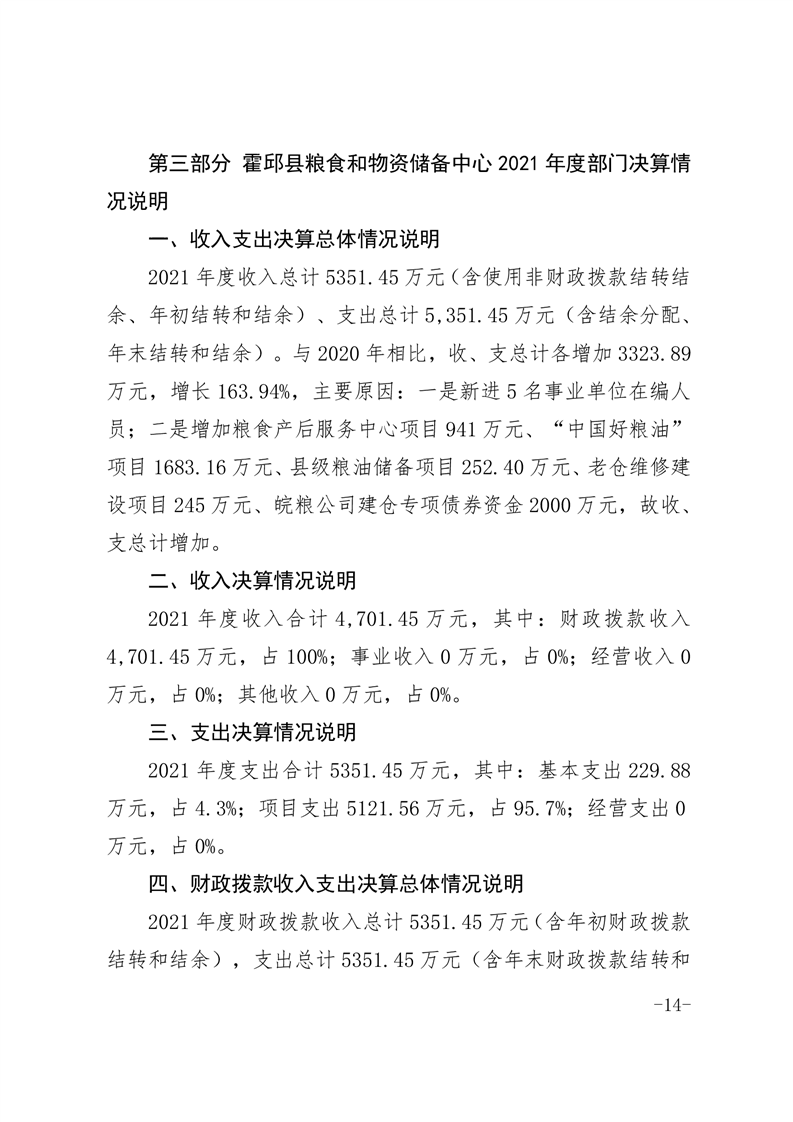 霍邱县粮食和物资储备中心2021年部门决算公开