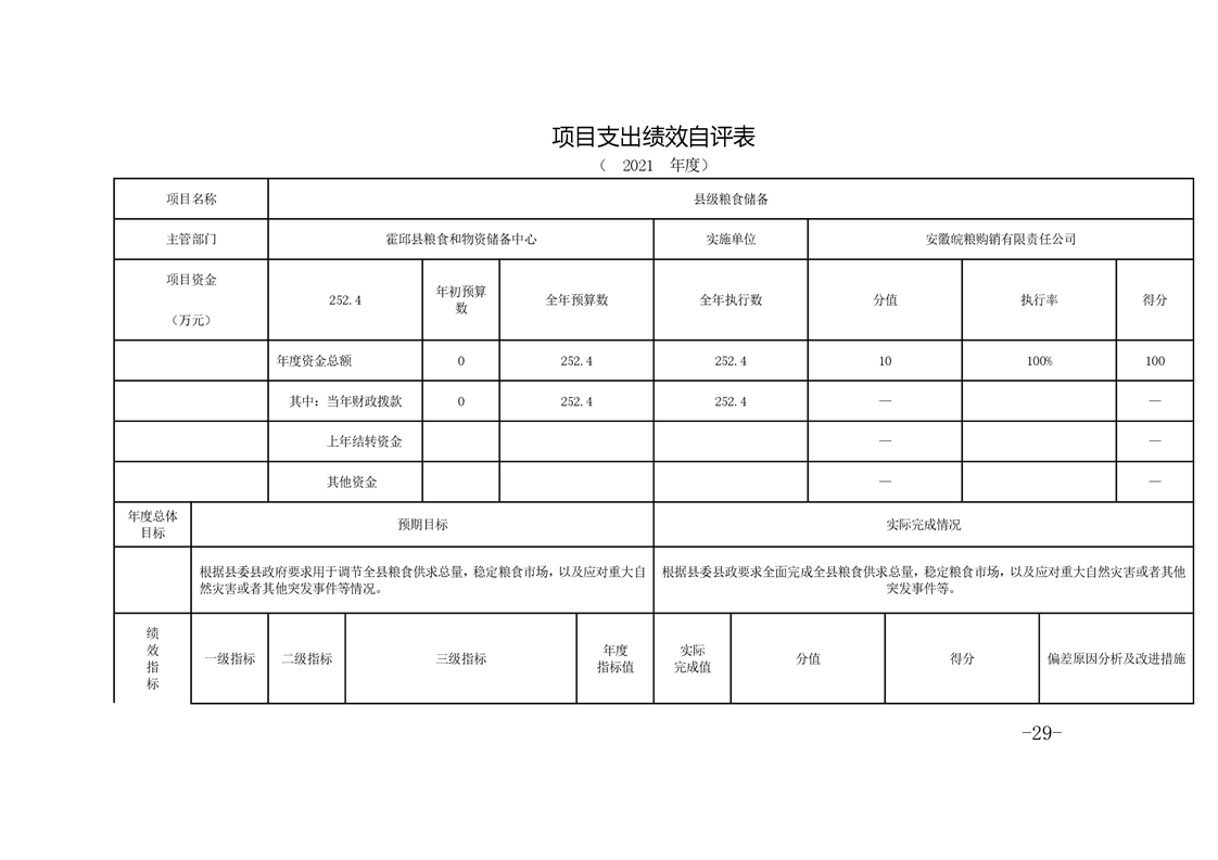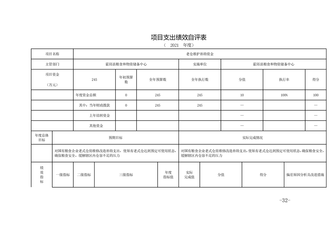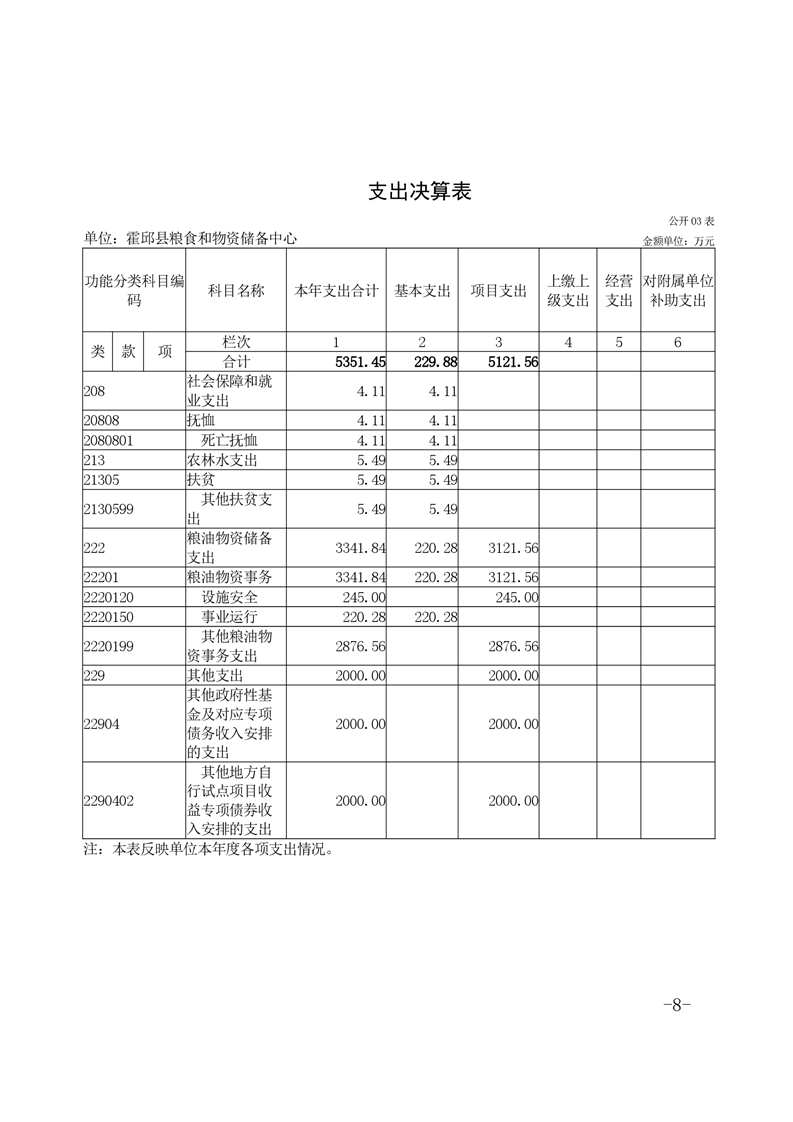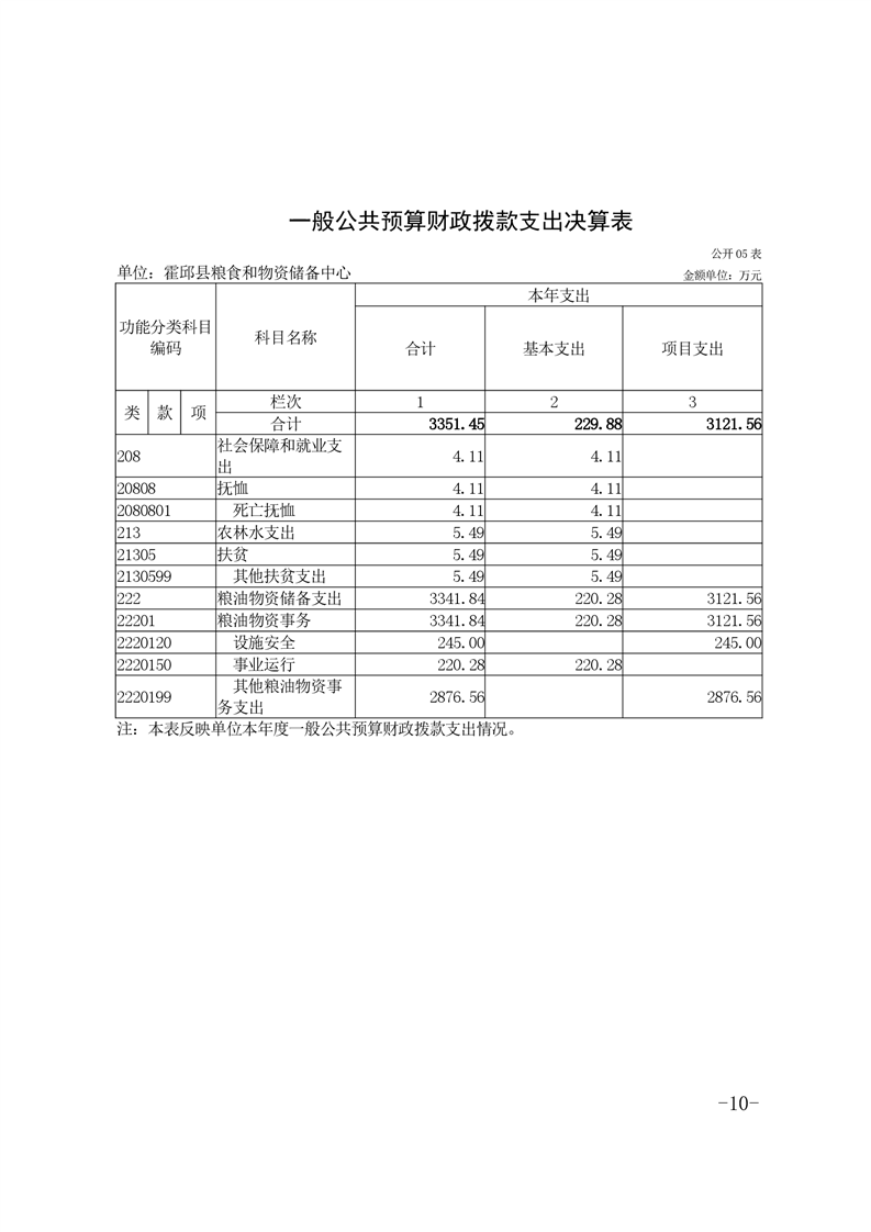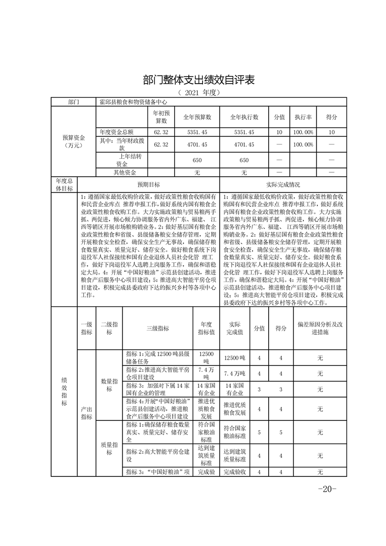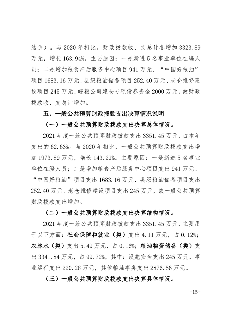 霍邱县粮食和物资储备中心2021年部门决算公开