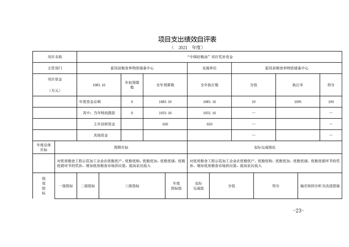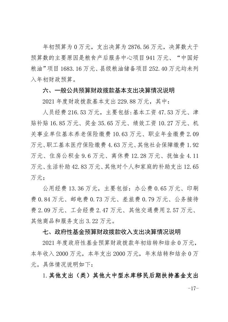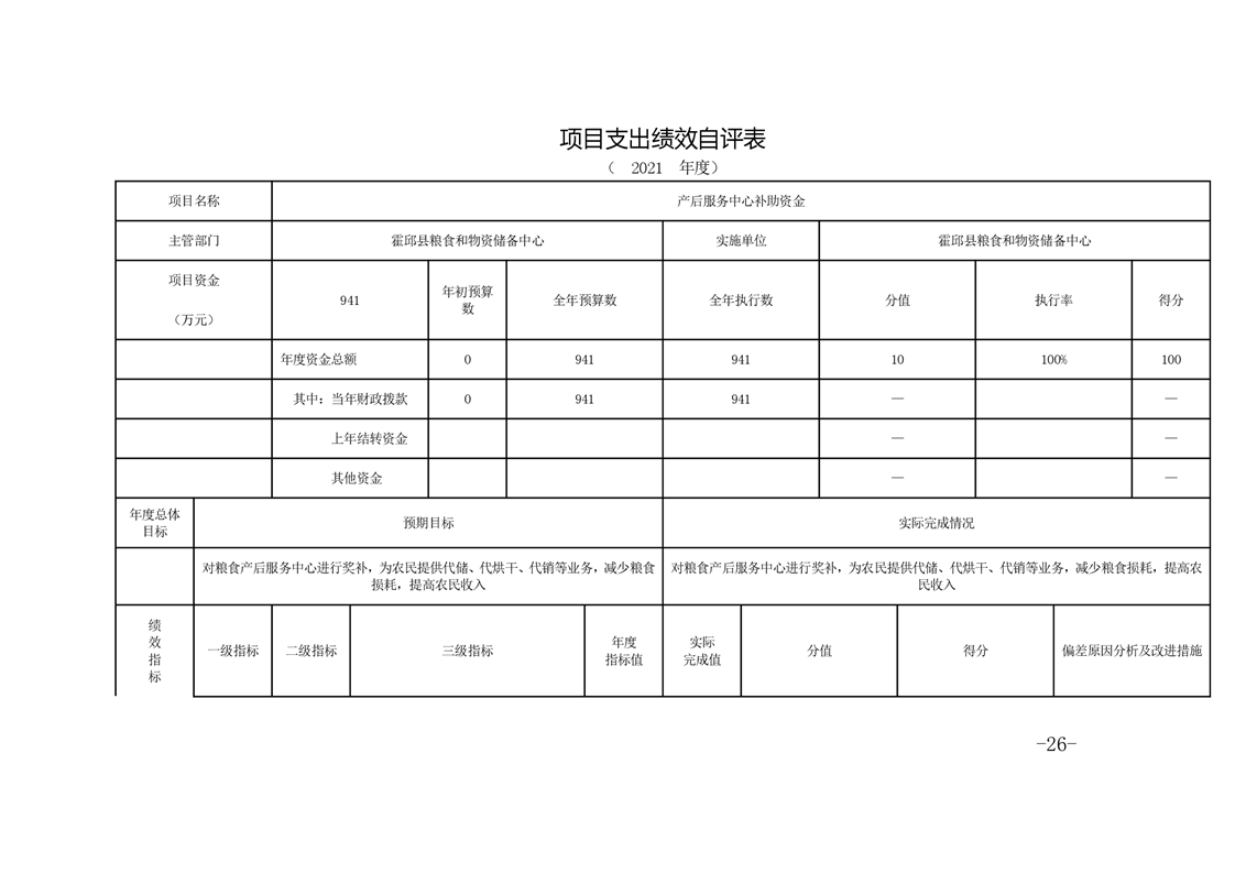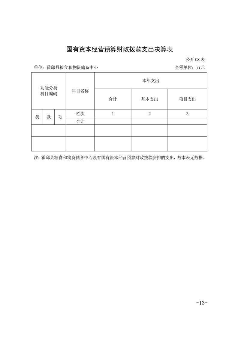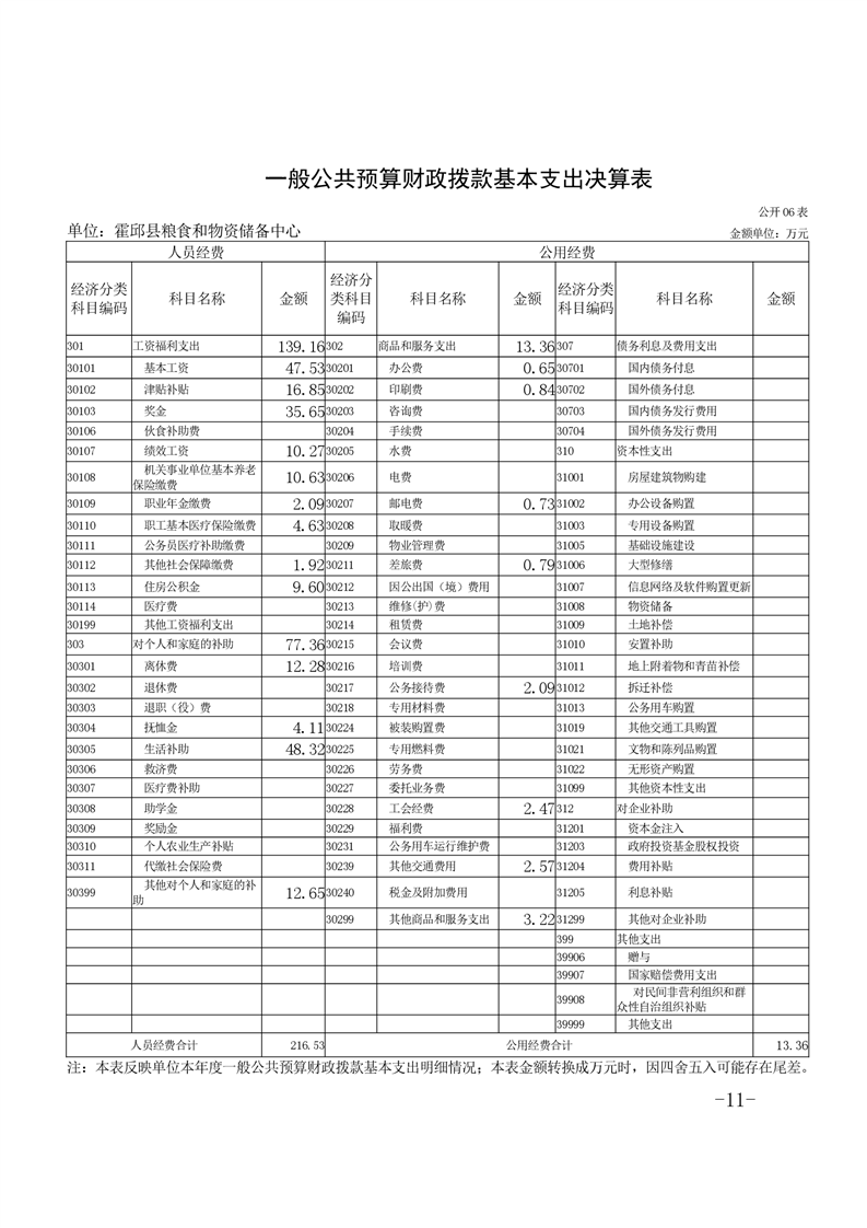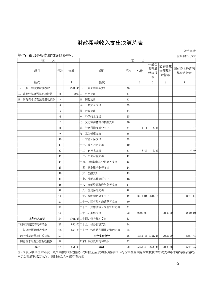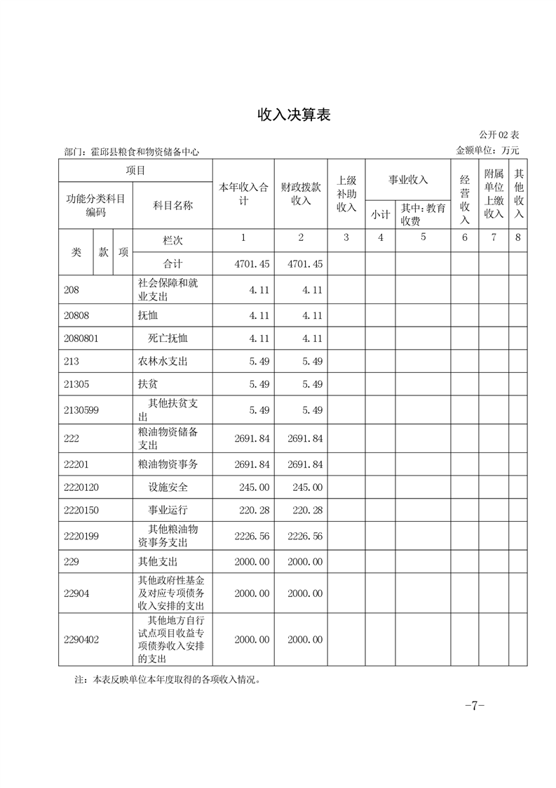 霍邱县粮食和物资储备中心2021年部门决算公开