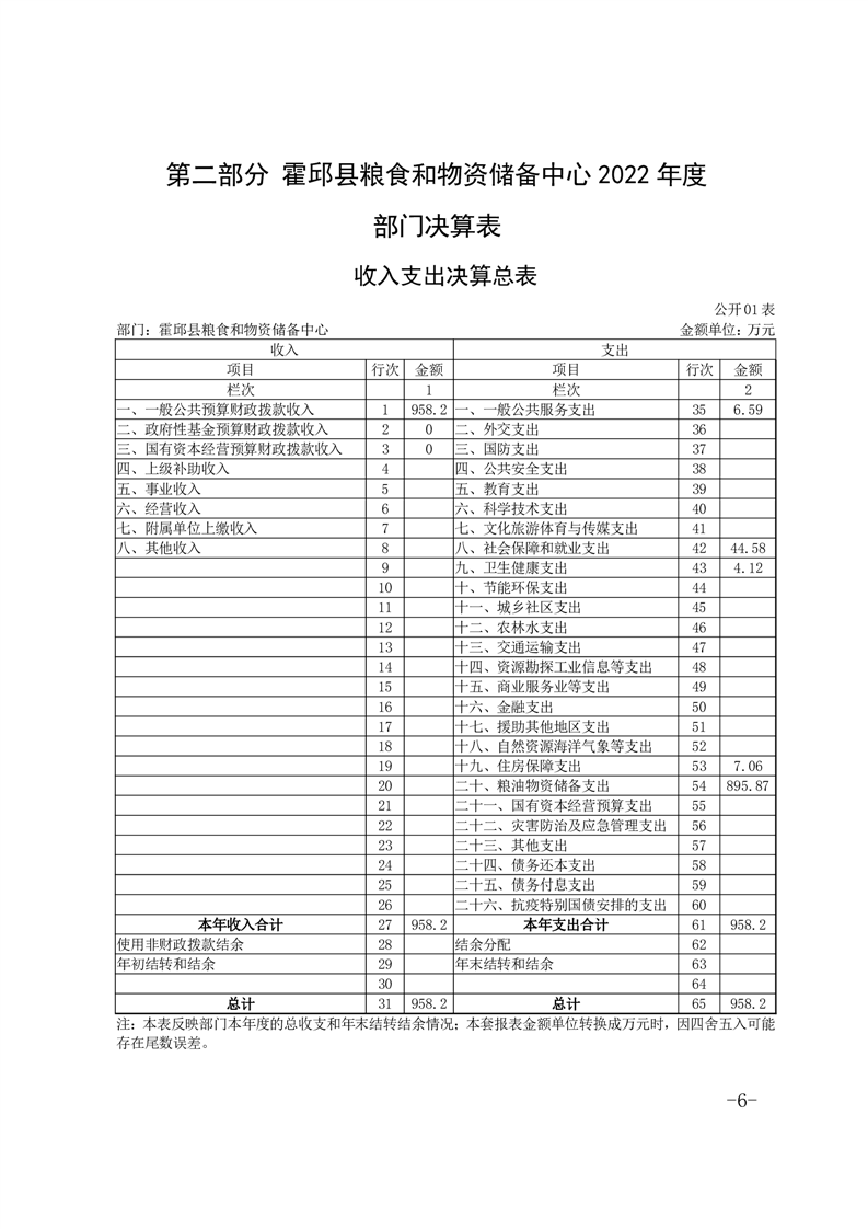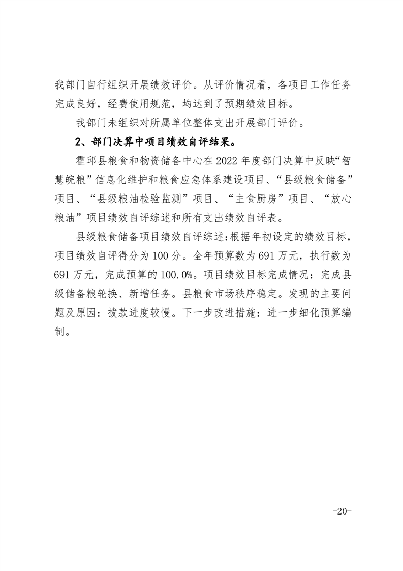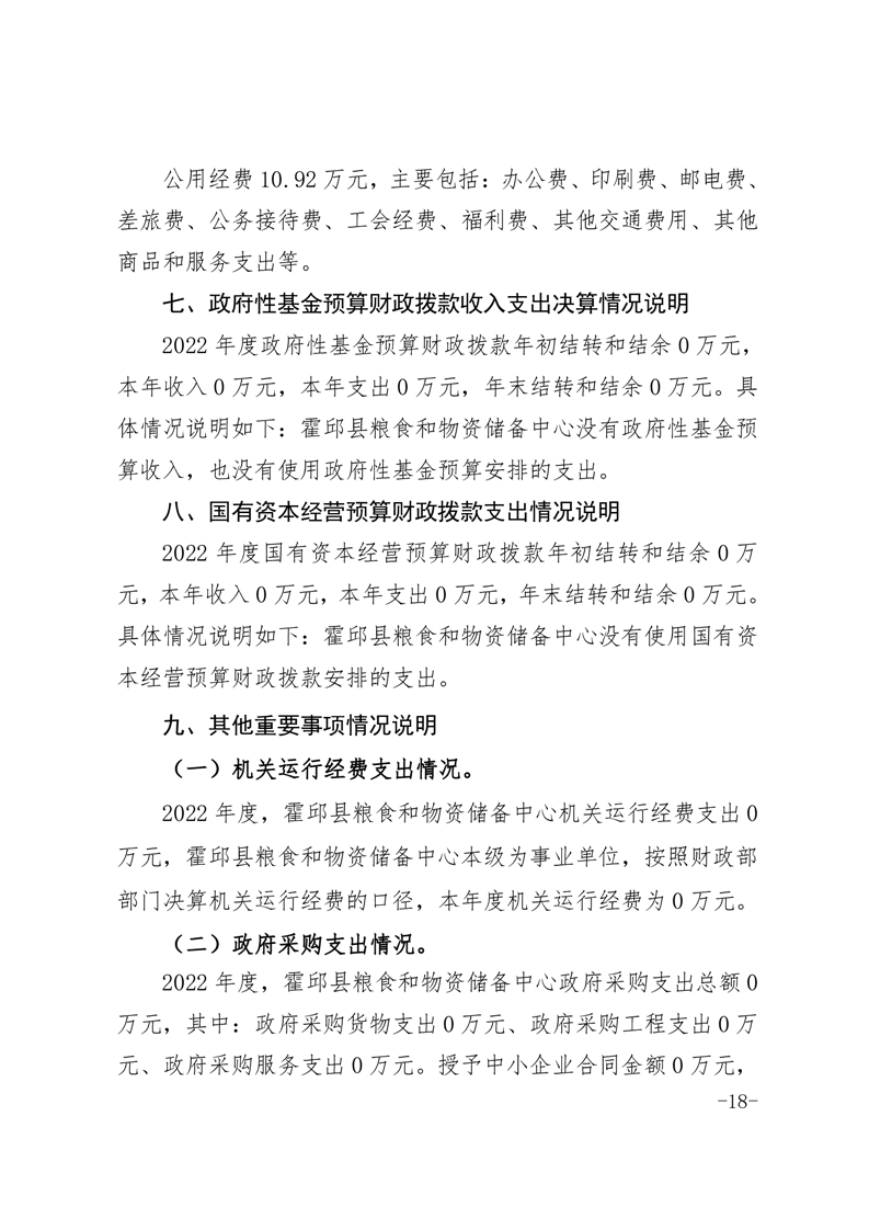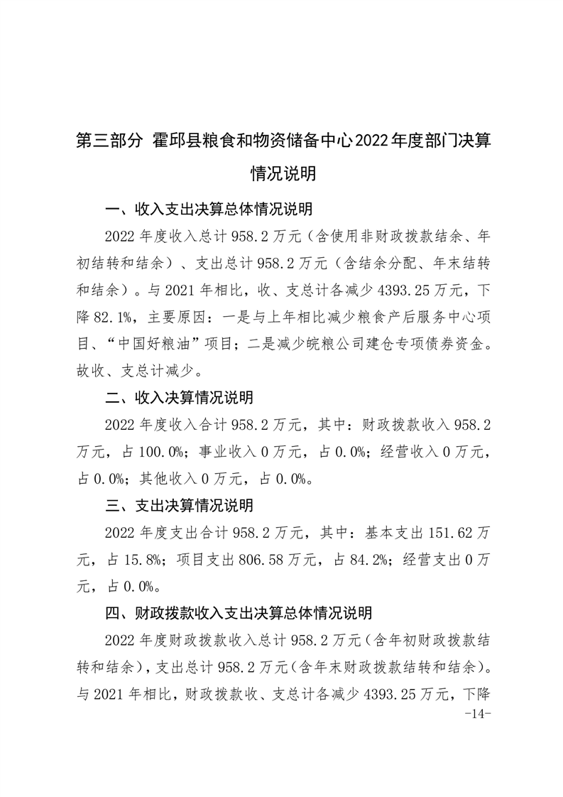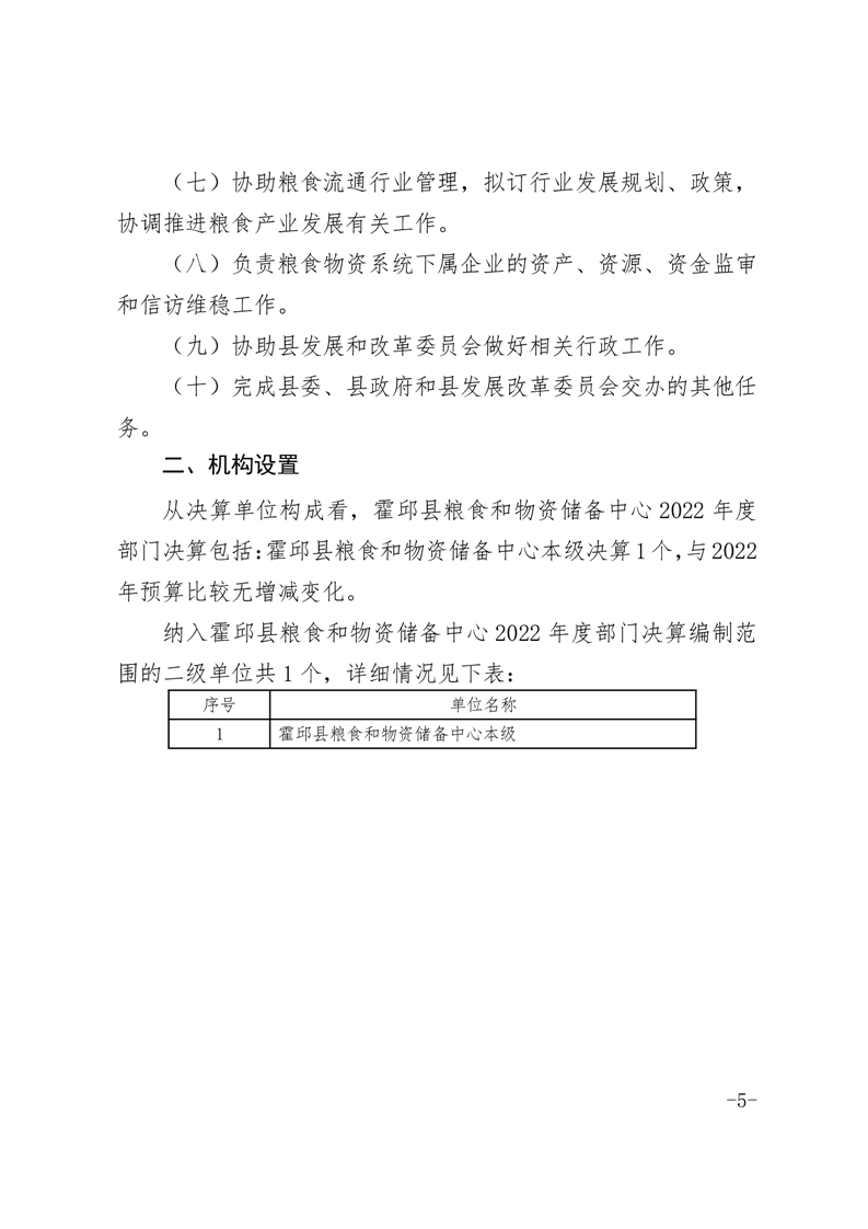 霍邱县粮食和物资储备中心2022年部门决算公开