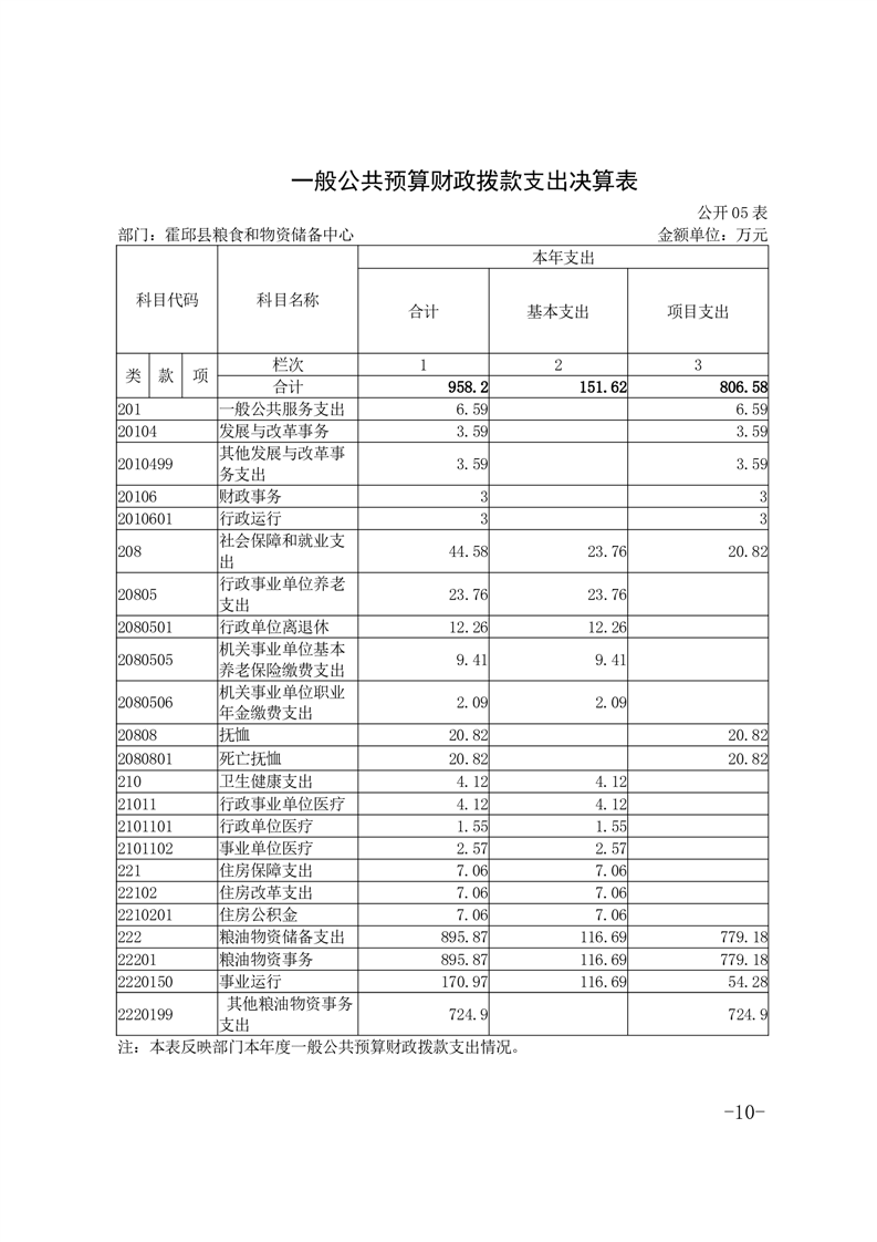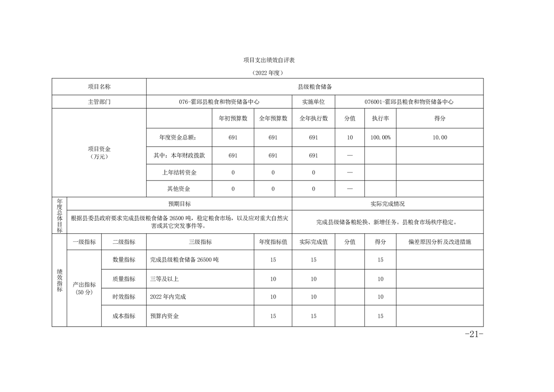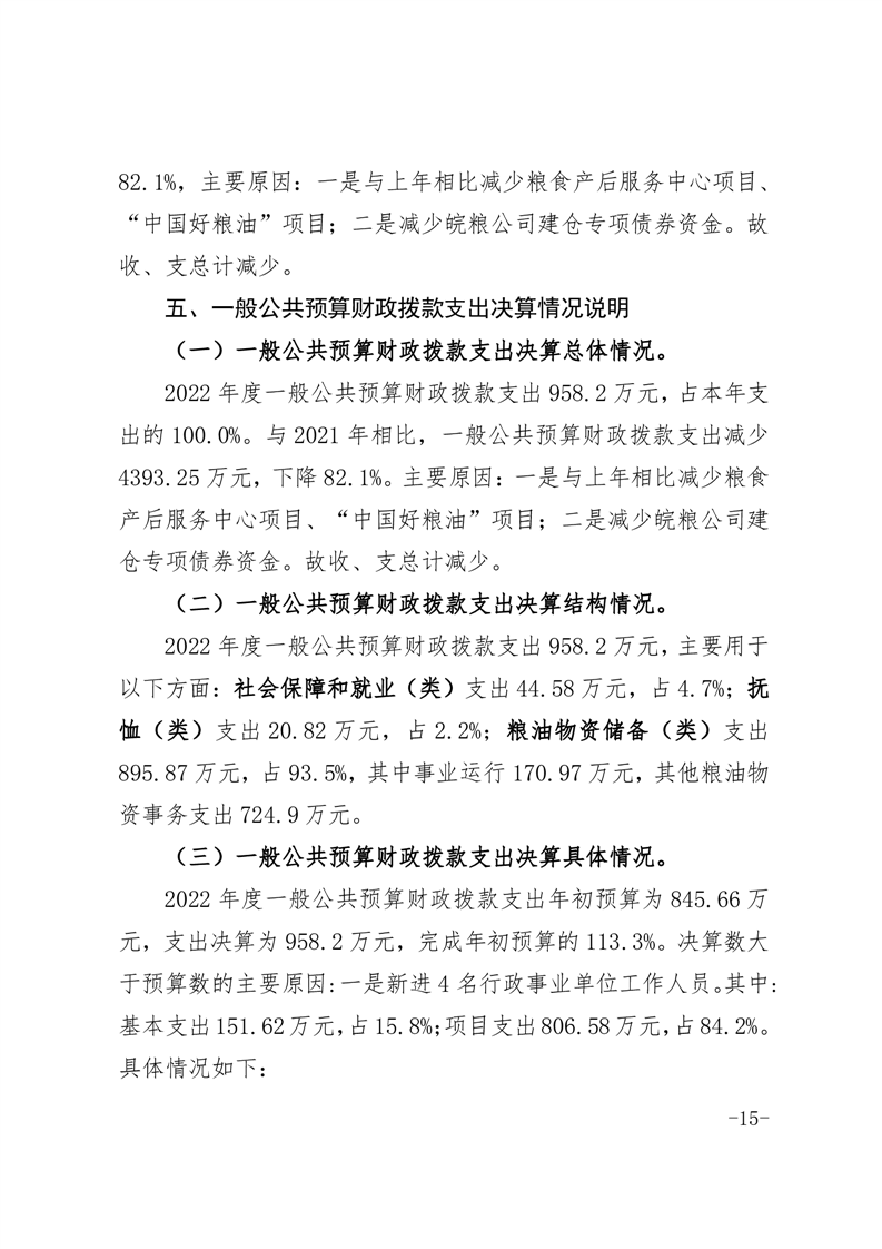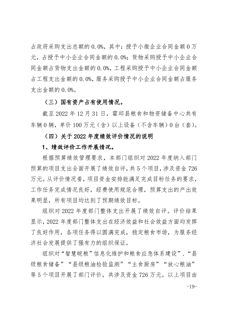 霍邱县粮食和物资储备中心2022年部门决算公开