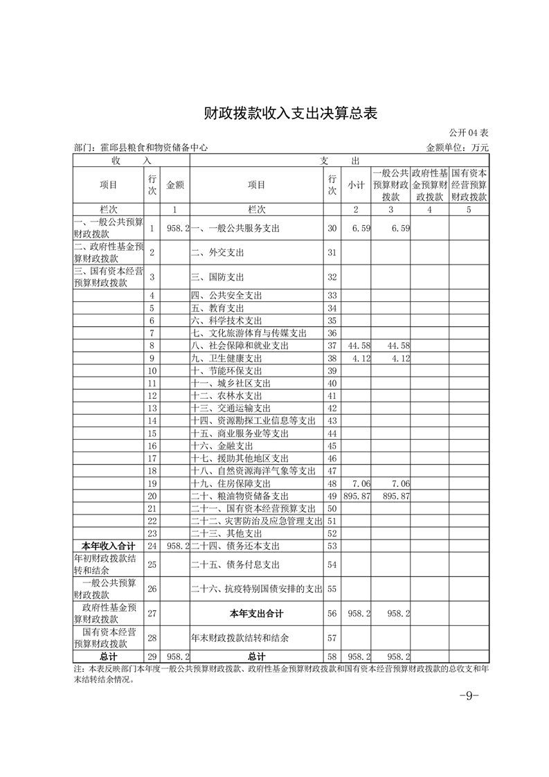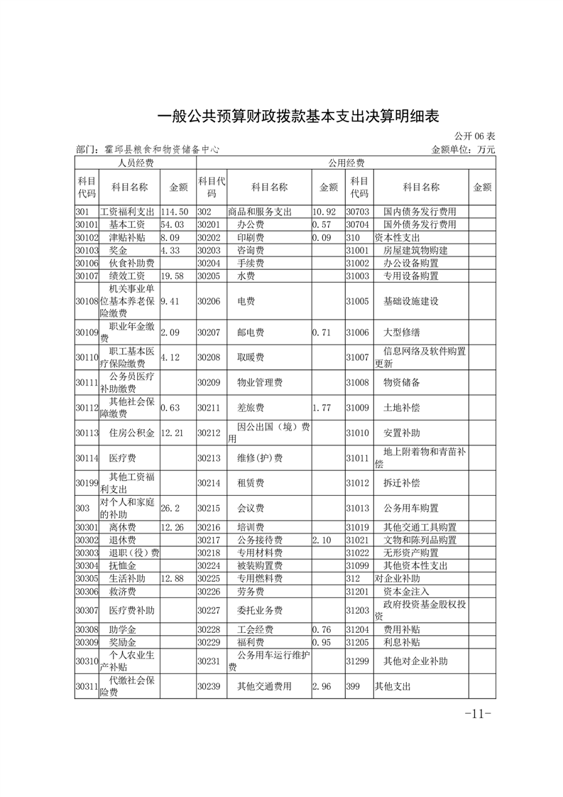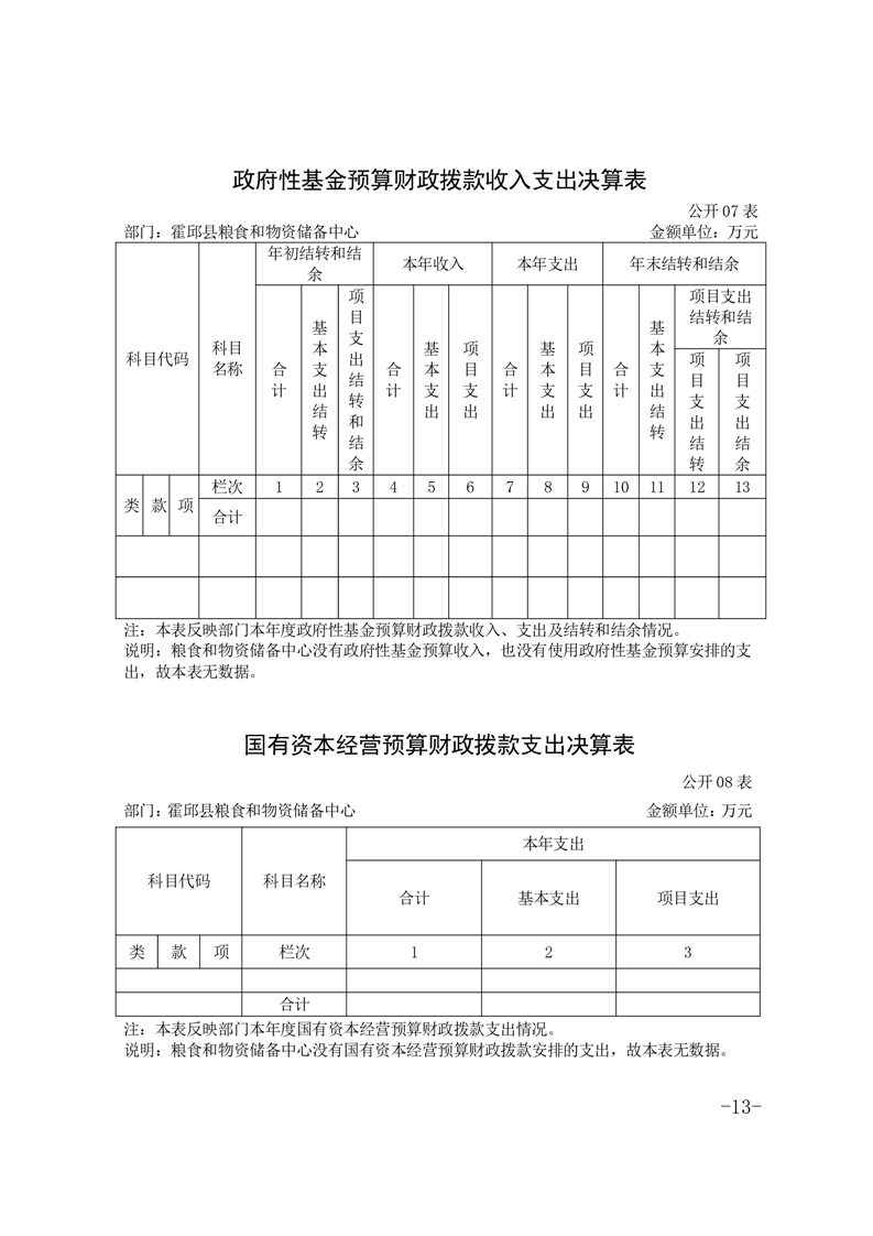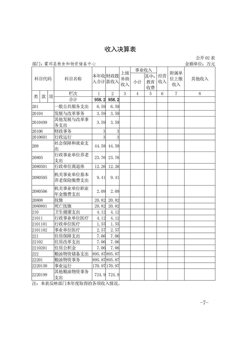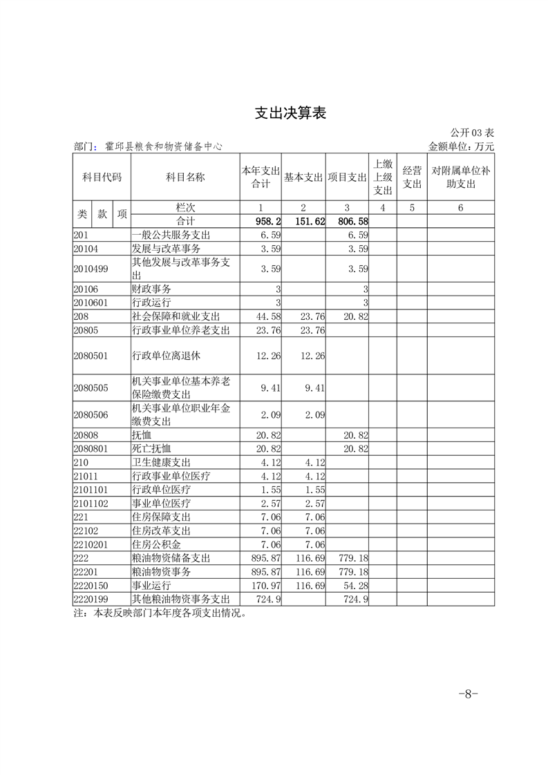 霍邱县粮食和物资储备中心2022年部门决算公开
