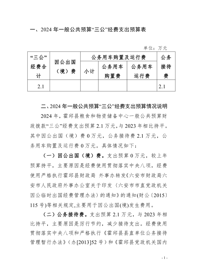 霍邱县粮食和物资储备中心2024年一般公共预算“三公”经费预算