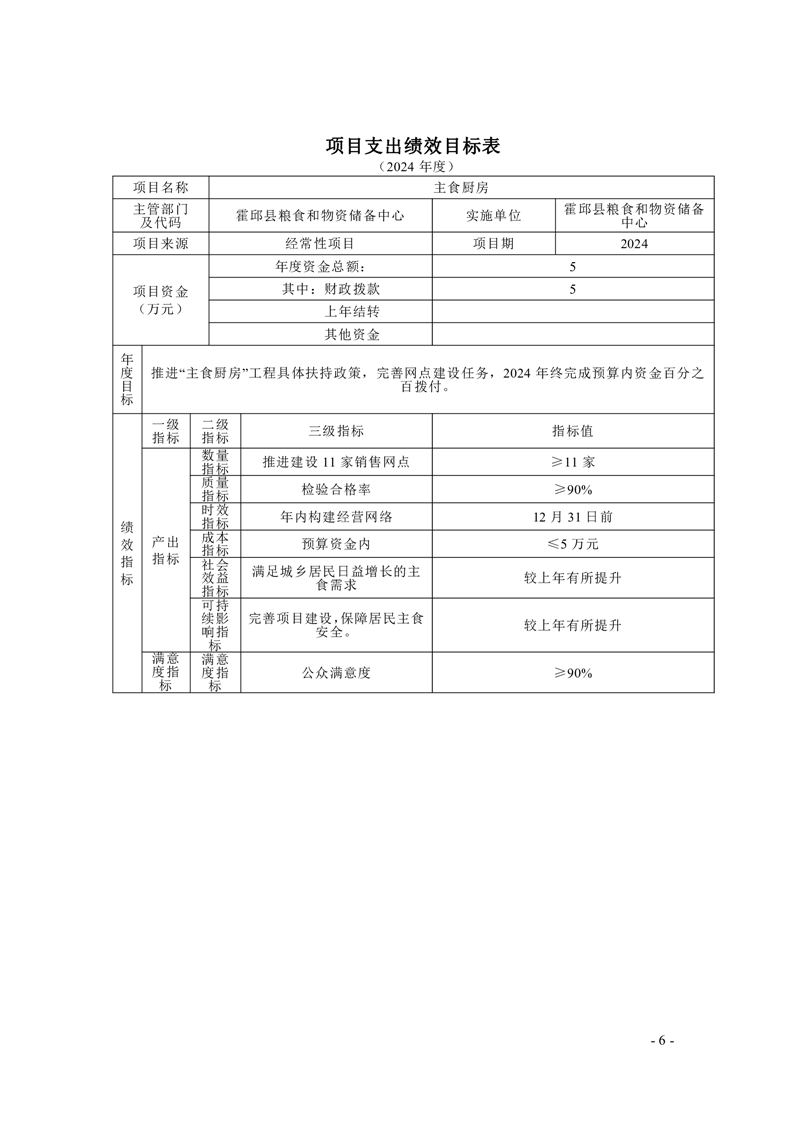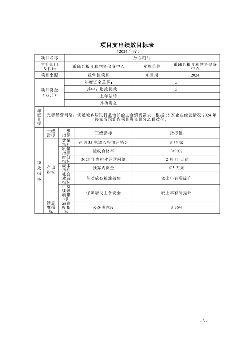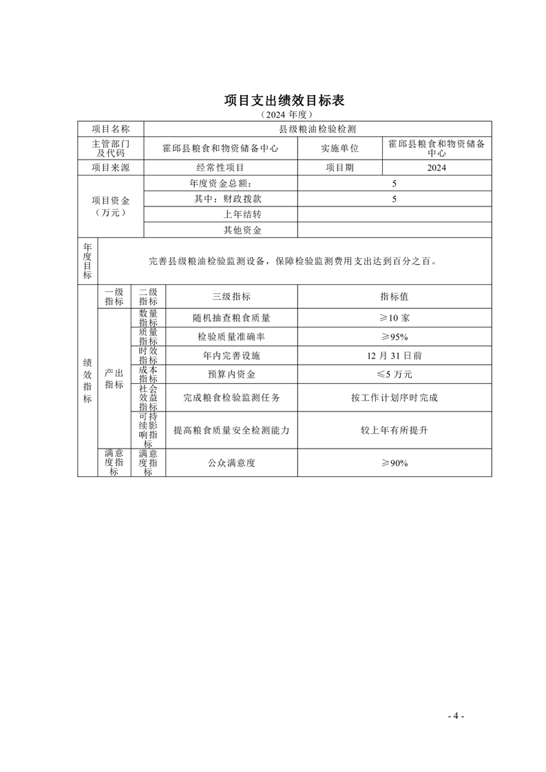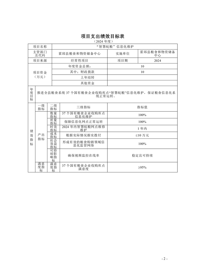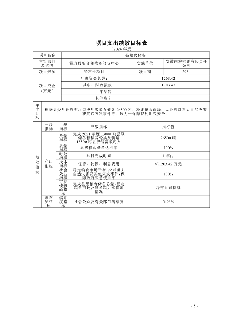 霍邱县粮食和物资储备中心2024年度项目支出绩效目标