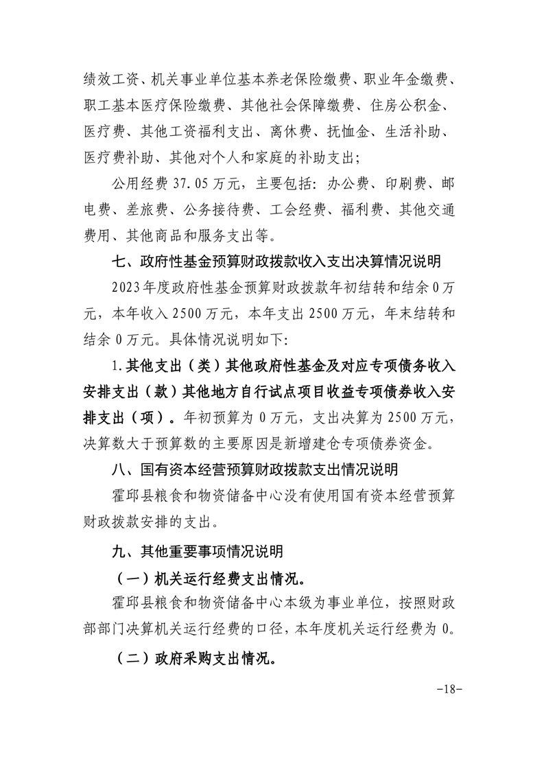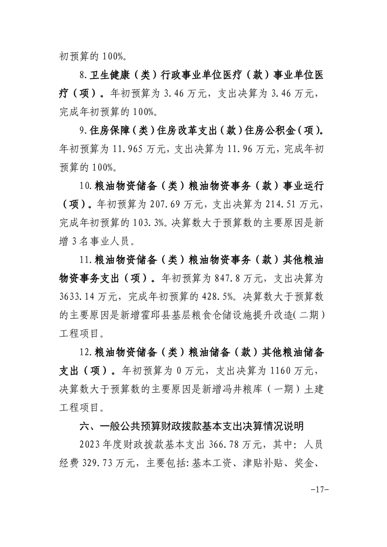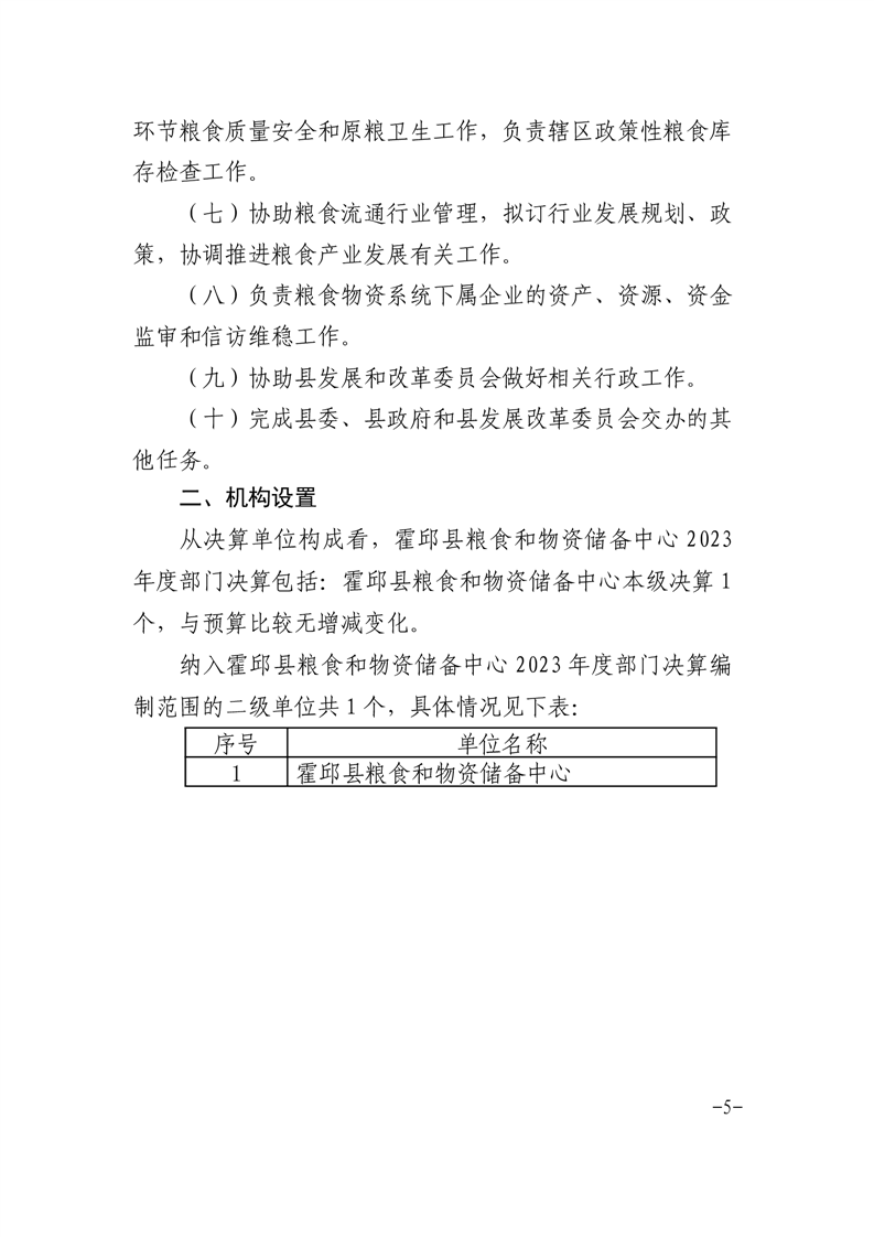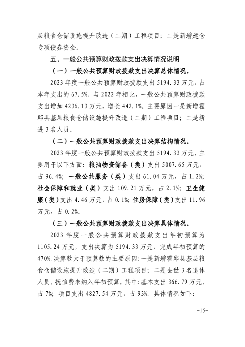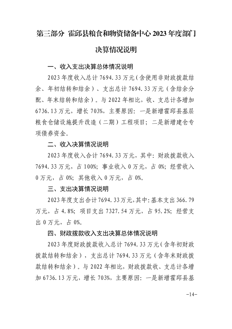 霍邱县粮食和物资储备中心2023年部门决算公开