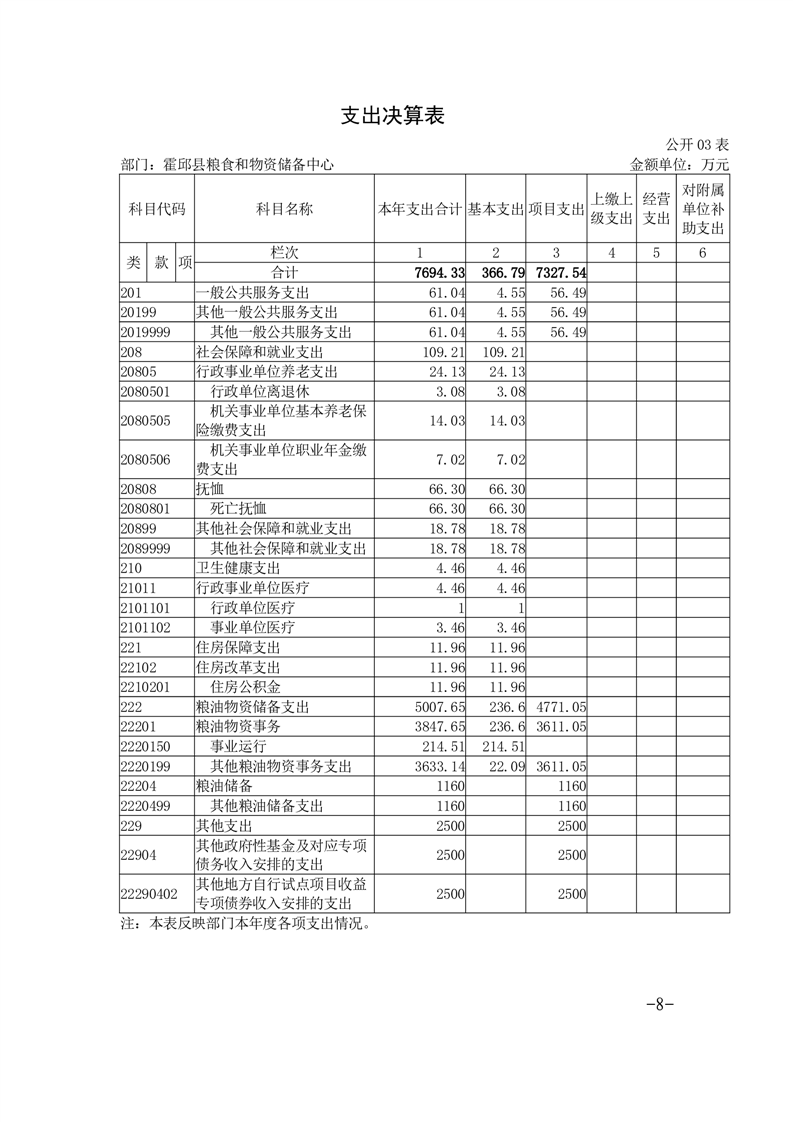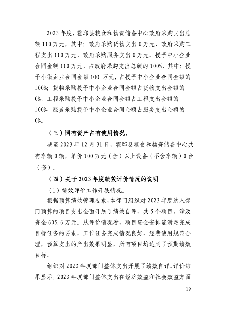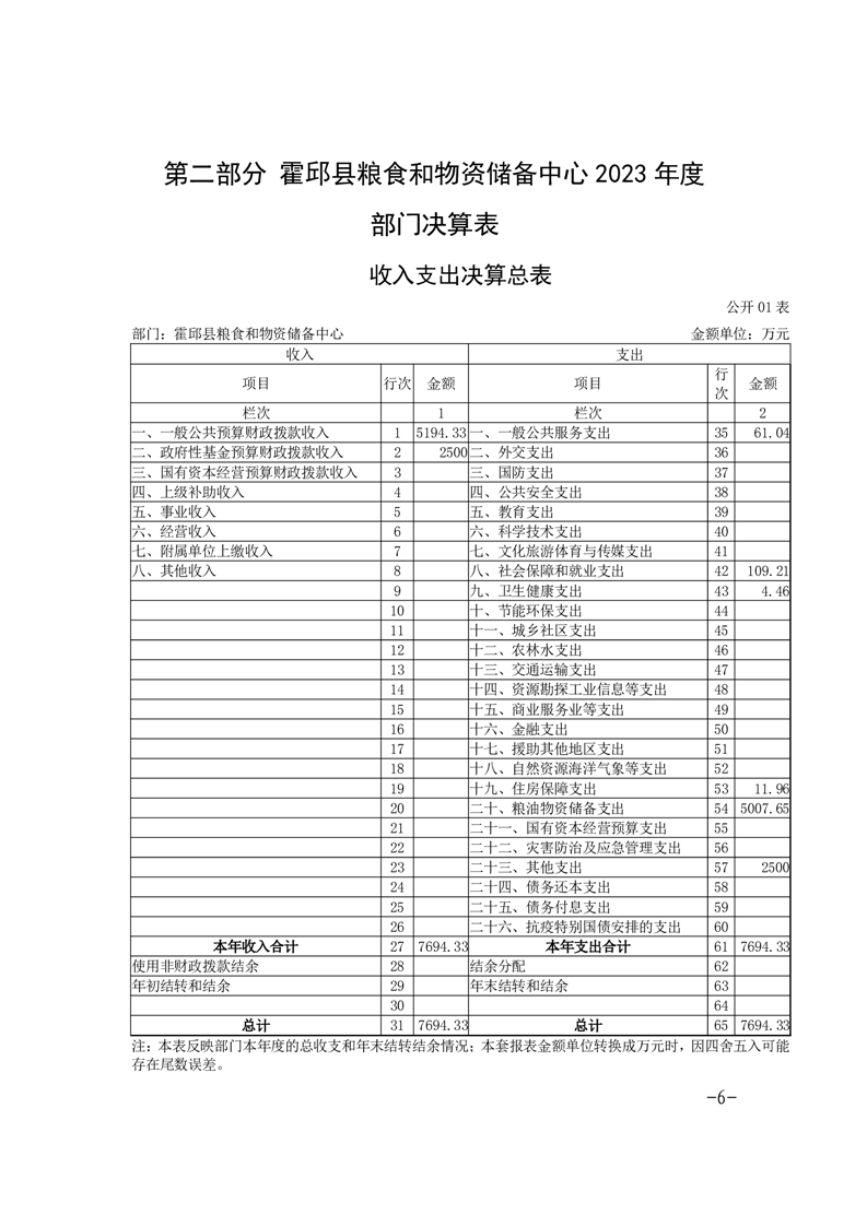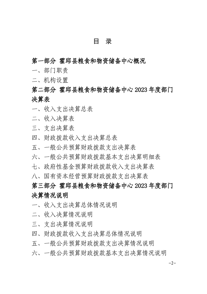 霍邱县粮食和物资储备中心2023年部门决算公开