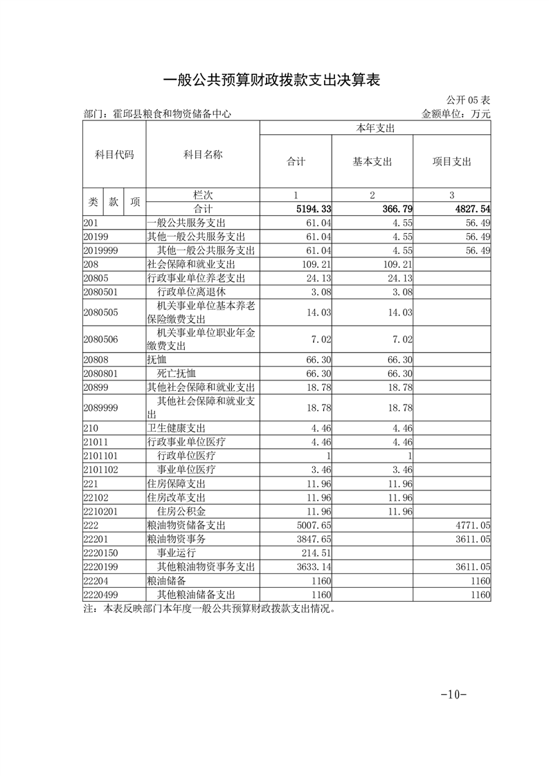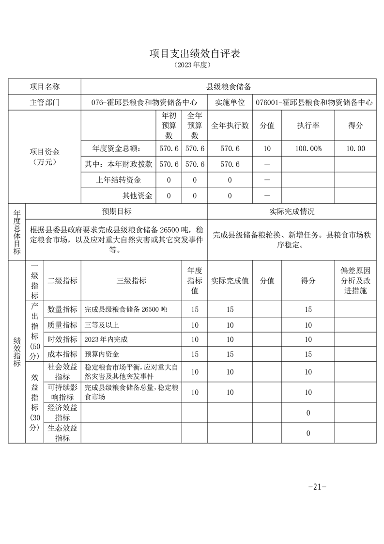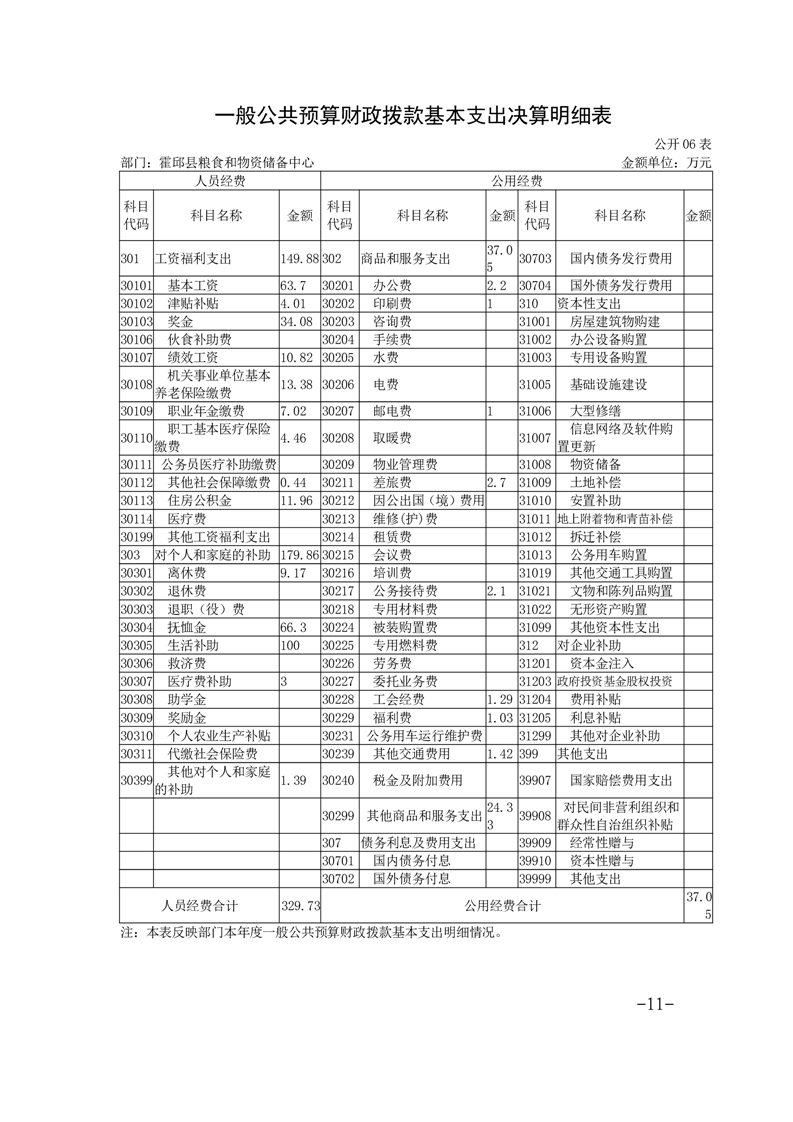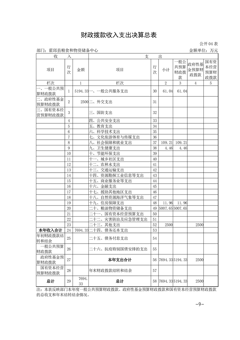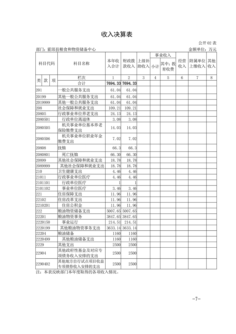 霍邱县粮食和物资储备中心2023年部门决算公开
