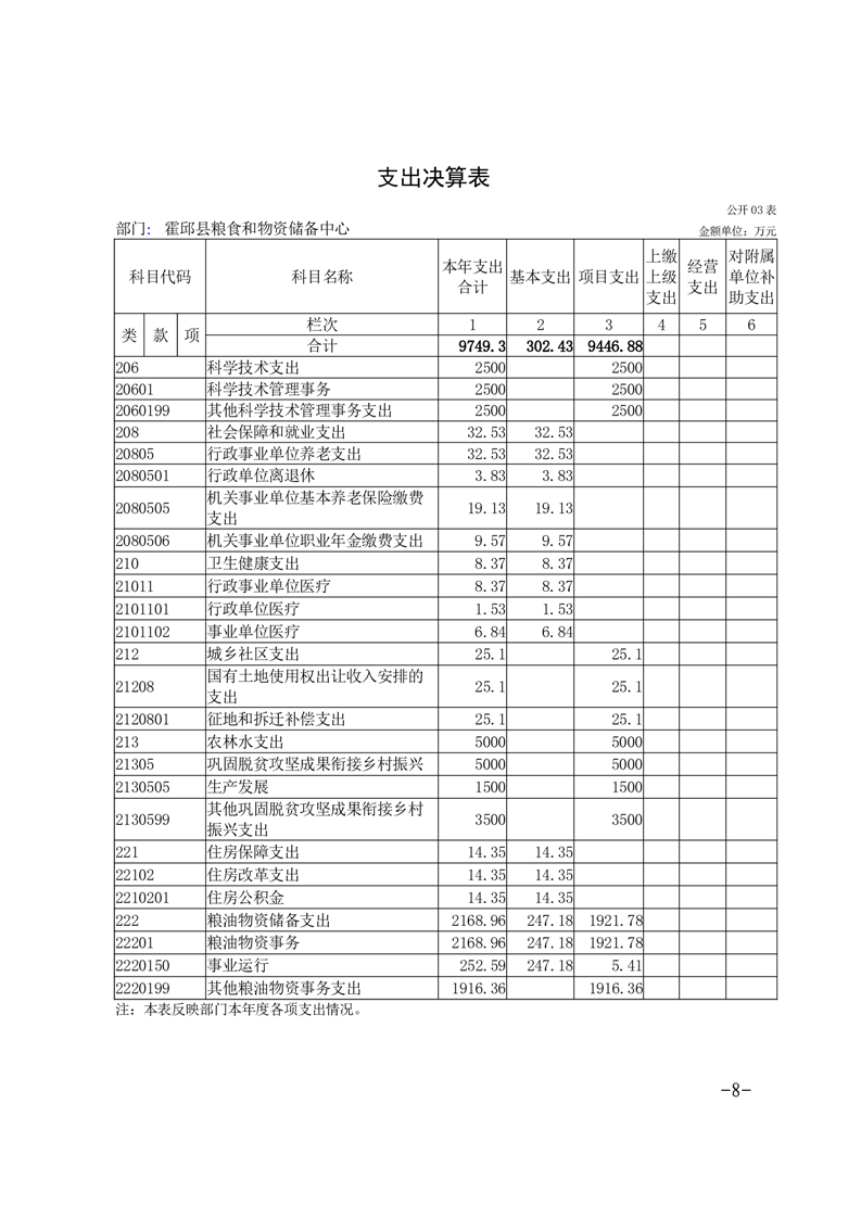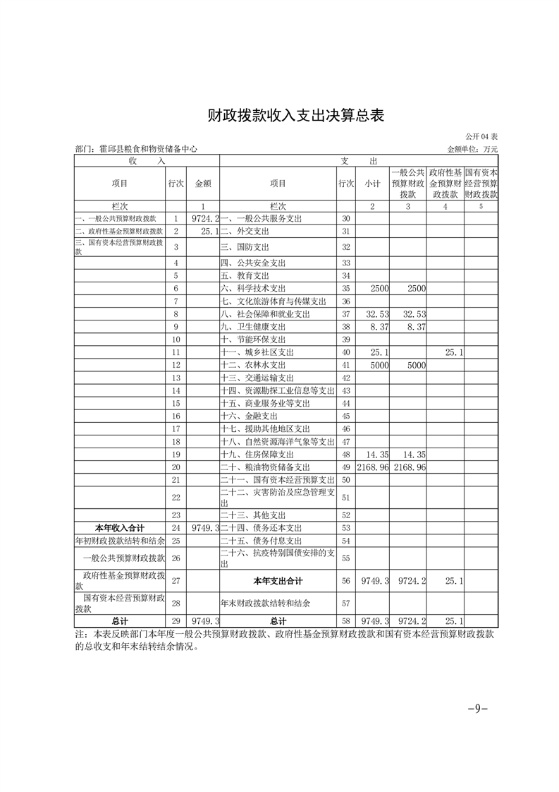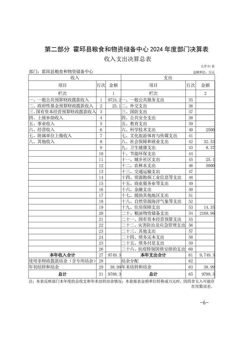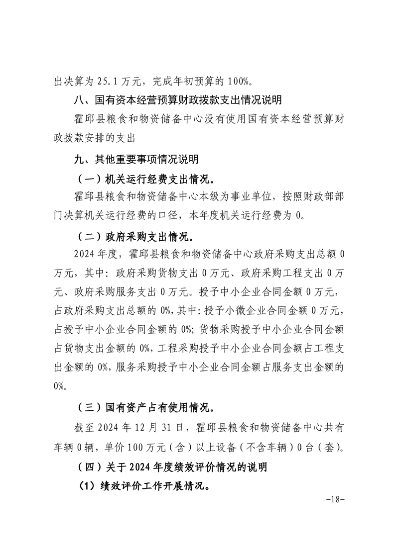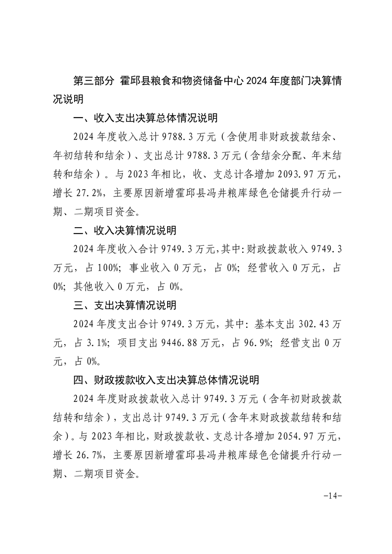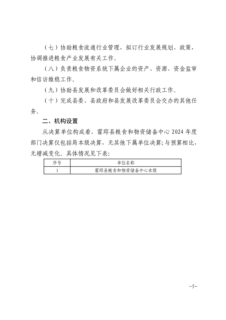 霍邱县粮食和物资储备中心2024年部门决算公开