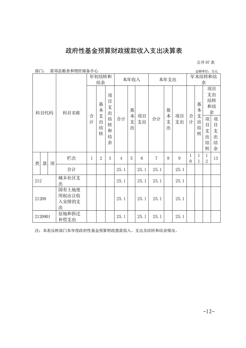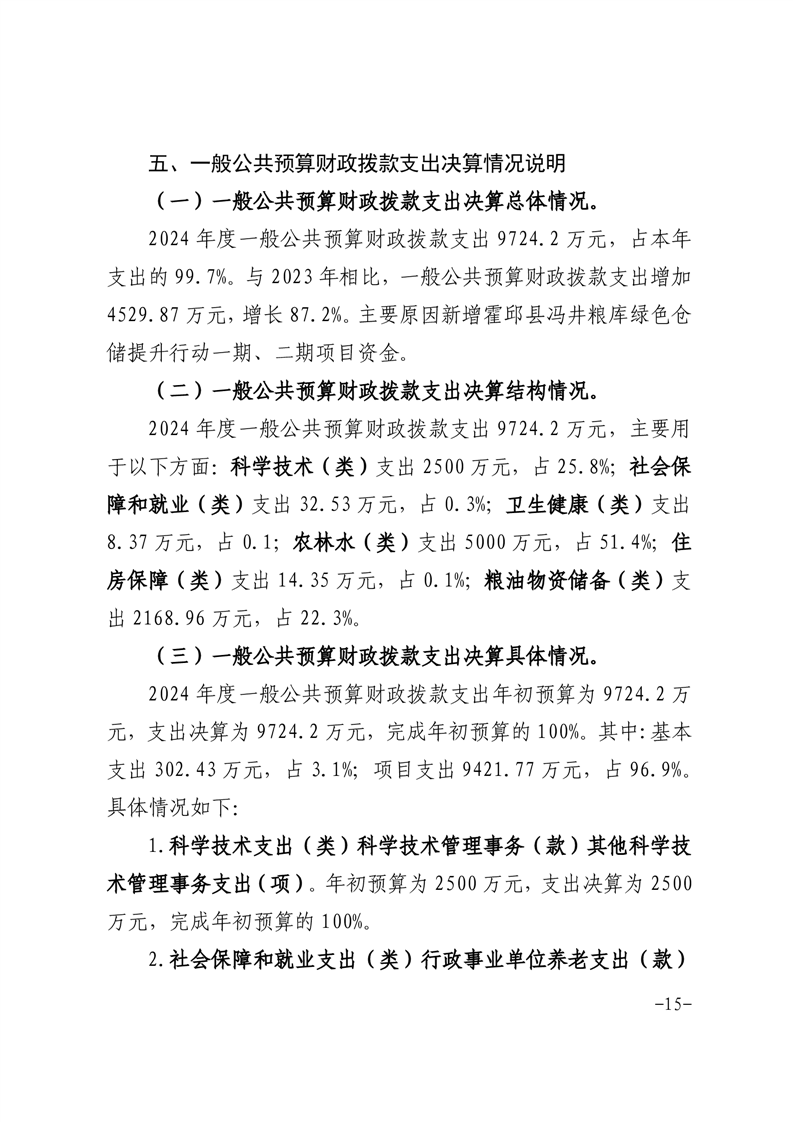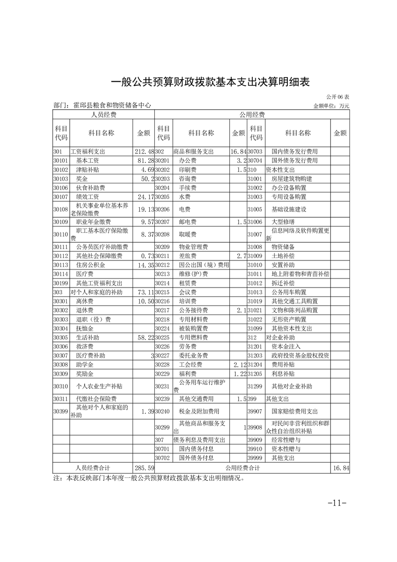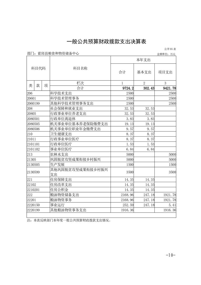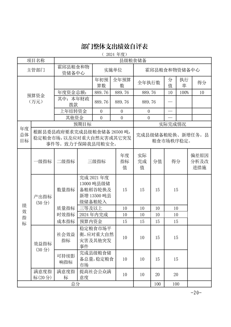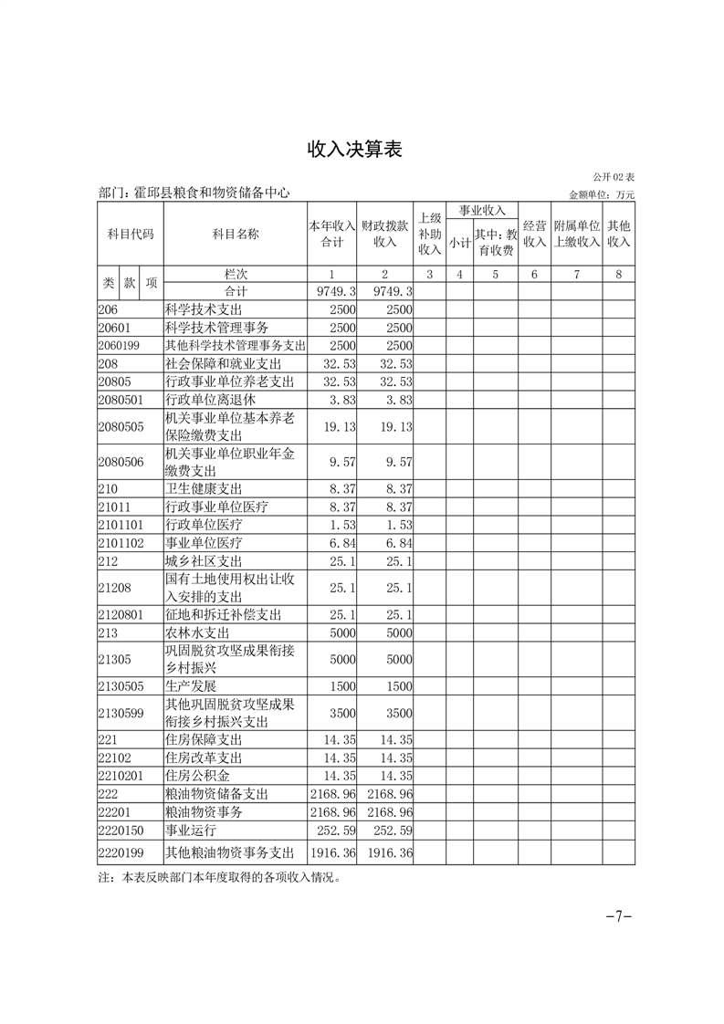 霍邱县粮食和物资储备中心2024年部门决算公开