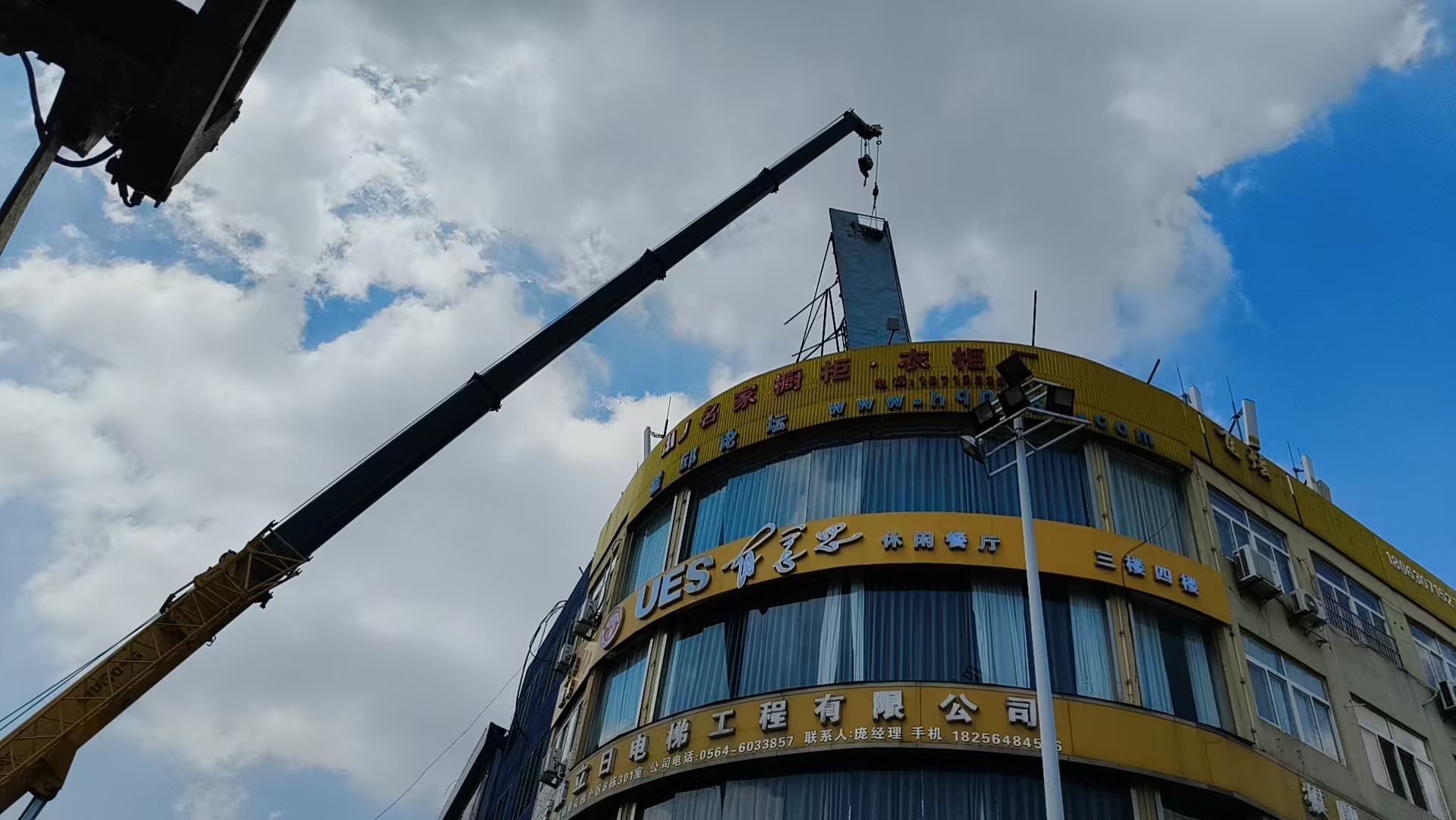 在拆除现场,工作人员拉起警戒线,使用吊车、切割设备等专业工具,按照“先加固、后拆除、保安全”的原则,稳步推进拆除工作。“这些楼顶广告不仅看着杂乱,一到刮风天就晃悠,我们路过都得绕着走。现在拆了,心里踏实多了!”附近居民王先生说道。