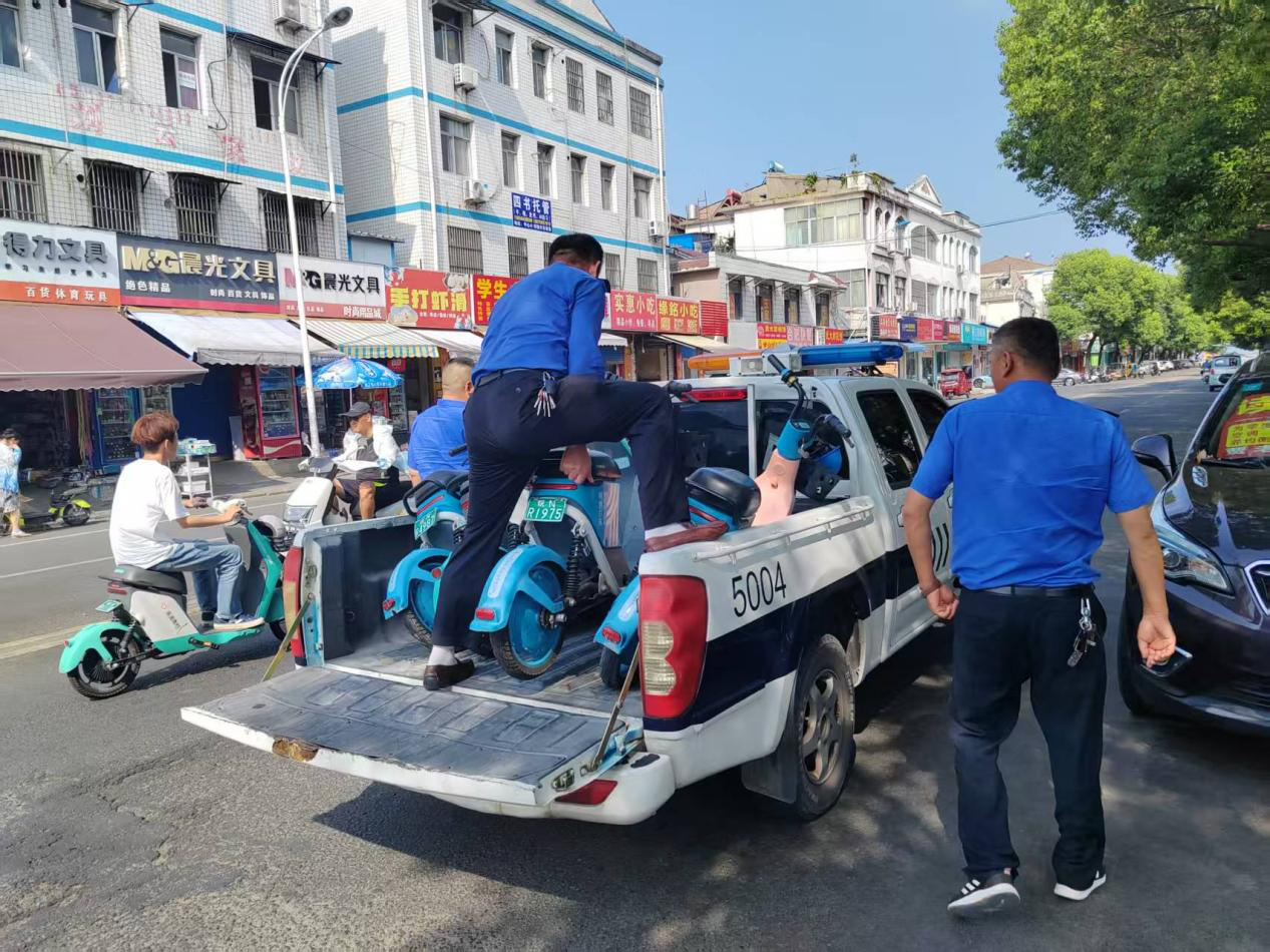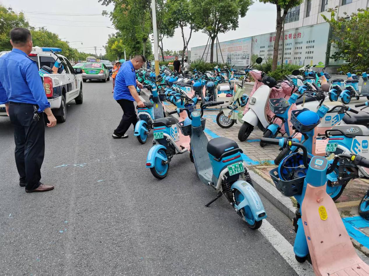 二、加强管控,保障道路畅通。共享单车专班执法人员以“关键点,关键路段,关键路口”为重点,对学校、车站、医院周边及商铺门前等人员密集停放需求量大场所加大监督管理力度,对阻碍道路通行,未规范停放的共享单车逐一进行清理拖移。