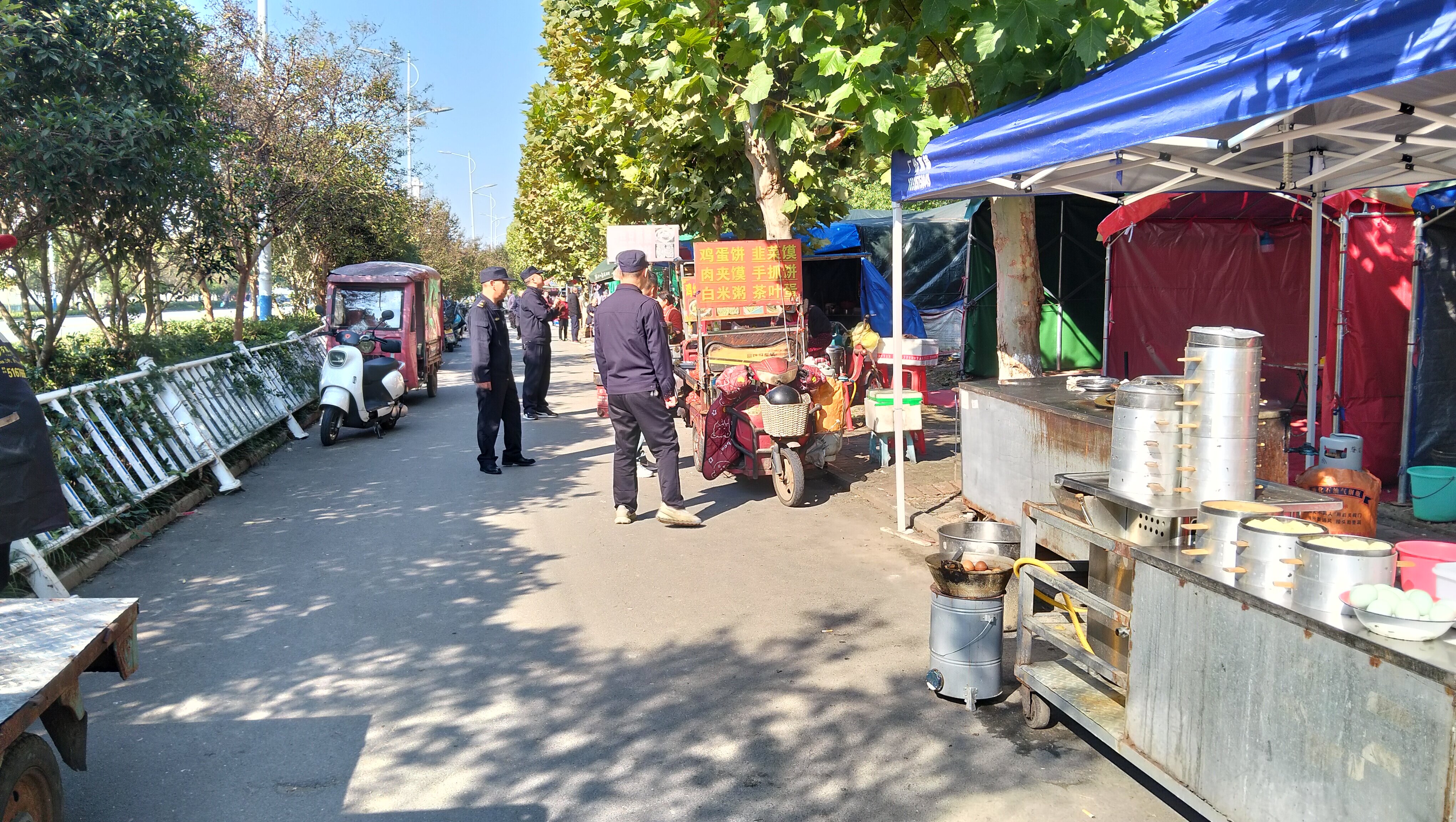 近日,霍邱县城市管理局城南大队针对蓼南路县人民医院(南区)花台小区门前流动摊点开展破坏绿化、占道经营小吃专项整治,取得明显成效,执法人员通过劝导宣传与严格执法相结合方式,有效规范了花台小区人行道长期占道的经营秩序,获得市民和商户的一致好评。