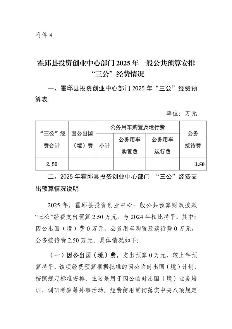 霍邱县投资创业中心部门2025年一般公共预算安排“三公”经费情况