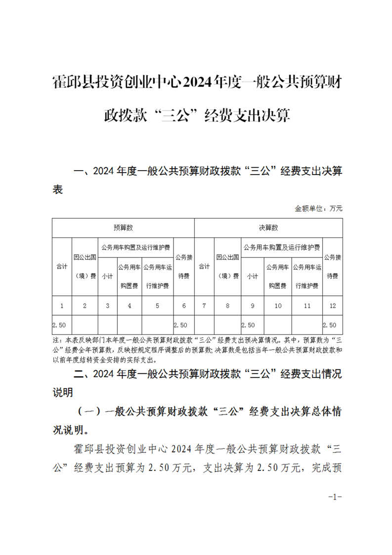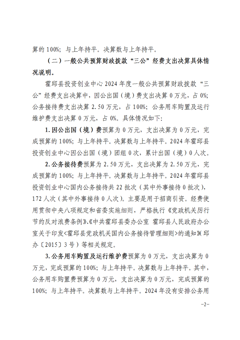 霍邱县投资创业中心2024年度一般公共预算财政拨款“三公”经费支出决算