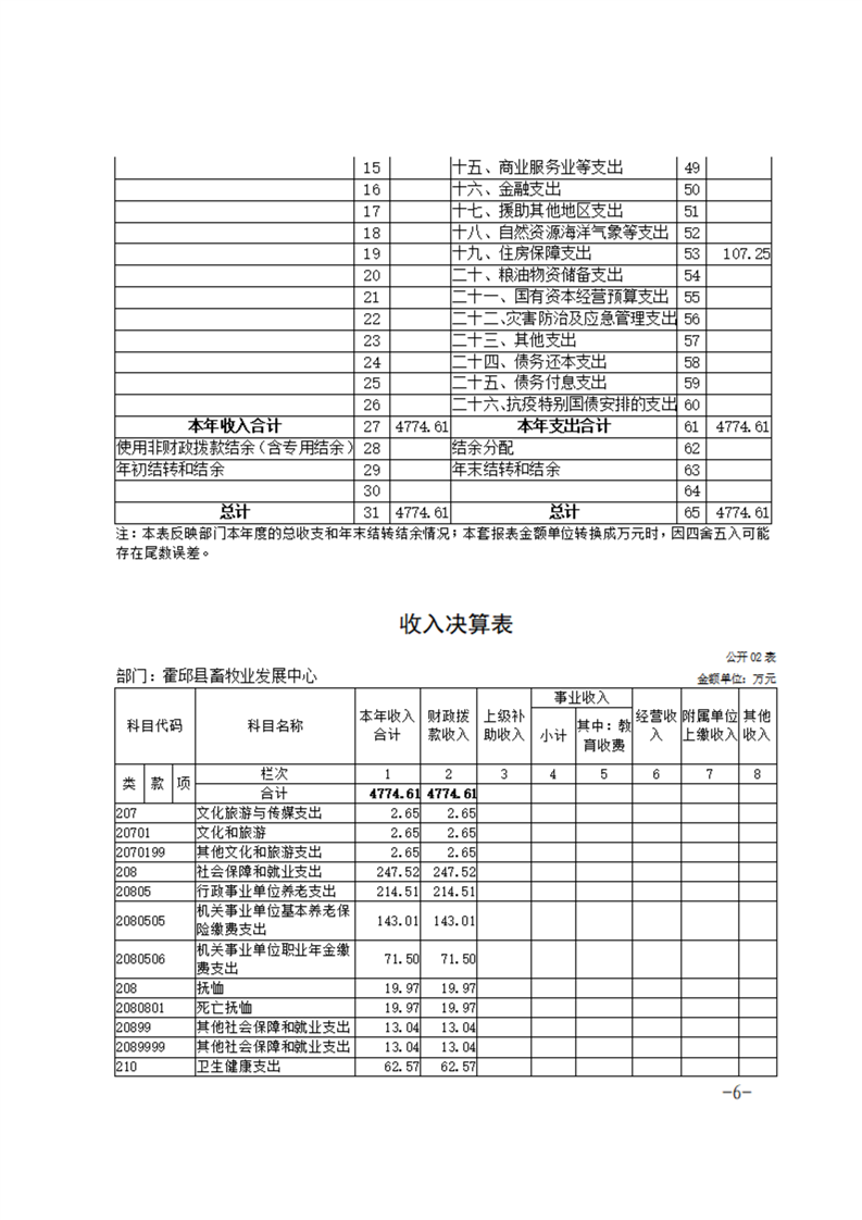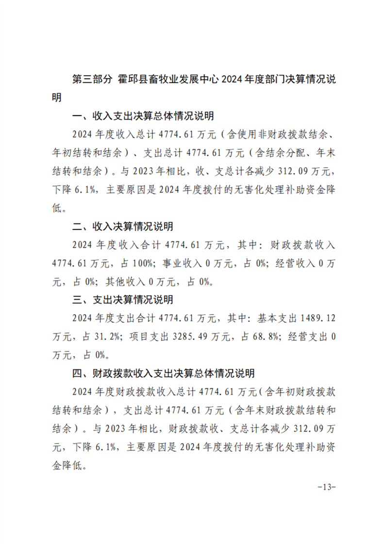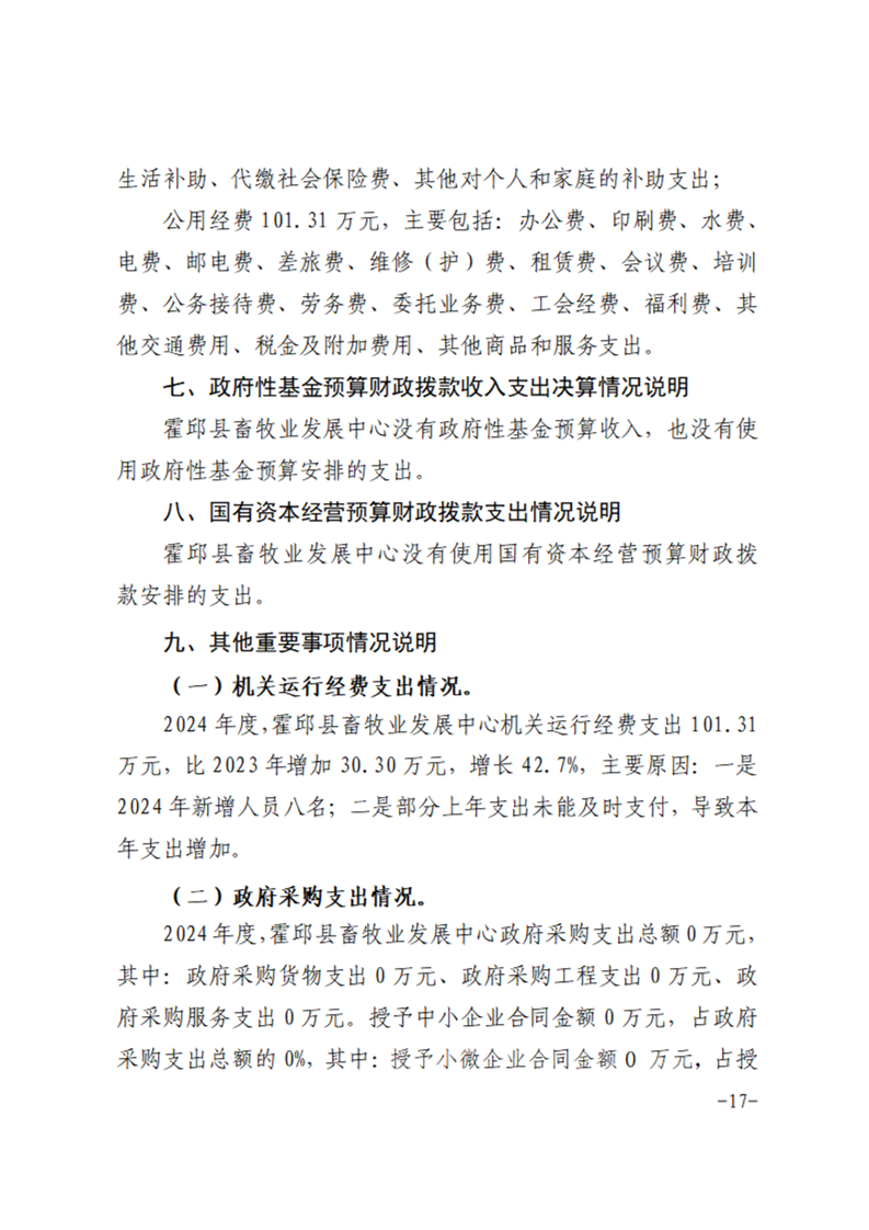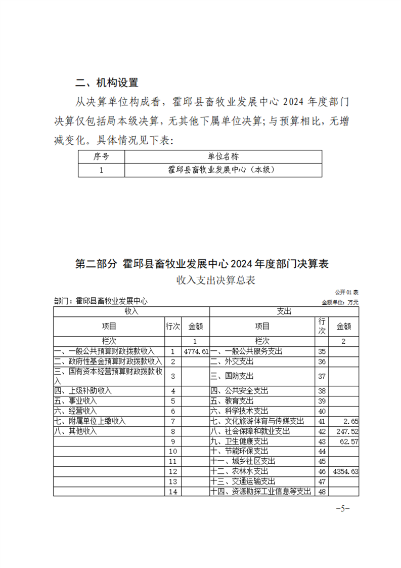 霍邱县畜牧业发展中心2024年度部门决算公开