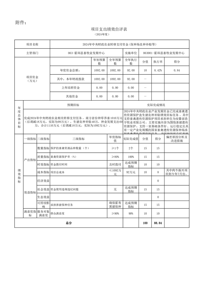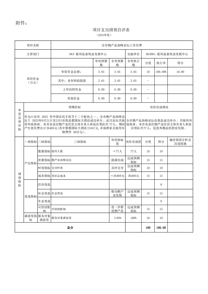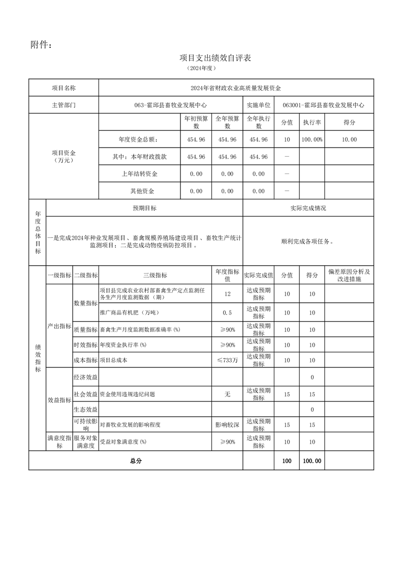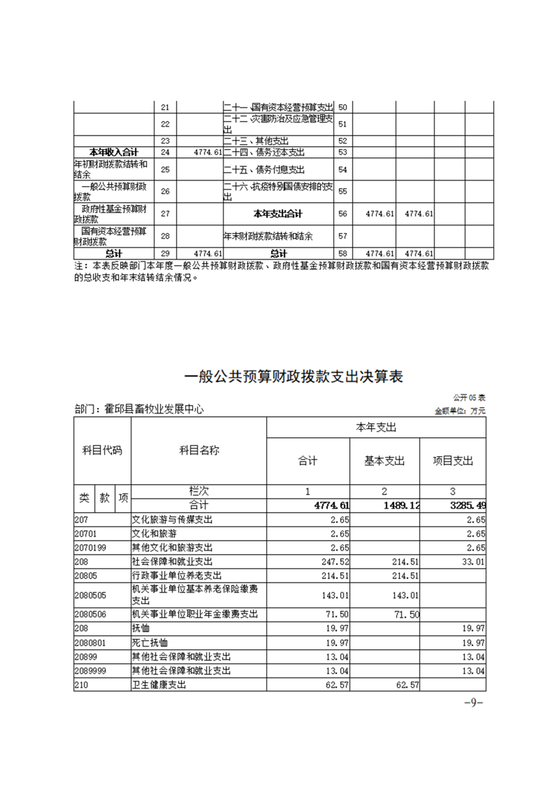 霍邱县畜牧业发展中心2024年度部门决算公开