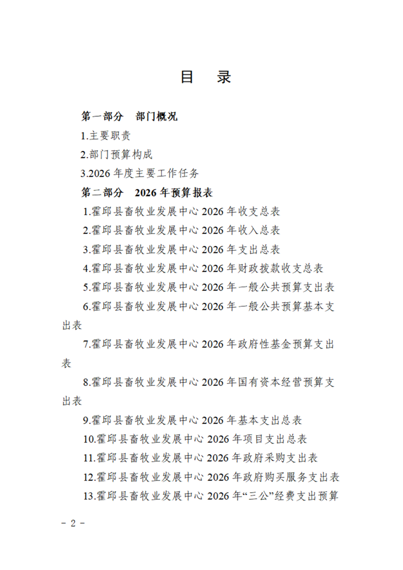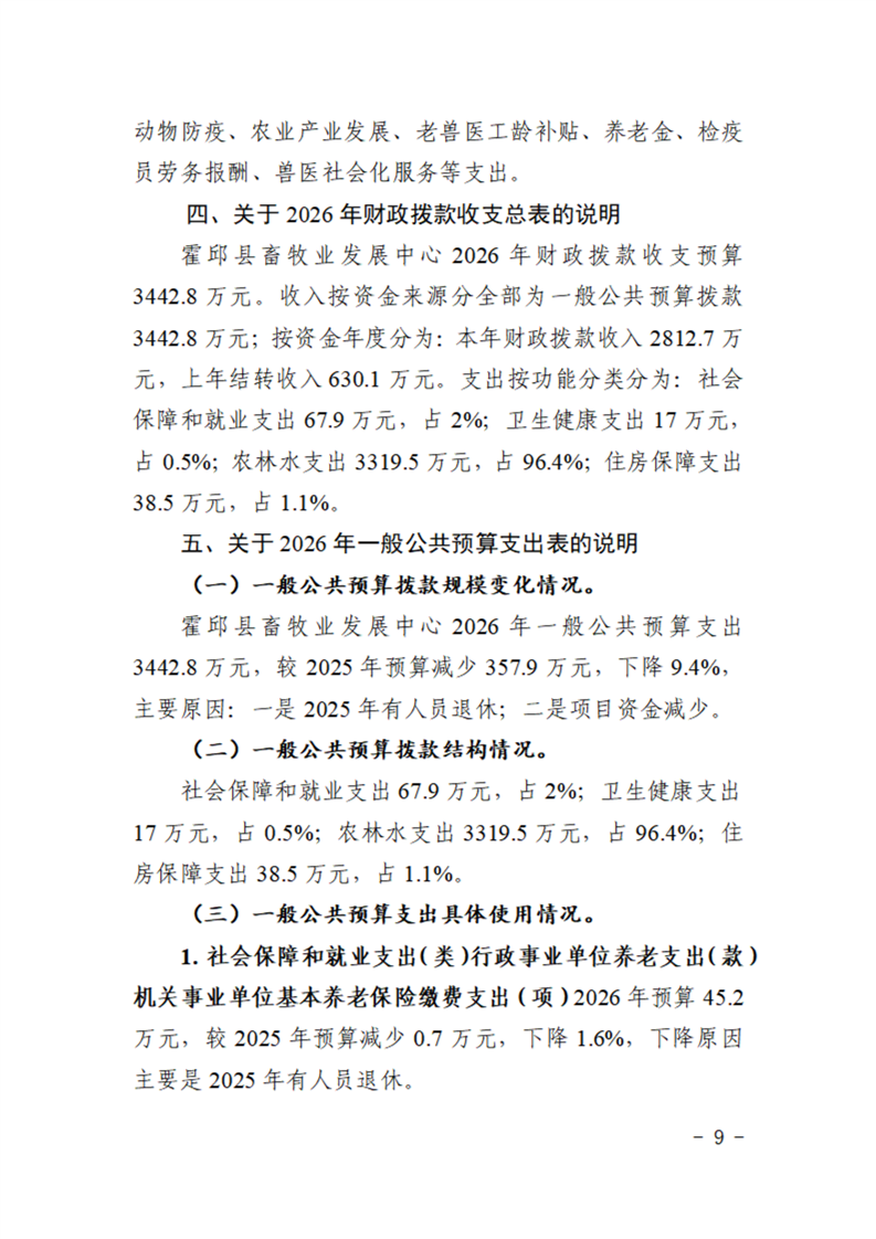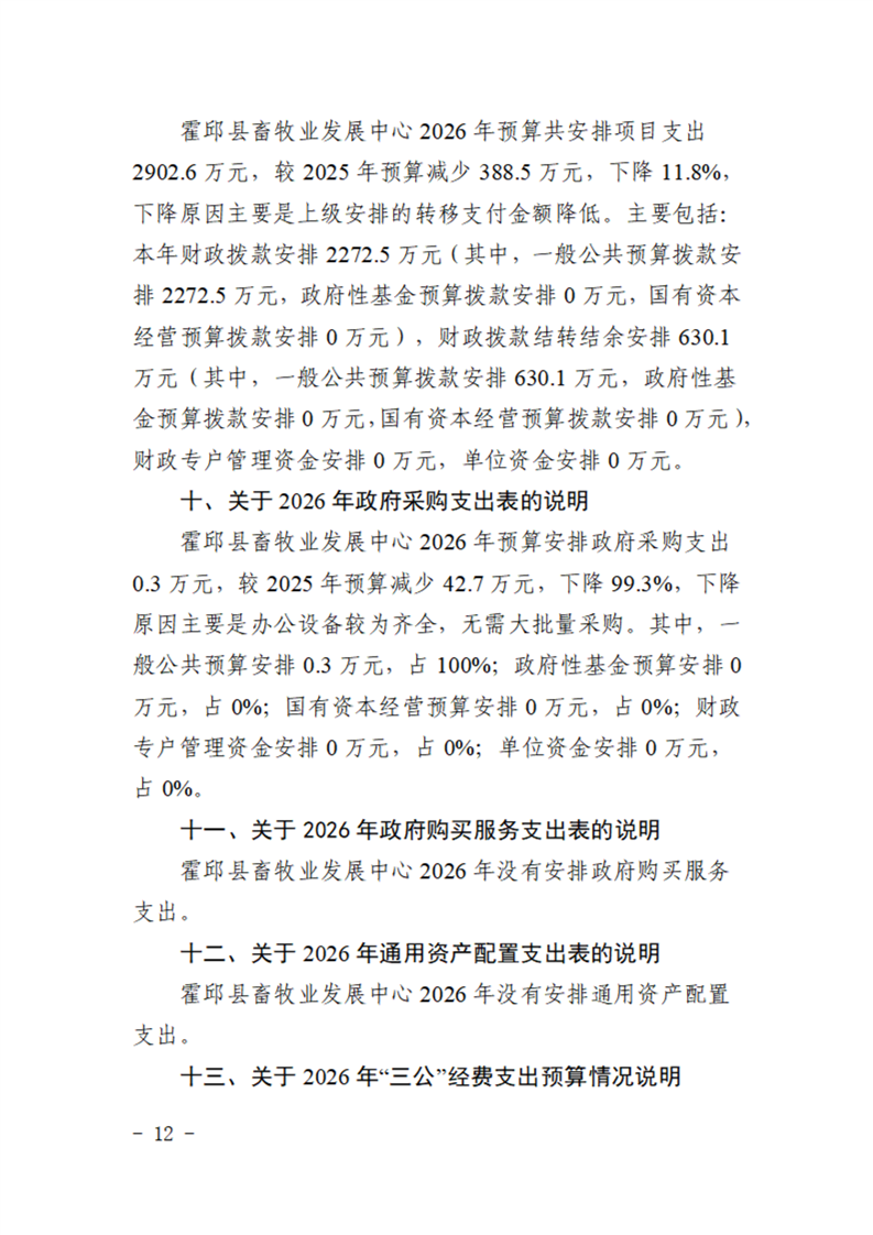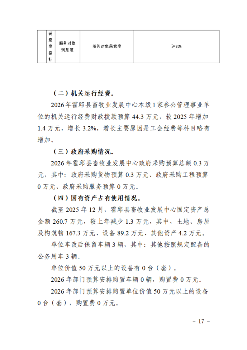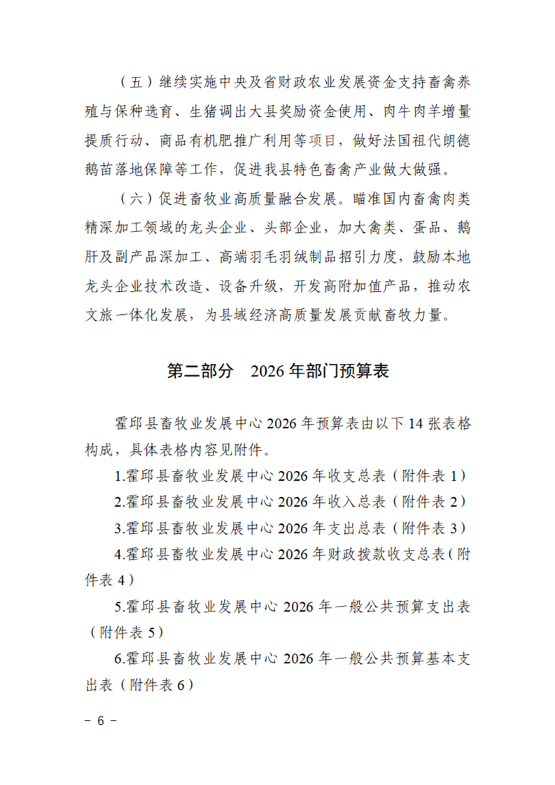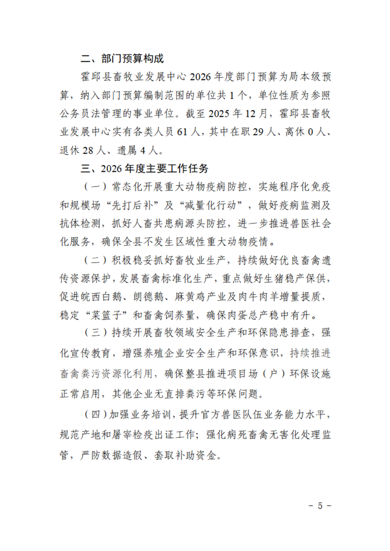 霍邱县畜牧业发展中心2026年部门预算公开