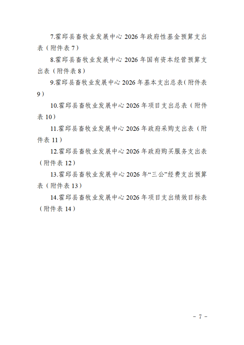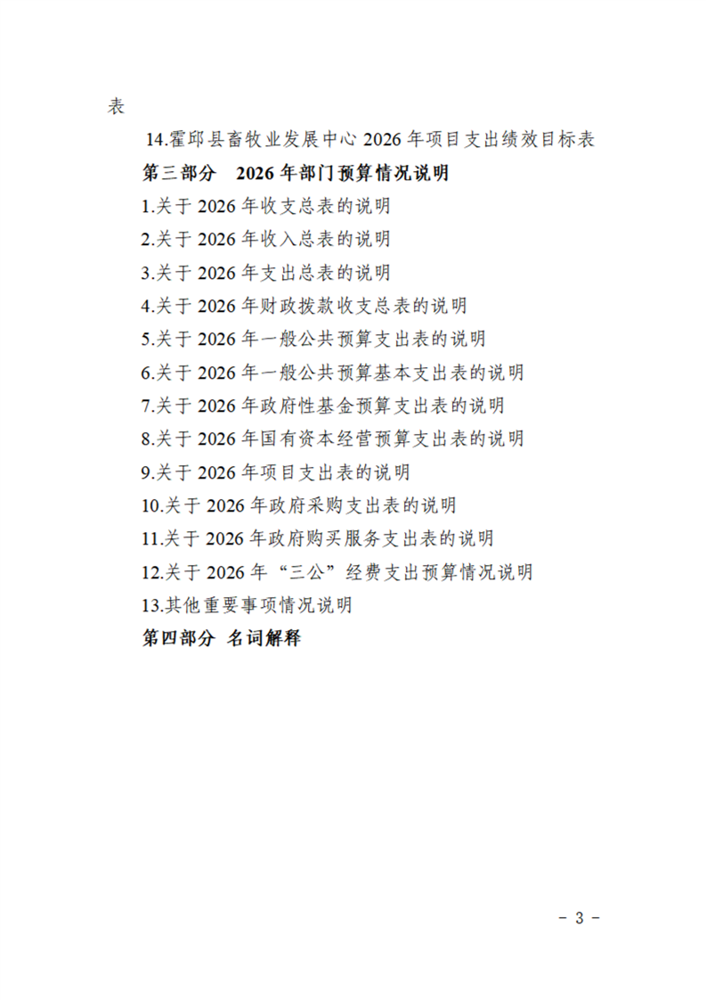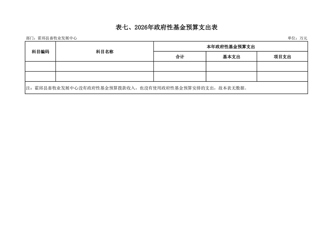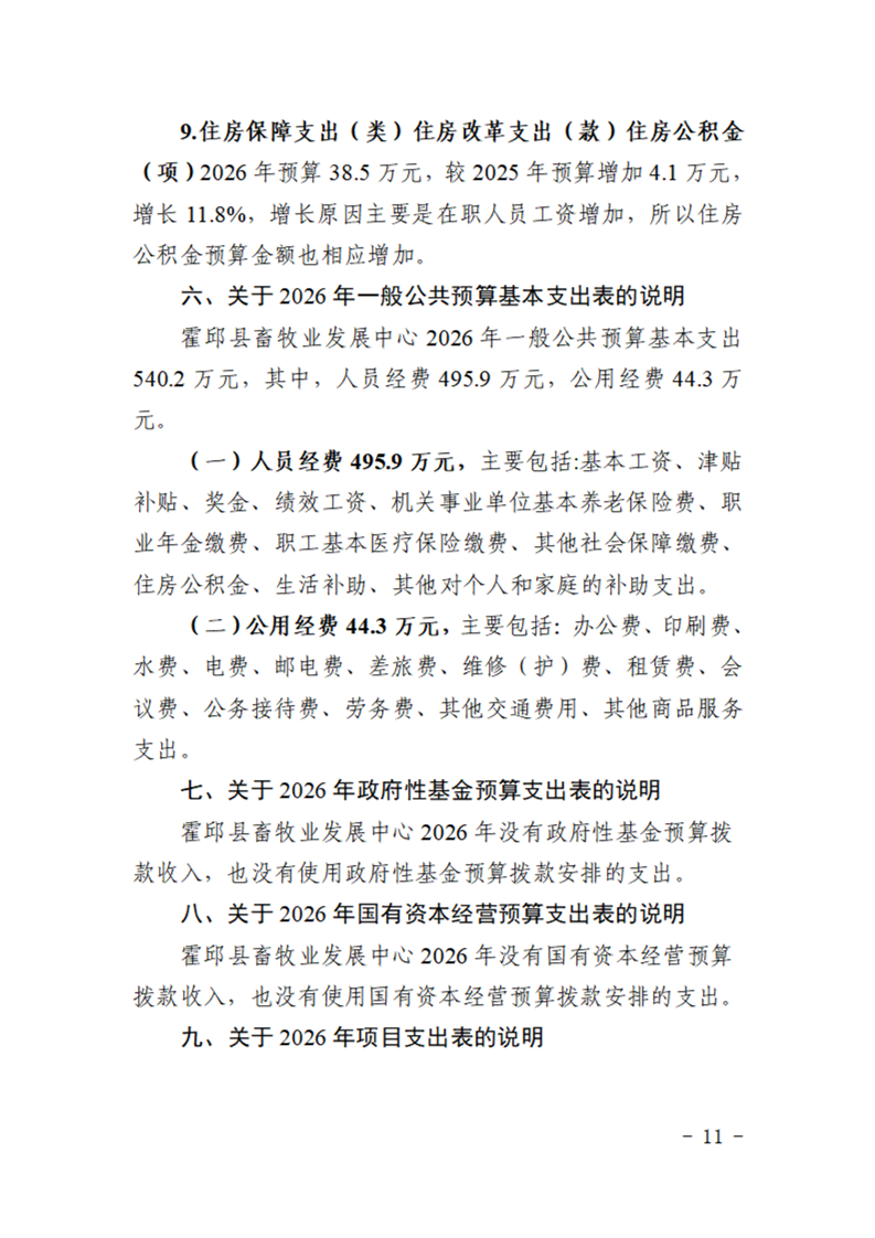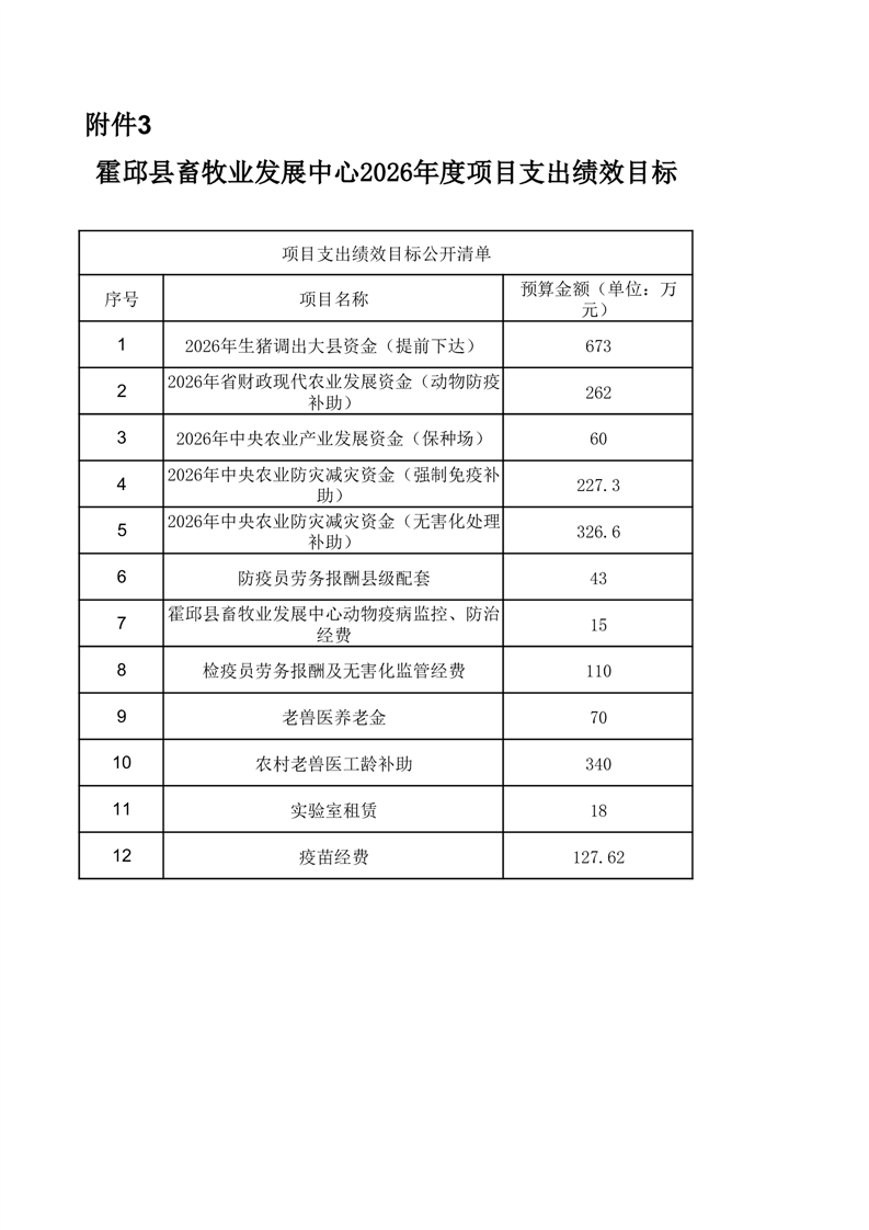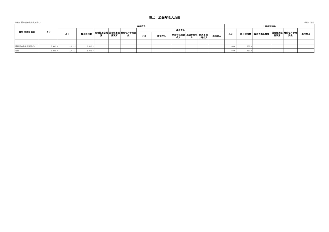 霍邱县畜牧业发展中心2026年部门预算公开