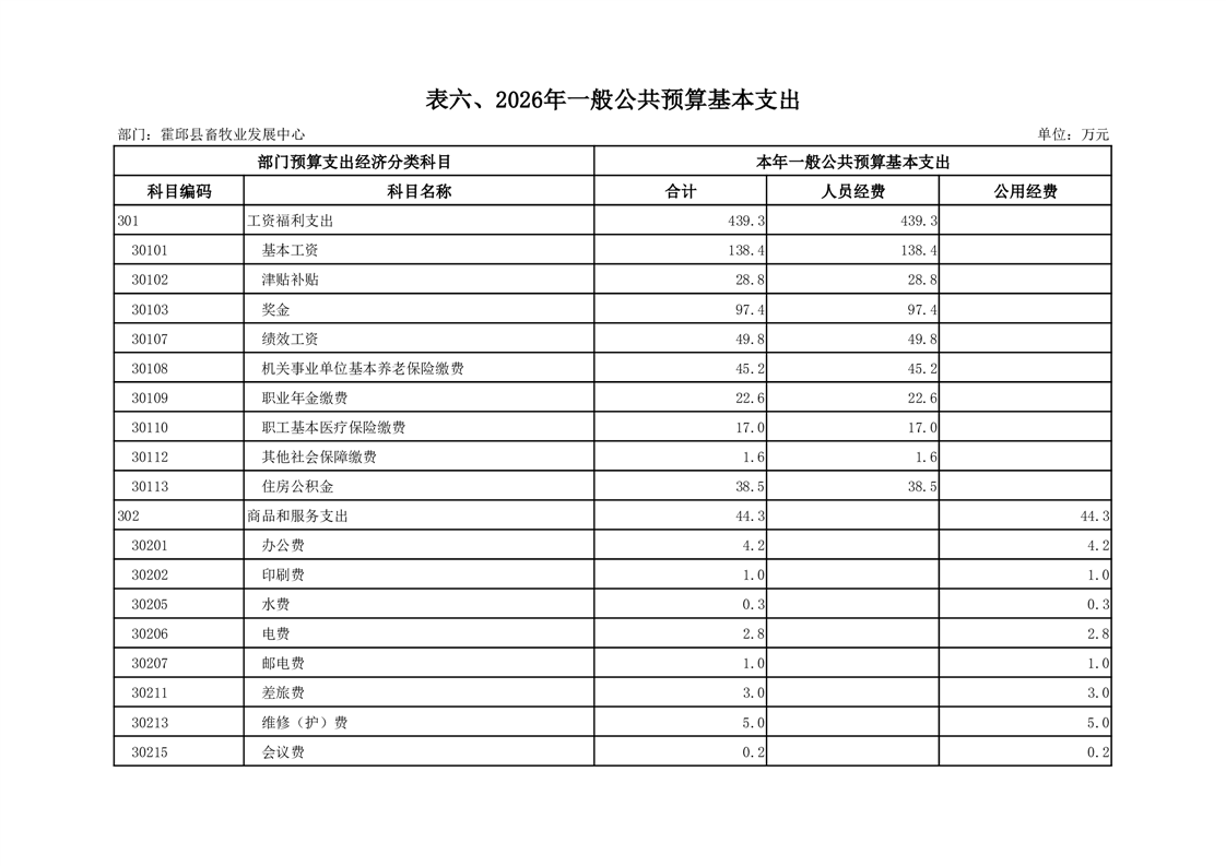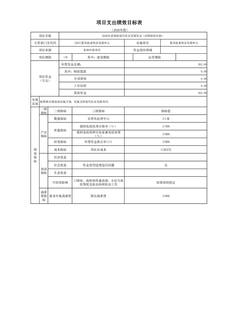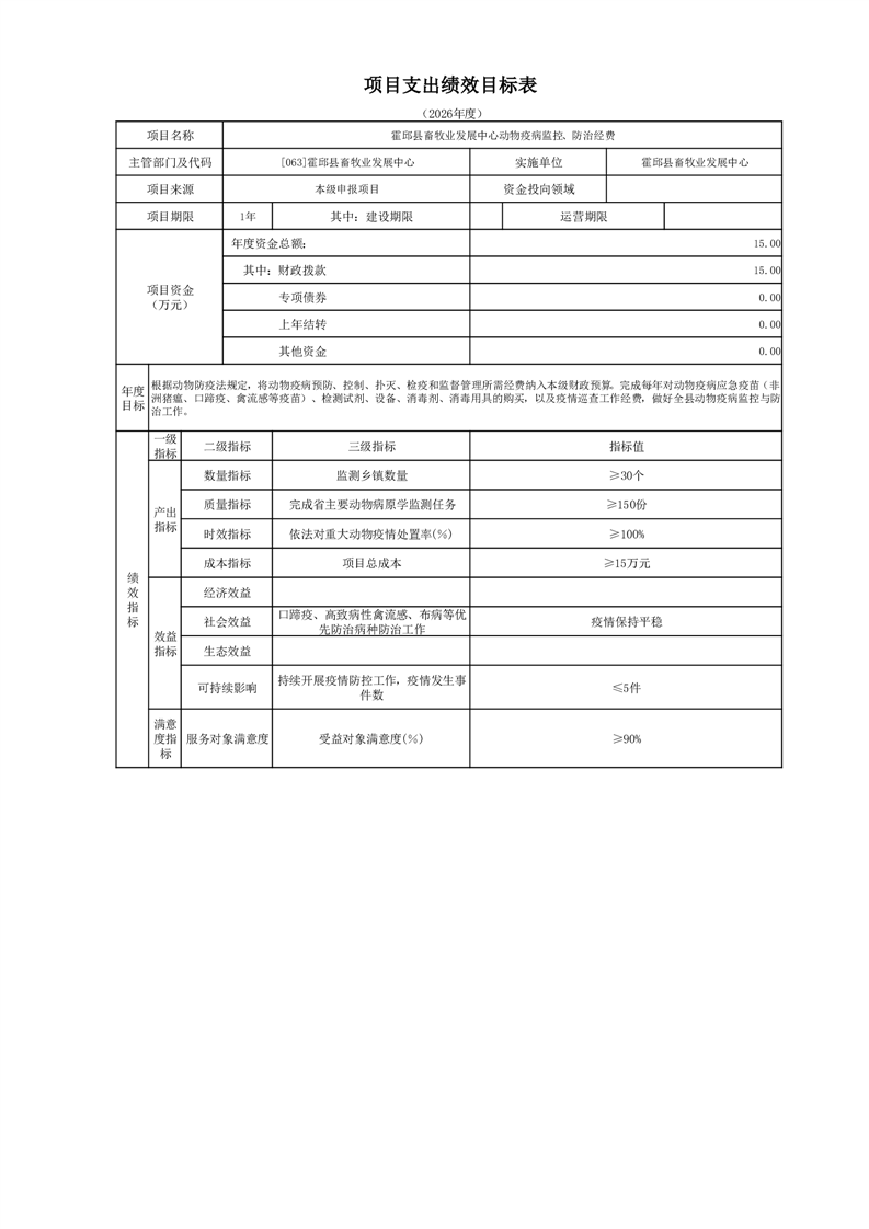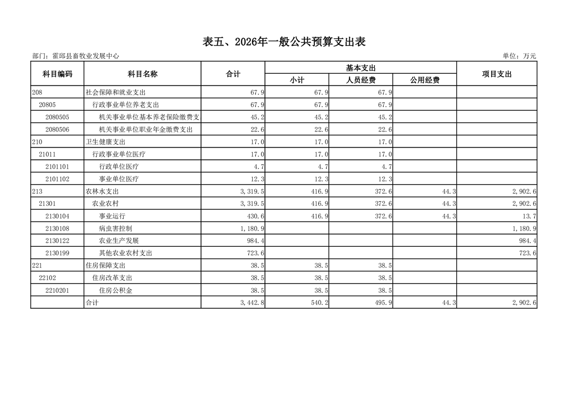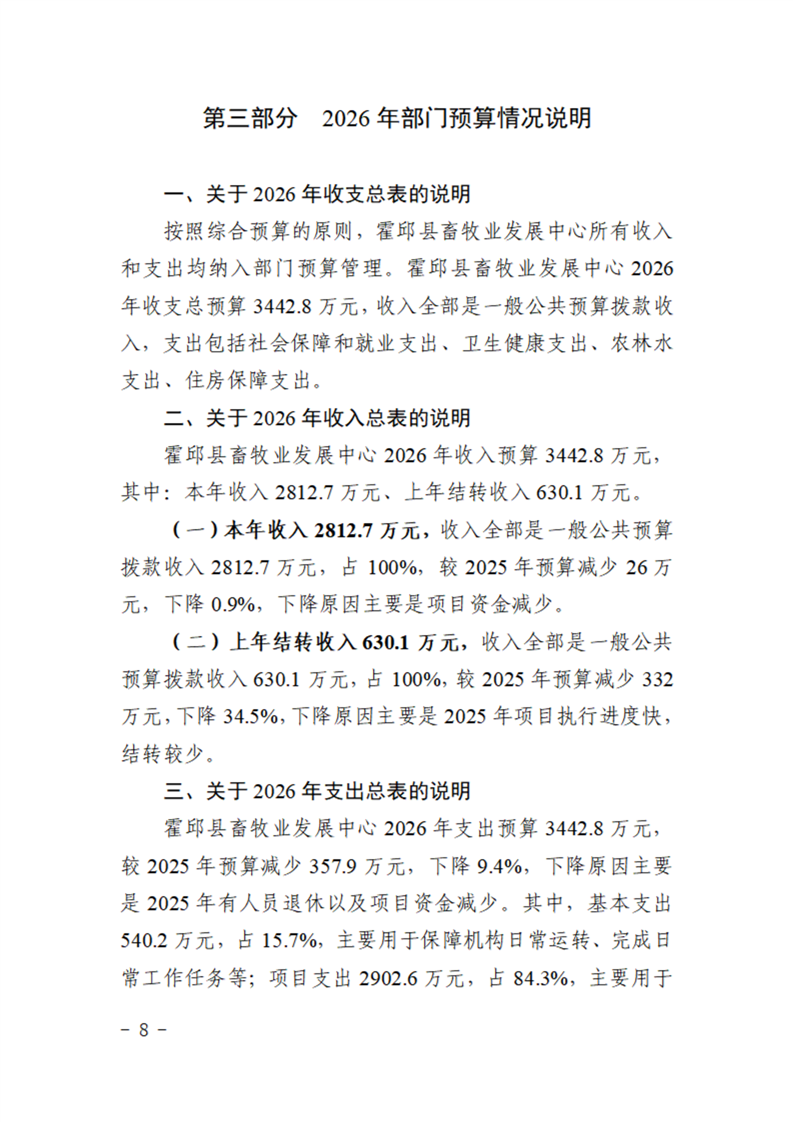 霍邱县畜牧业发展中心2026年部门预算公开