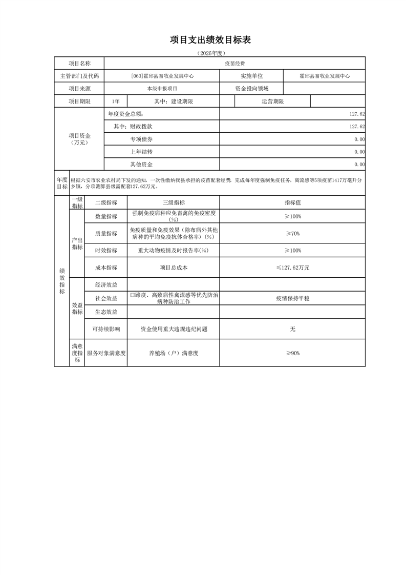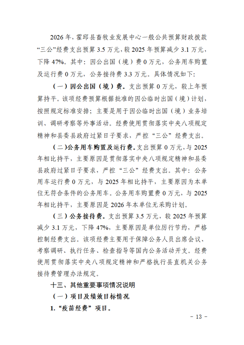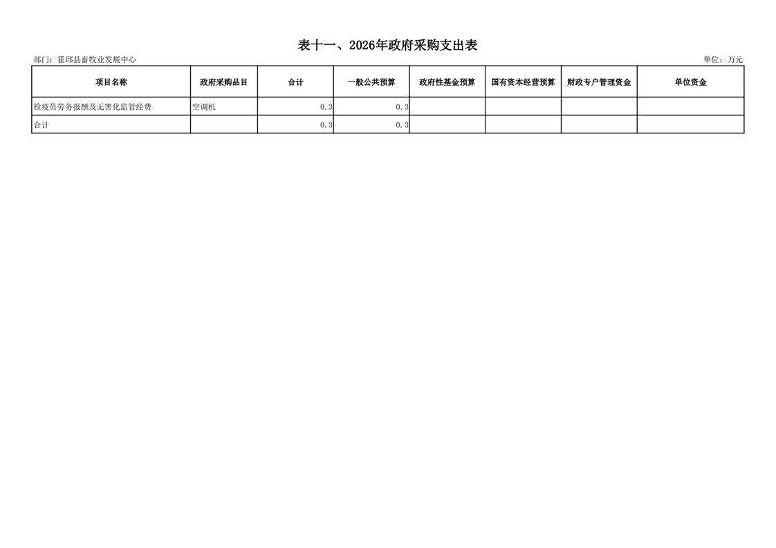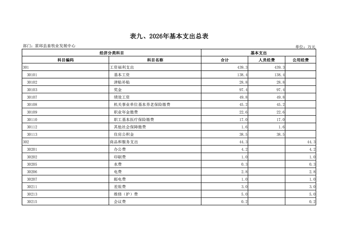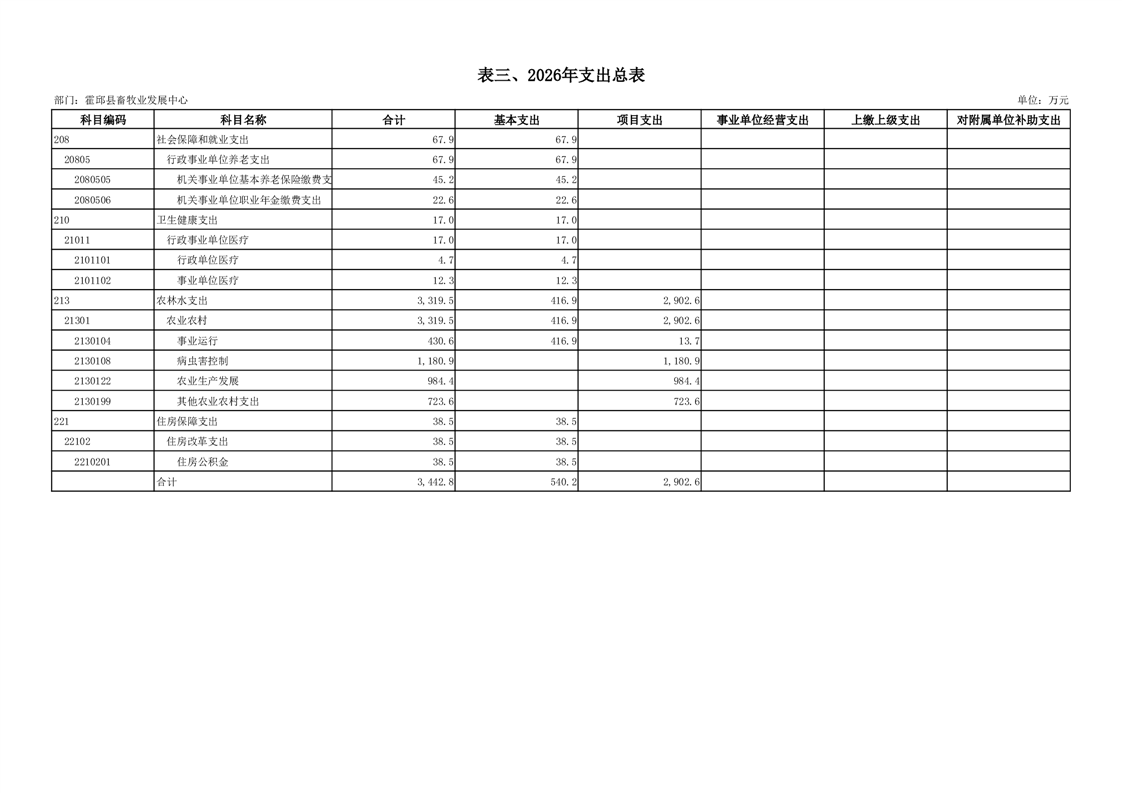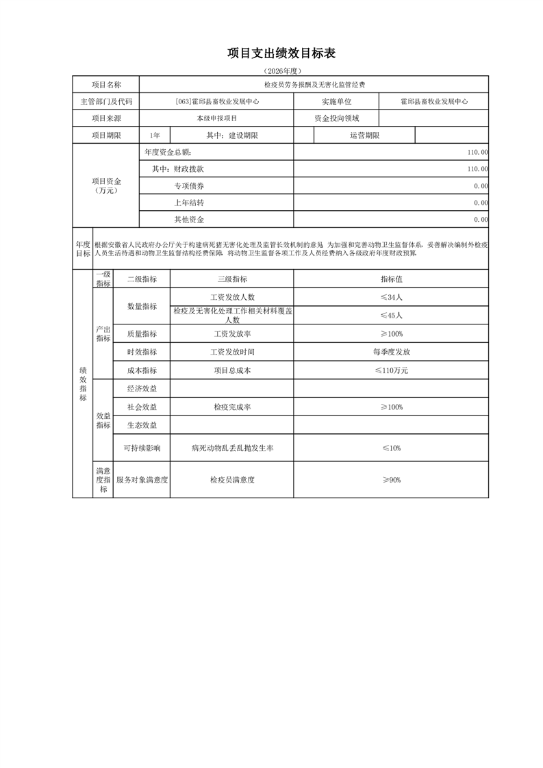 霍邱县畜牧业发展中心2026年部门预算公开
