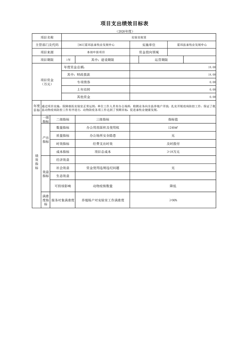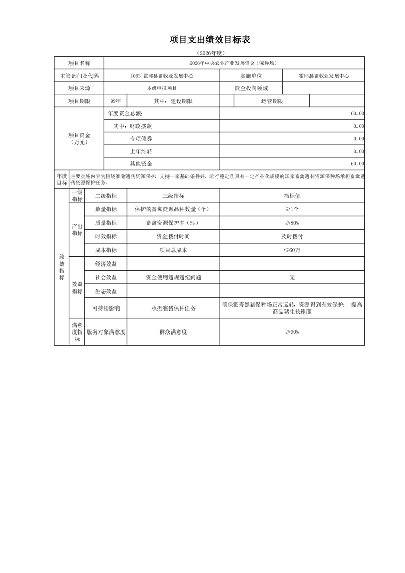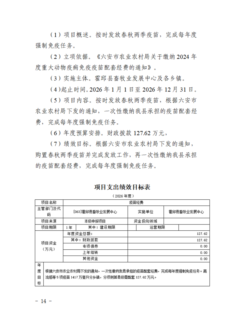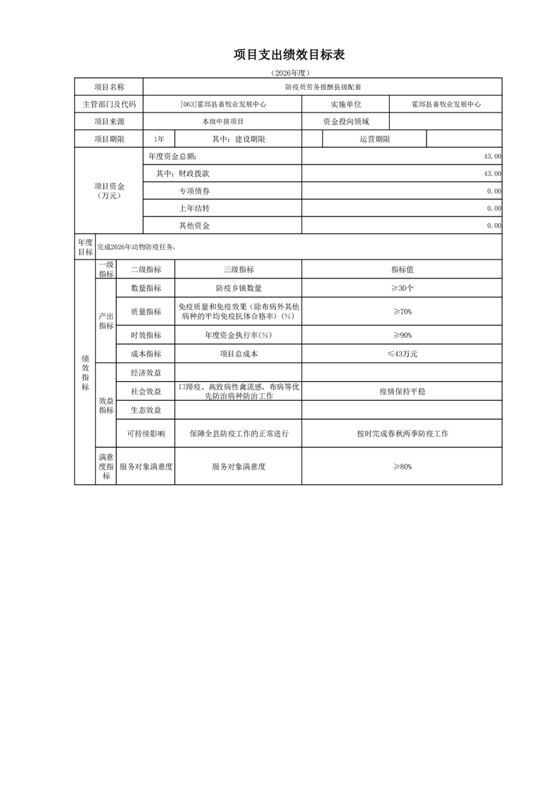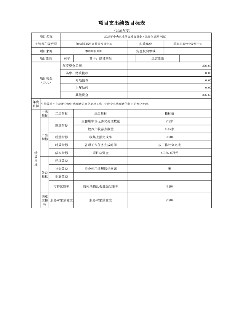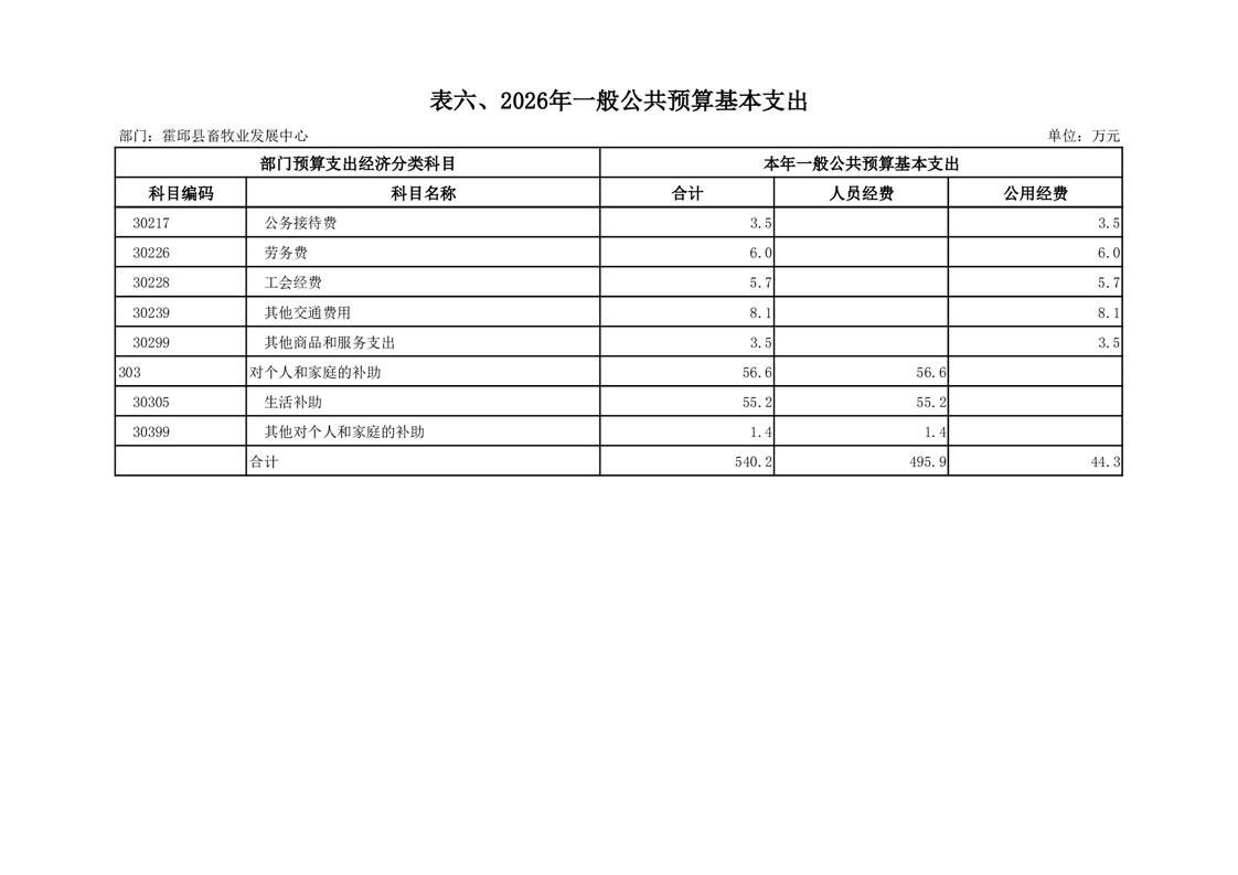 霍邱县畜牧业发展中心2026年部门预算公开