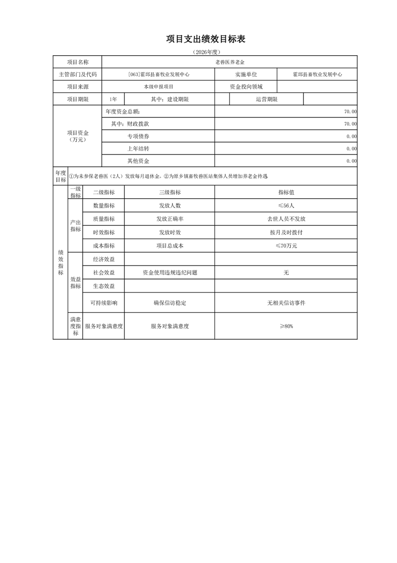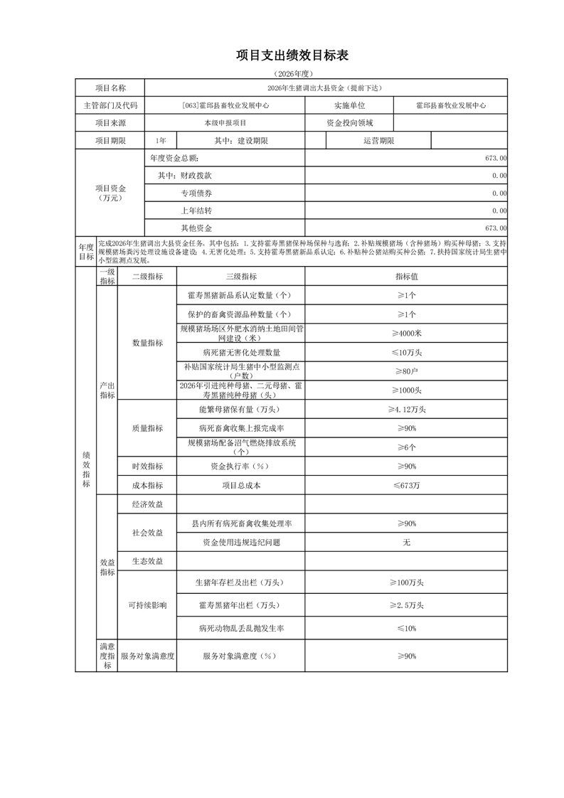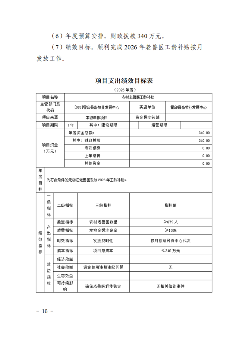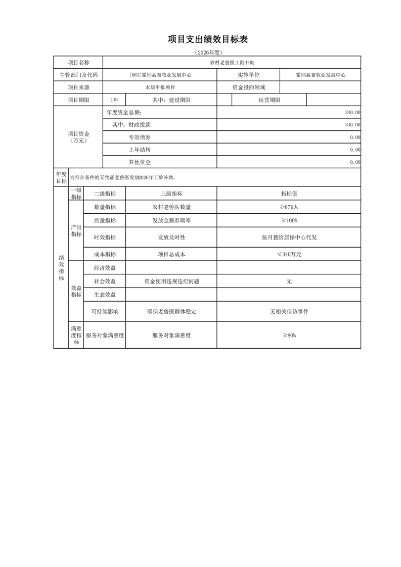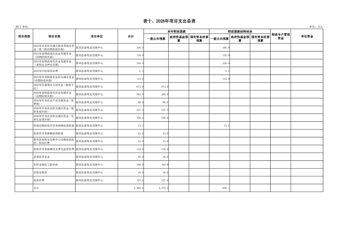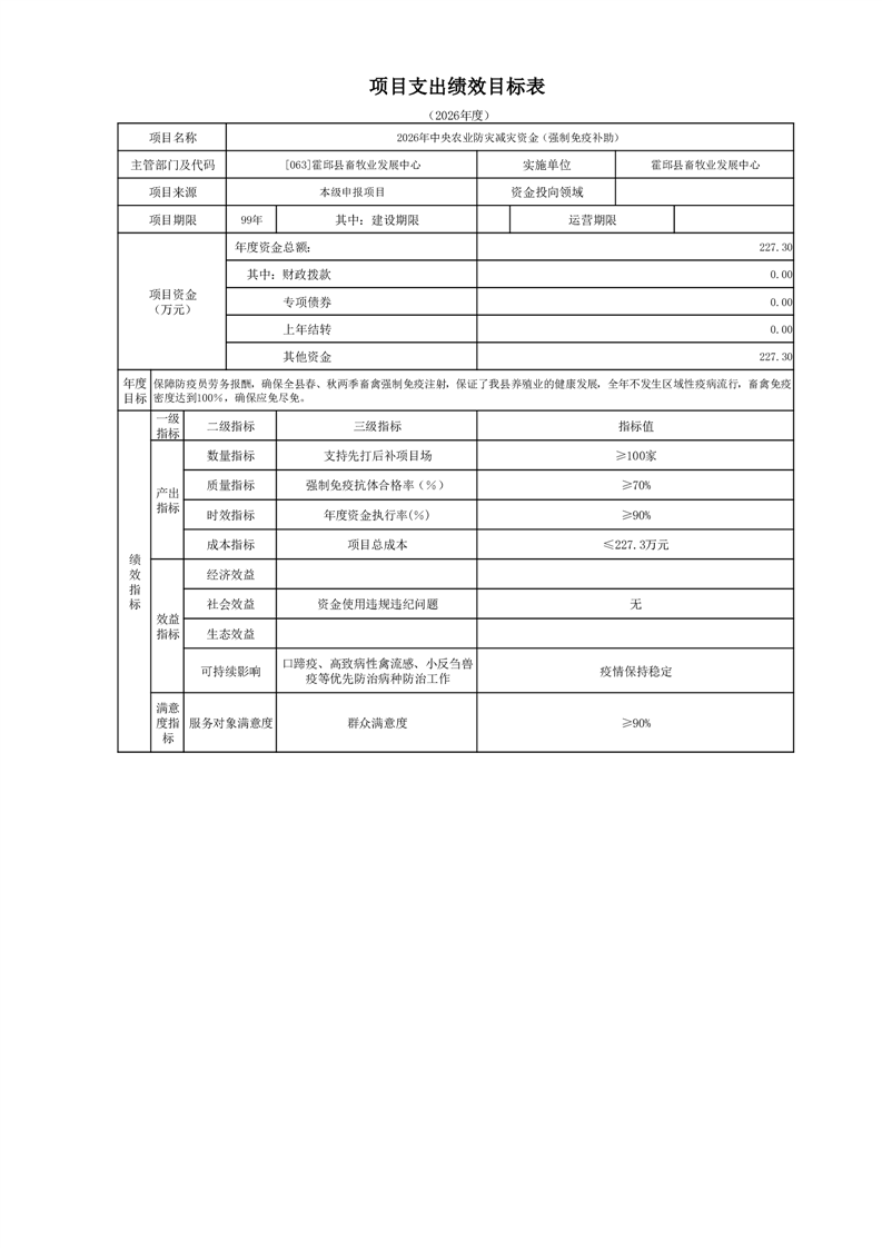 霍邱县畜牧业发展中心2026年部门预算公开