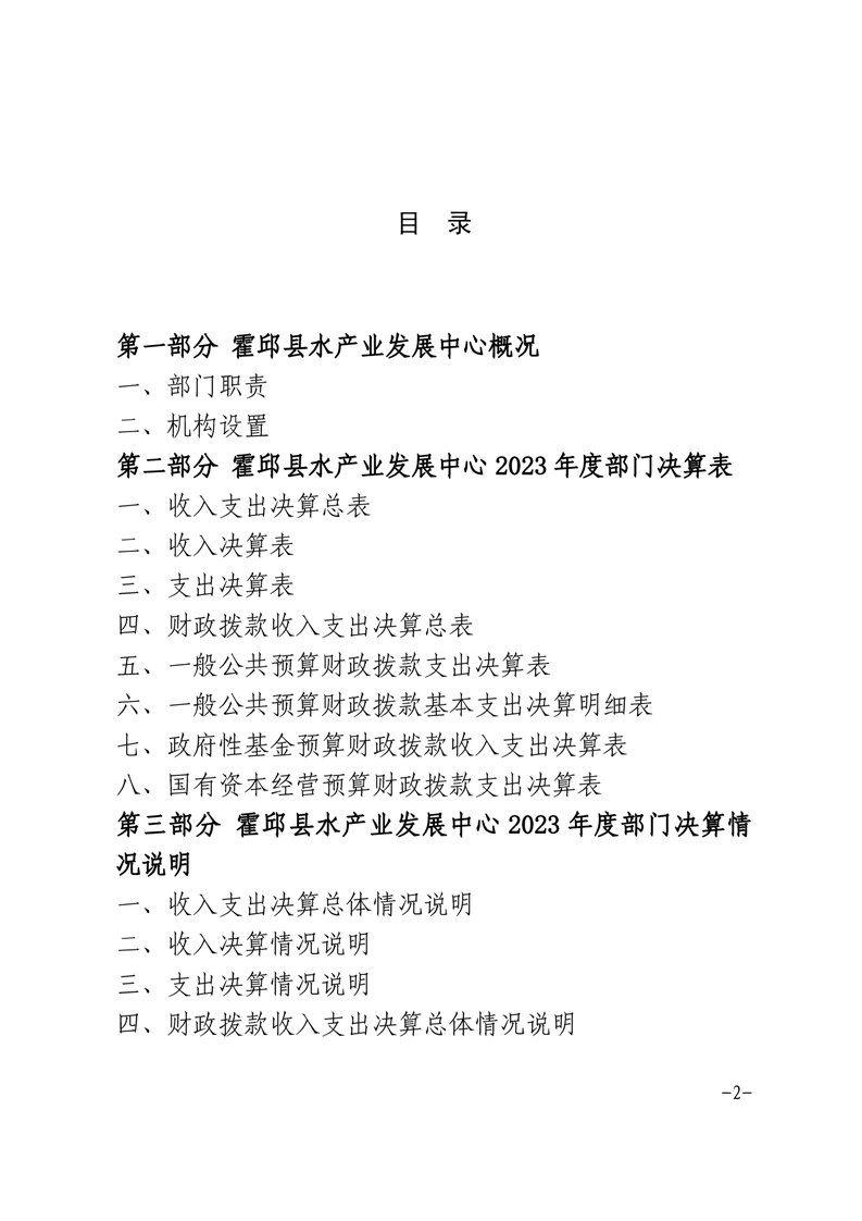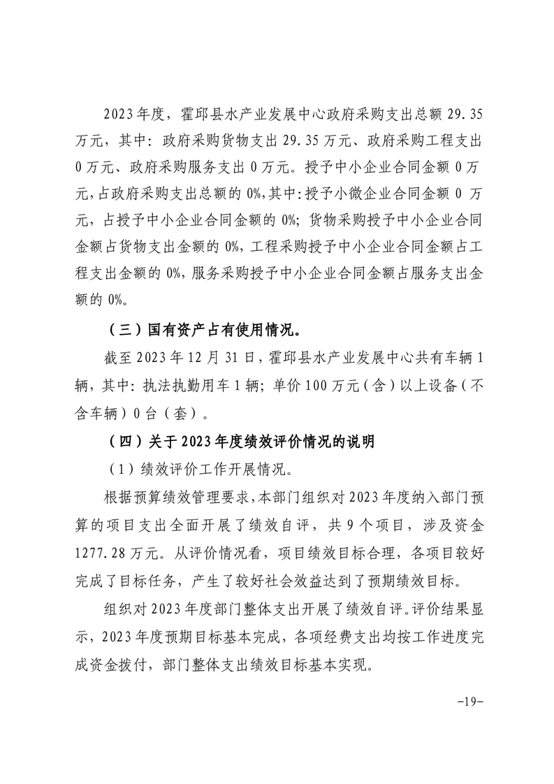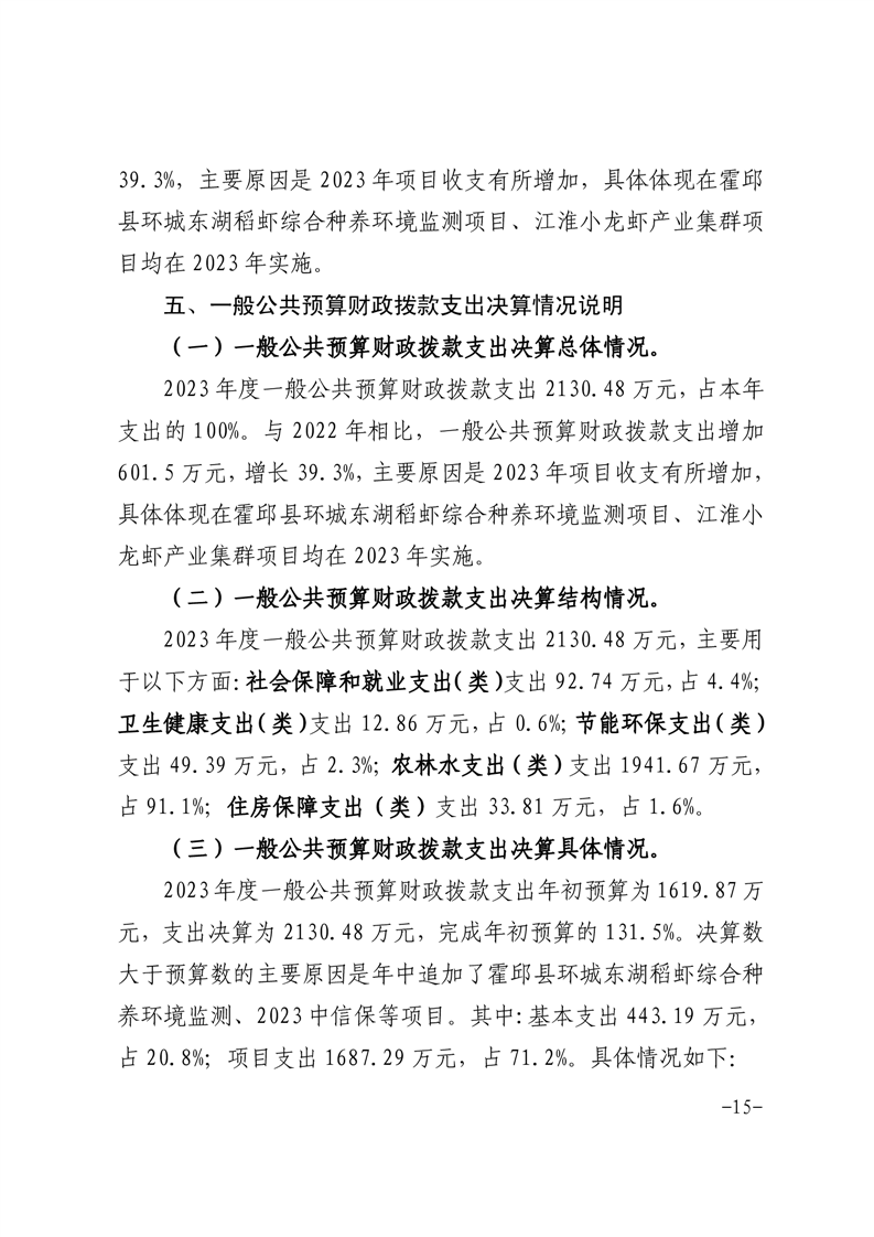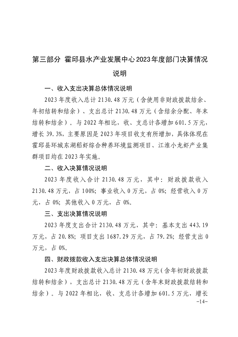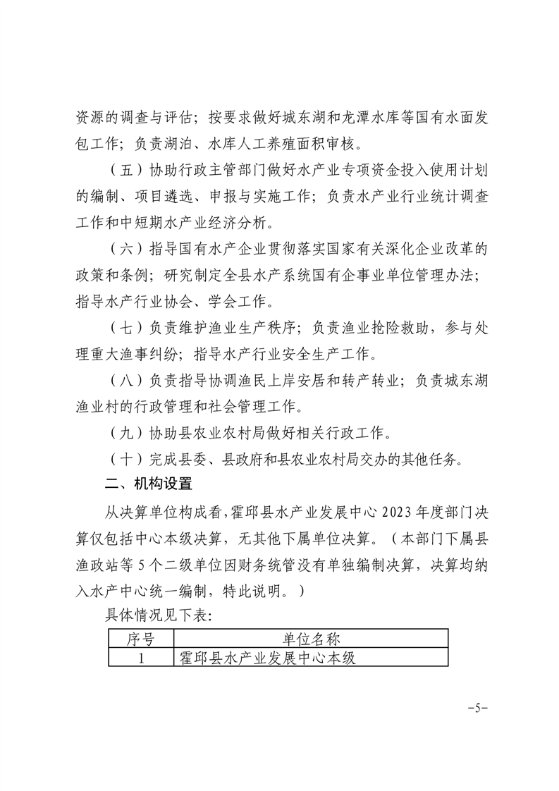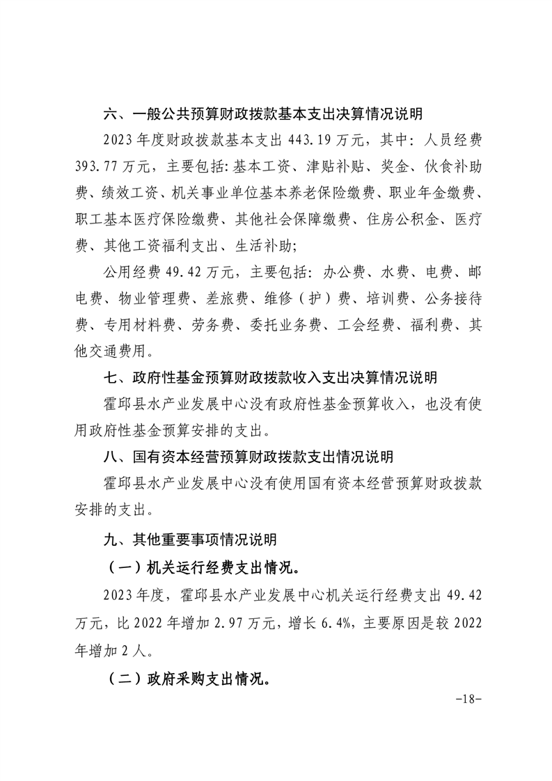 霍邱县水产业发展中心2023年度部门决算