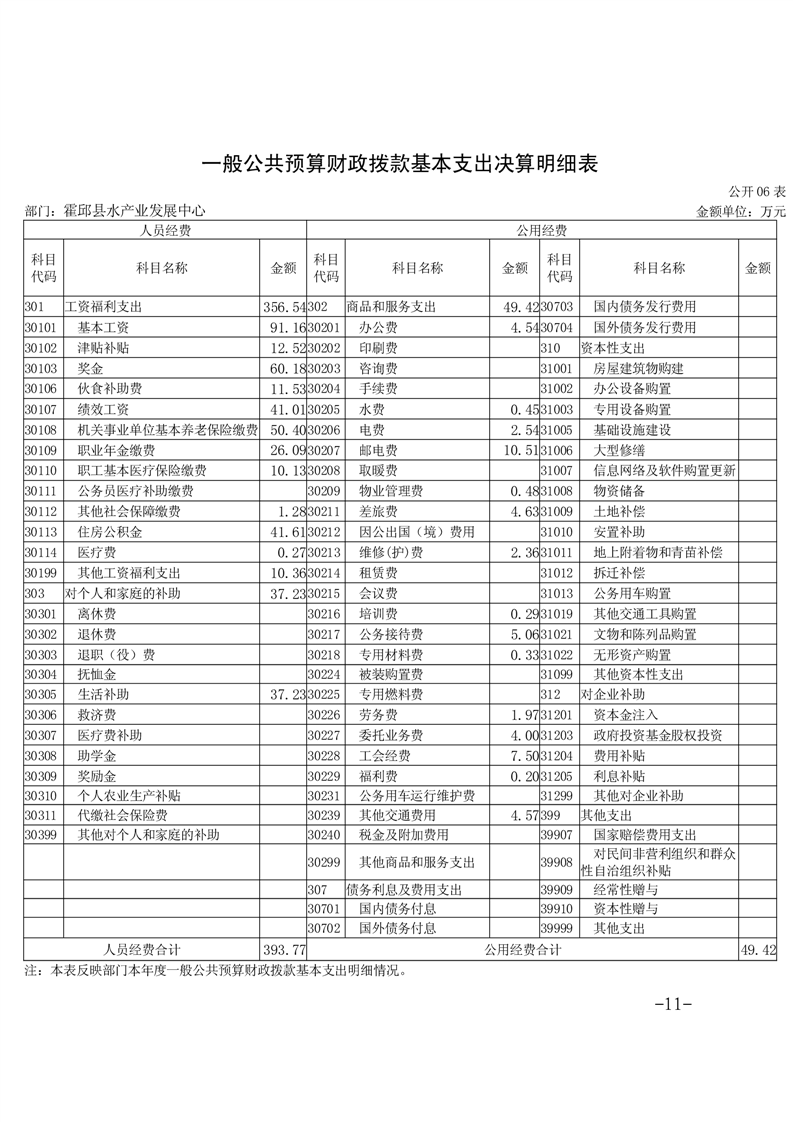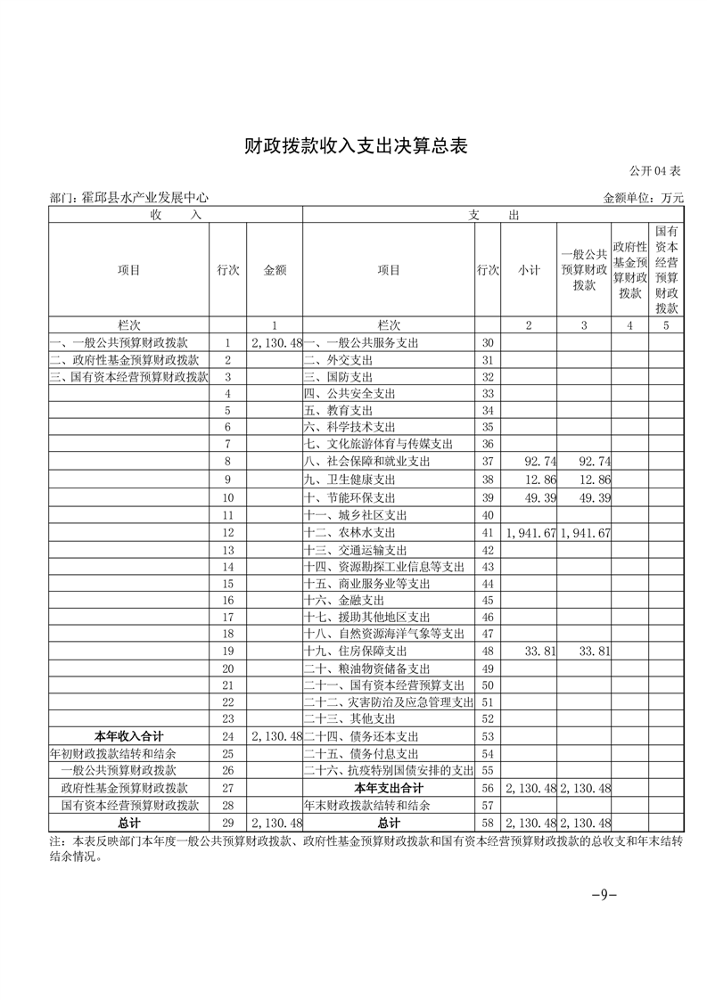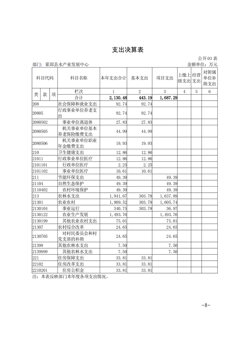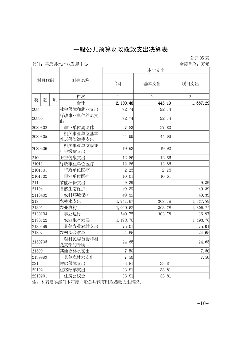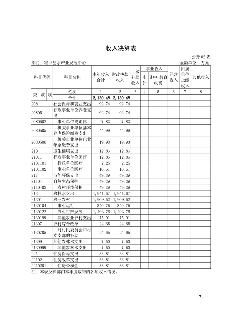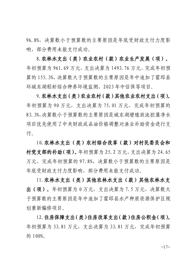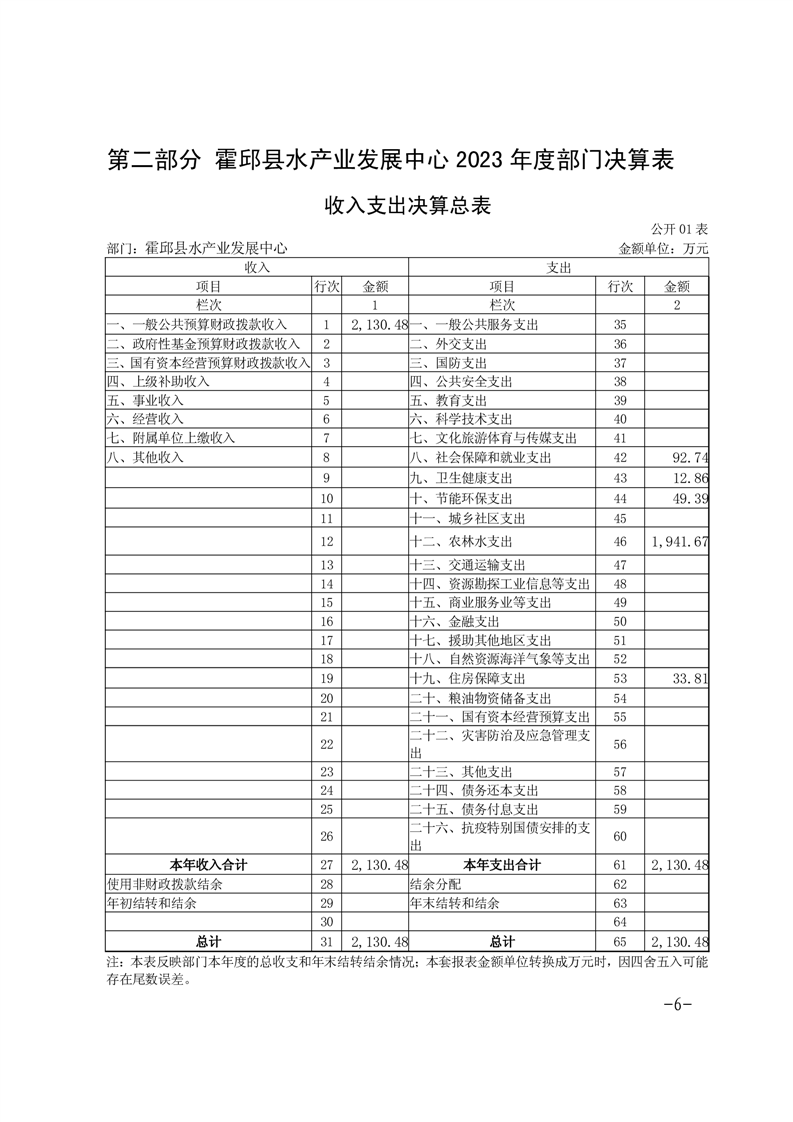 霍邱县水产业发展中心2023年度部门决算