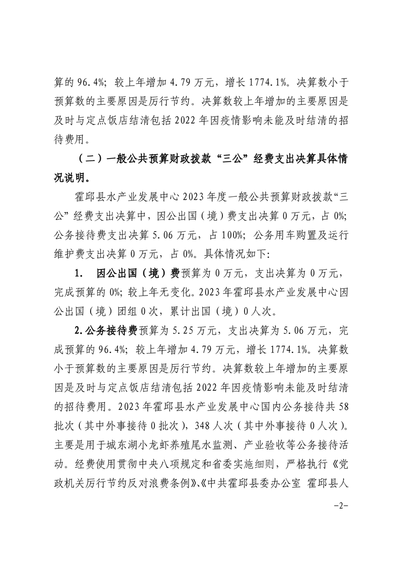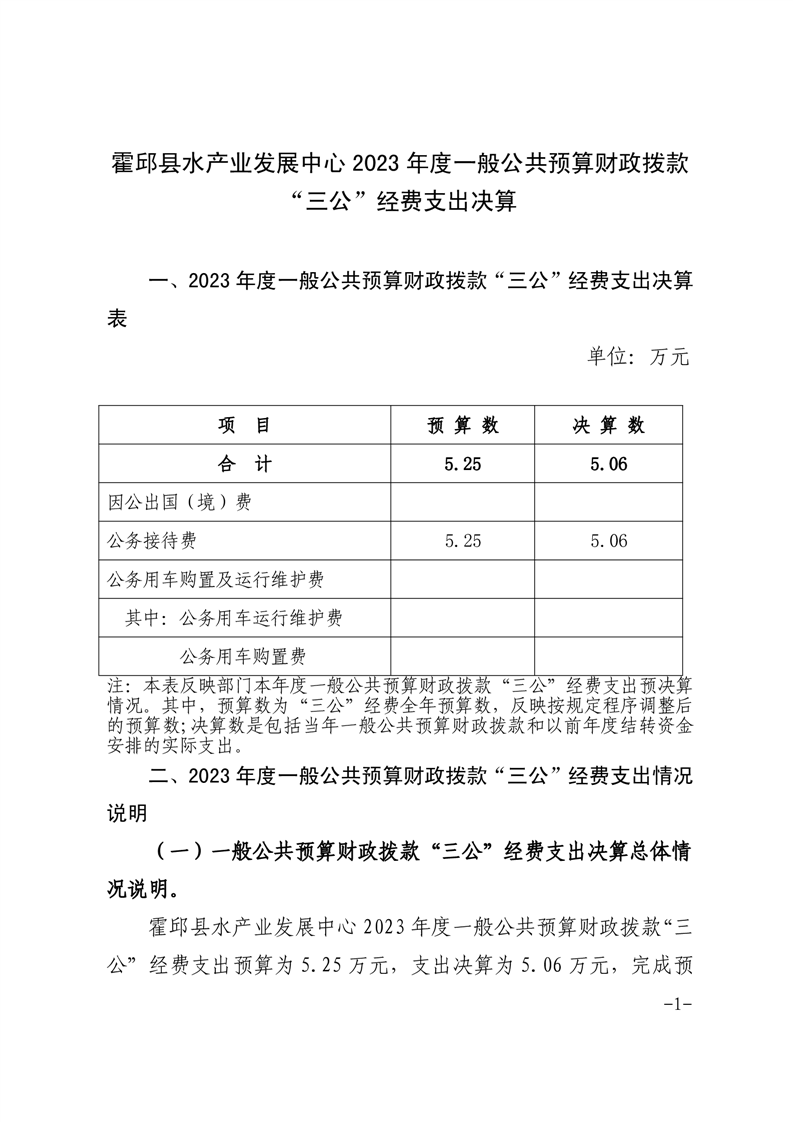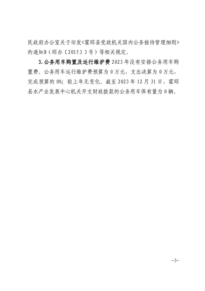 霍邱县水产业发展中心2023年度一般公共预算财政拨款“三公”经费支出决算
