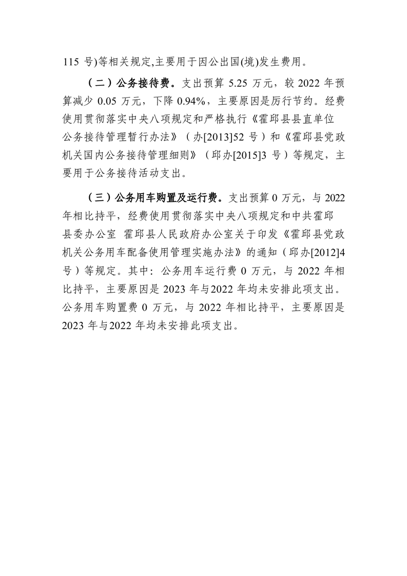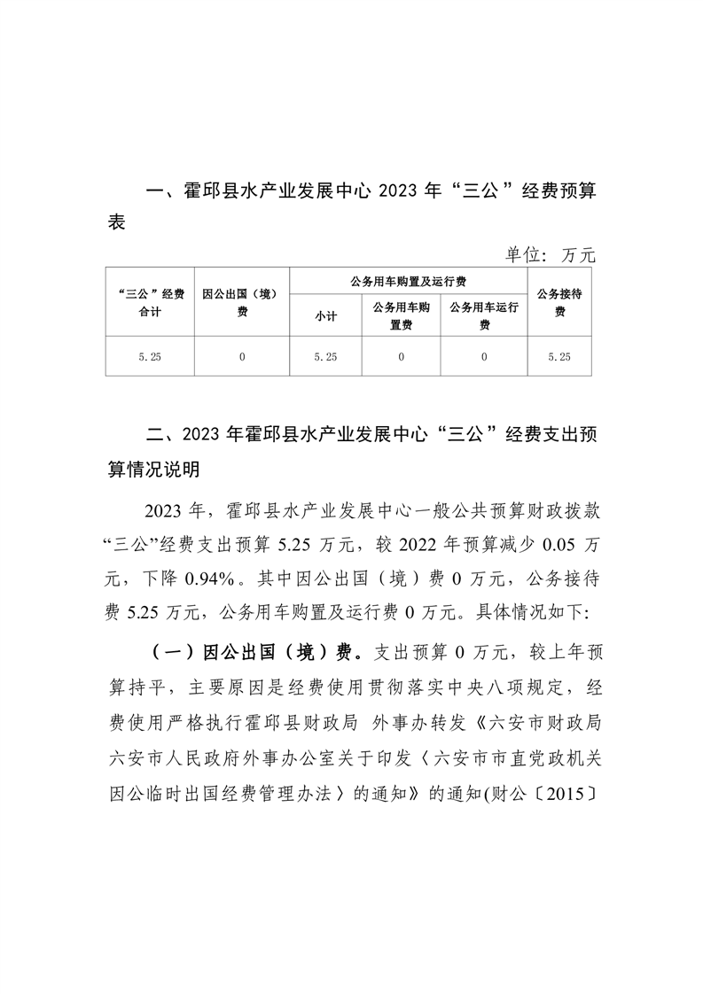 霍邱县水产业发展中心 2023 年一般公共预算安排“三 公 ”经费情况