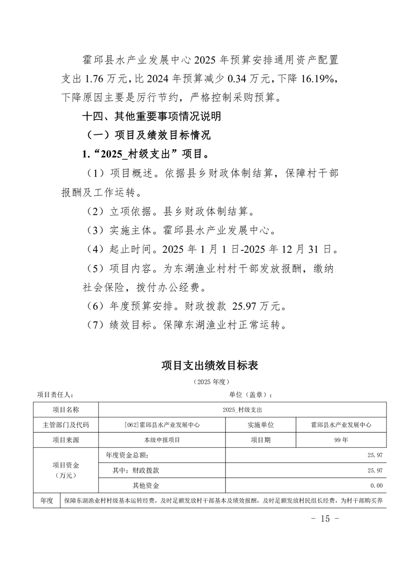 附件3:2025年霍邱县水产业发展中心项目支出绩效目标公开_20250227090407(1).pdf