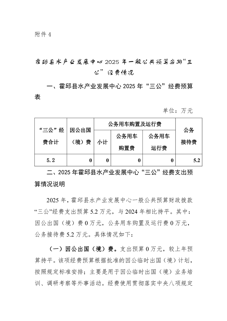 霍邱县水产业发展中心 2025 年一般公共预算“三公”经费预算