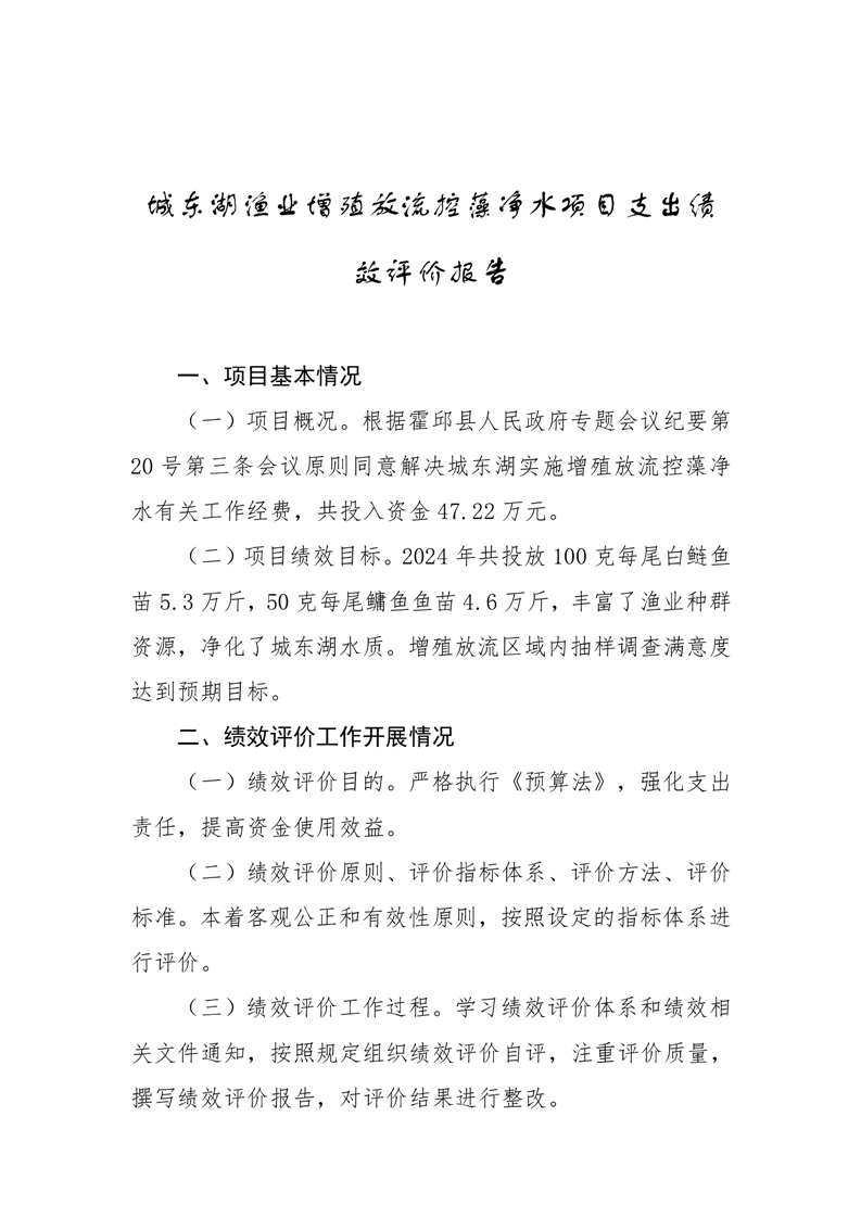 霍邱县水产业发展中心2024年项目支出绩效评价报告