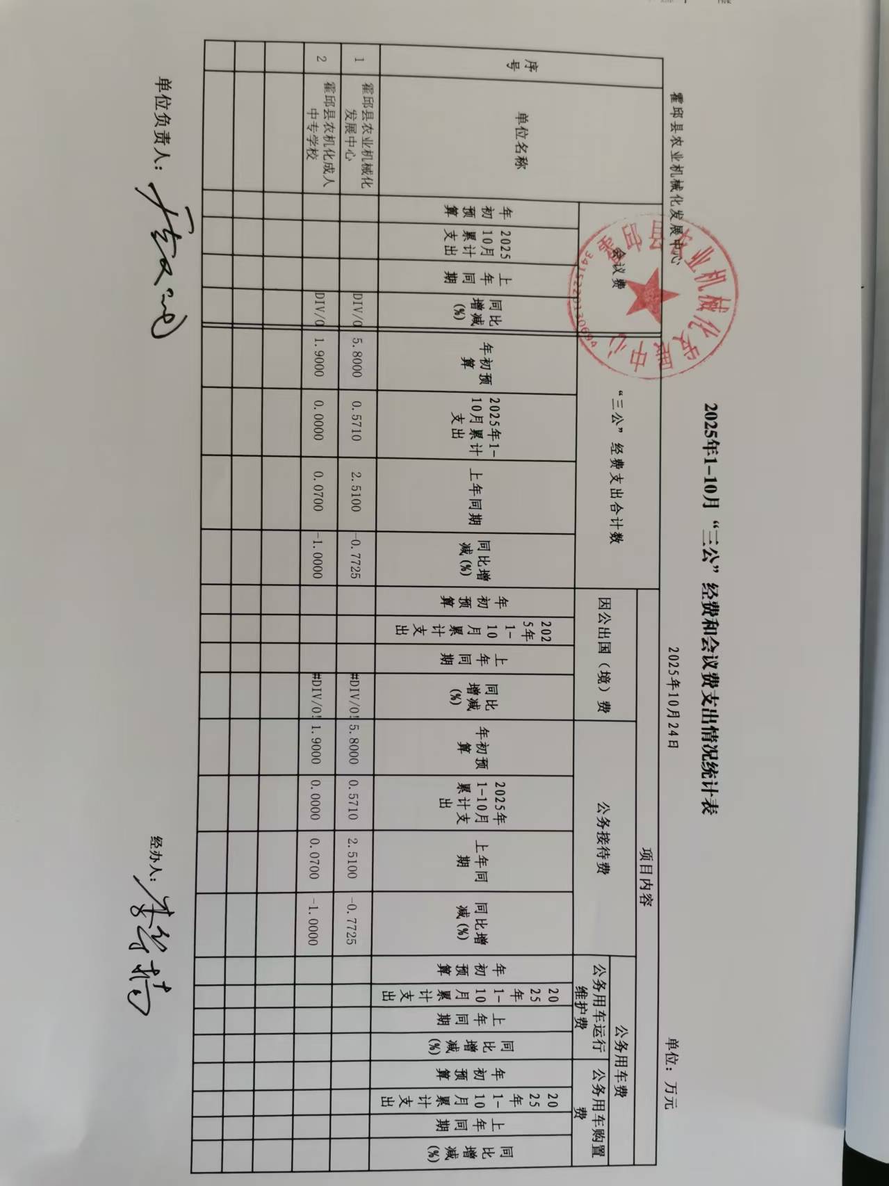 霍邱县农业机械化发展中心2025年1-10月“三公”经费