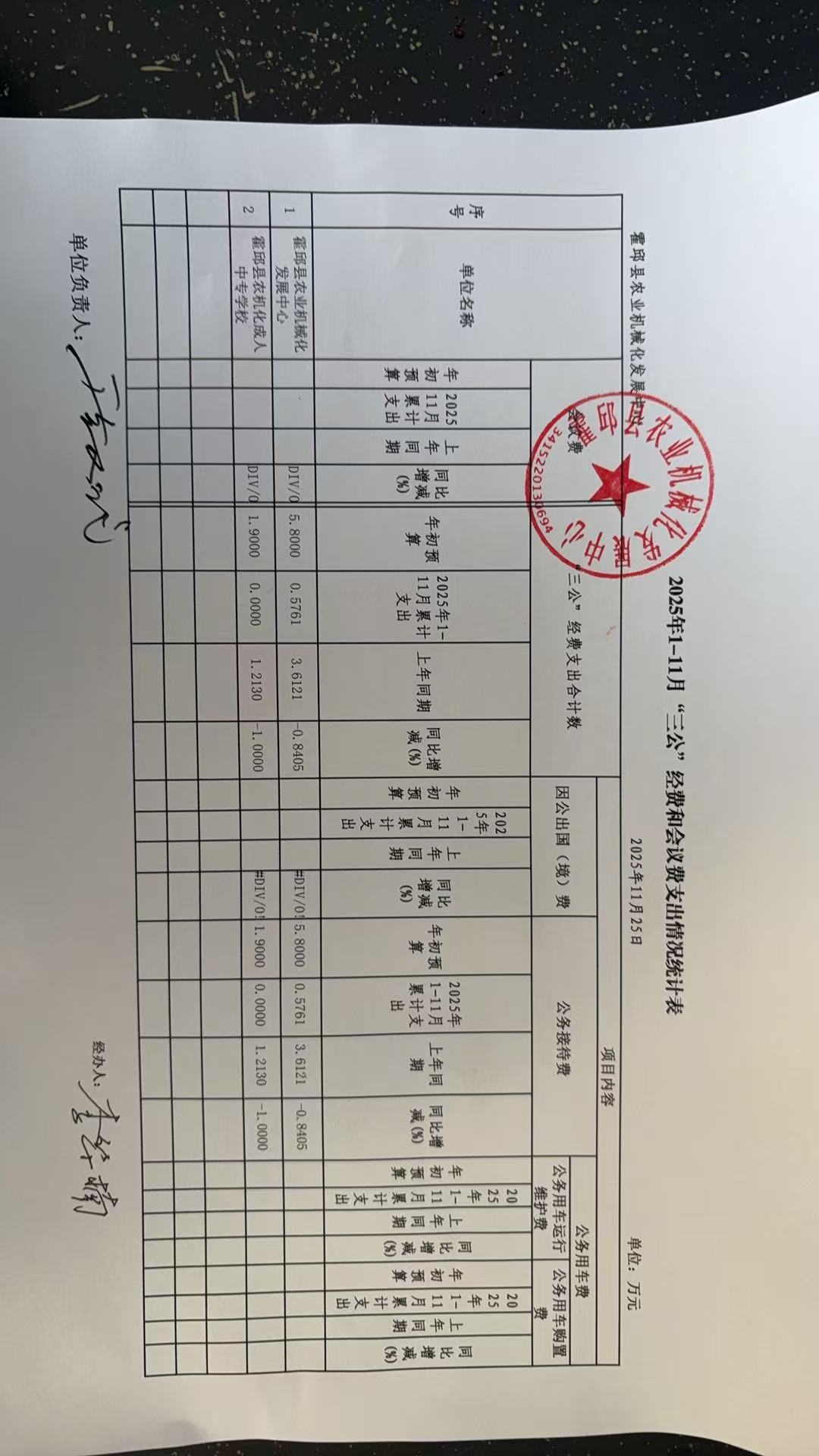 霍邱县农业机械化发展中心2025年1-11月“三公”经费