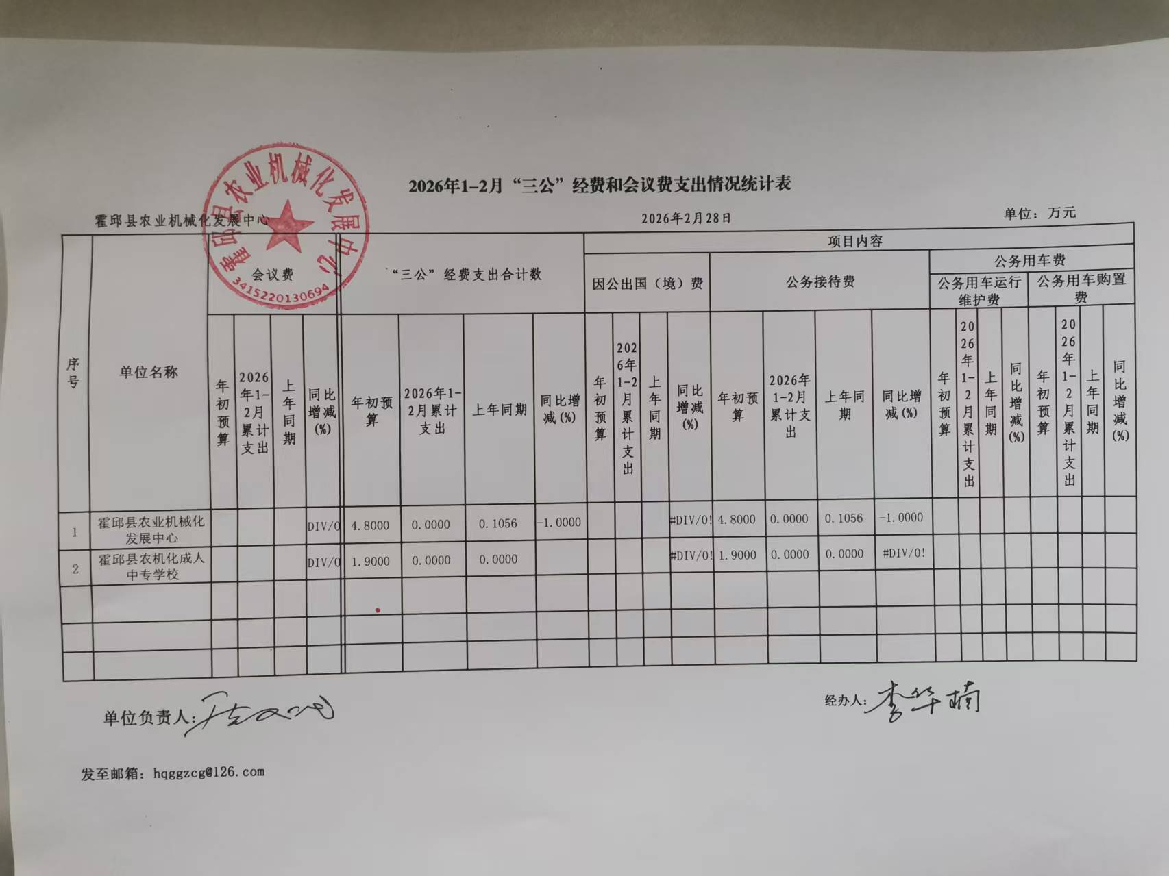 霍邱县农业机械化发展中心2026年1-2月“三公”经费