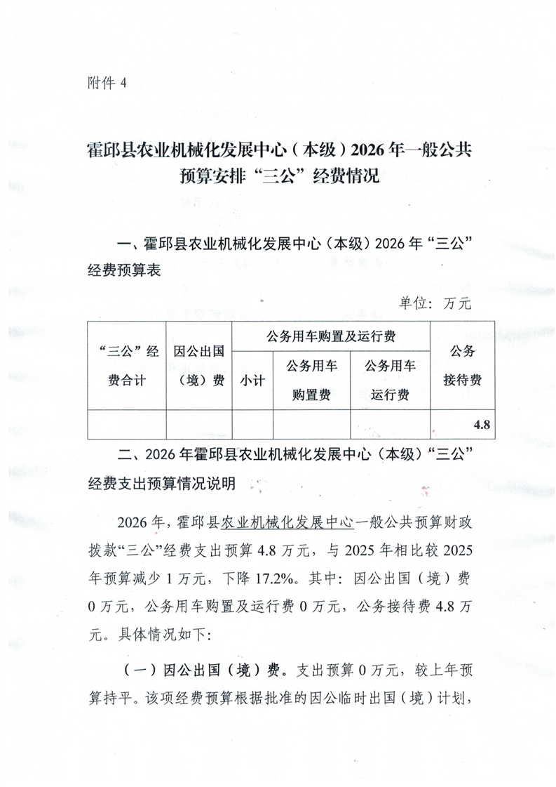 霍邱县农业机械化发展中心(本级)2026年一般公共预算安排“三公”经费情况