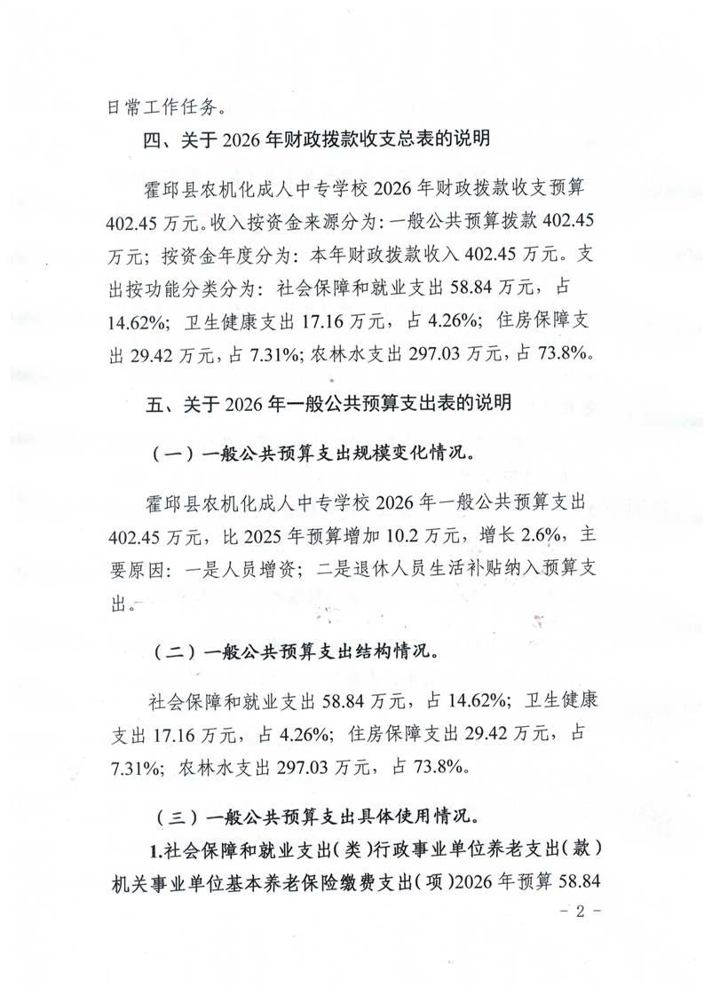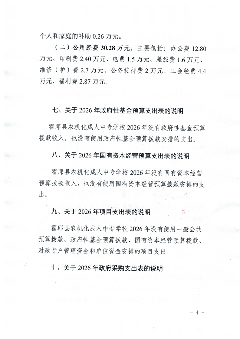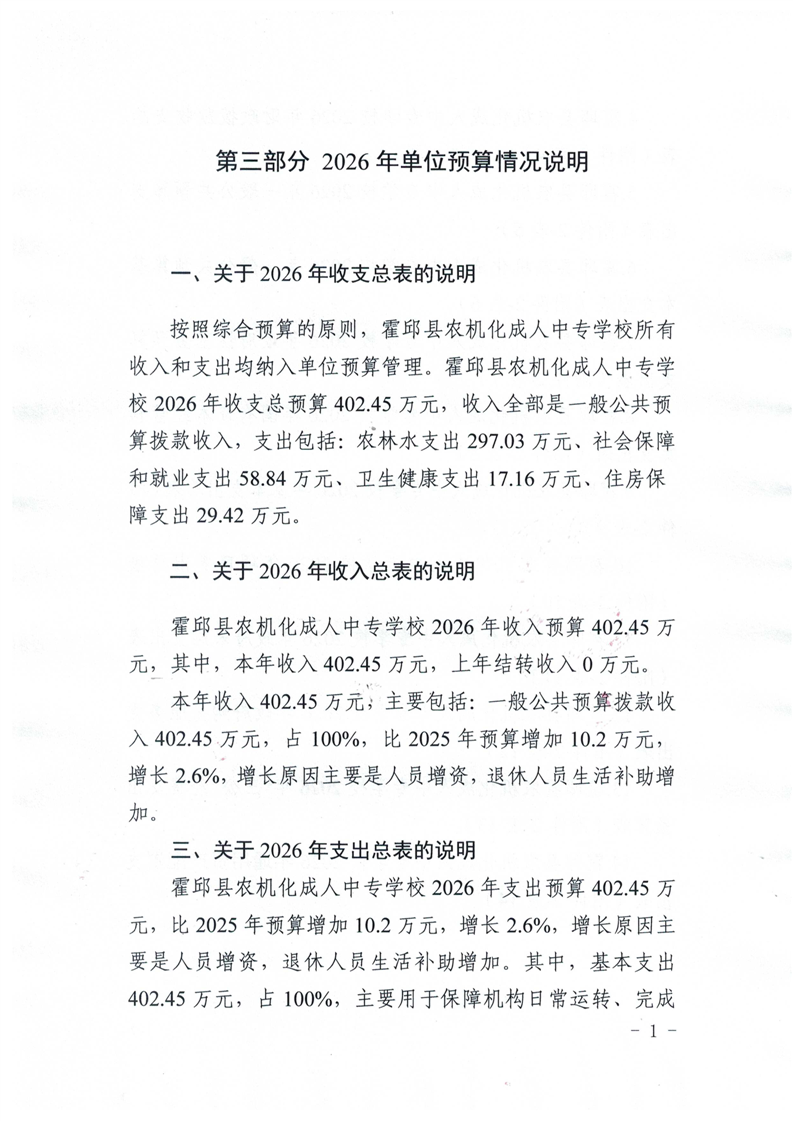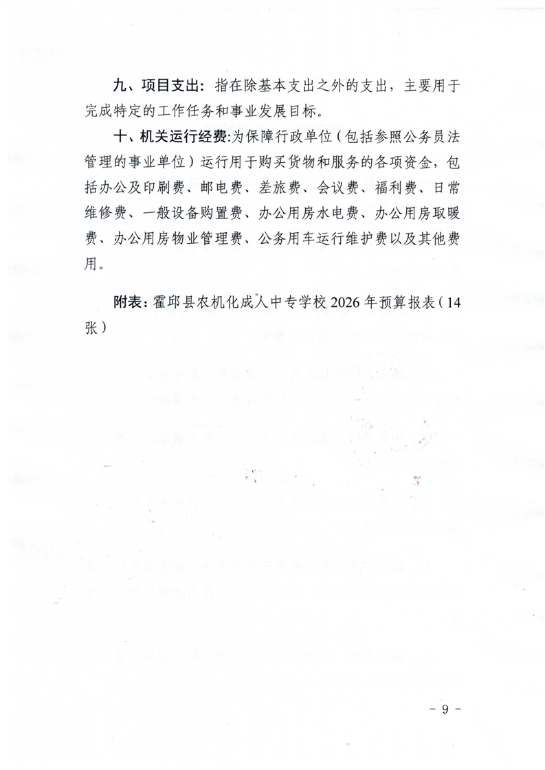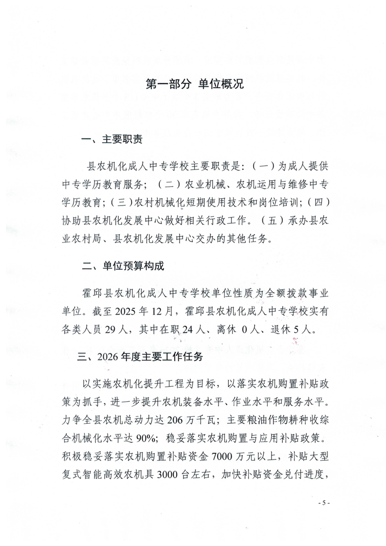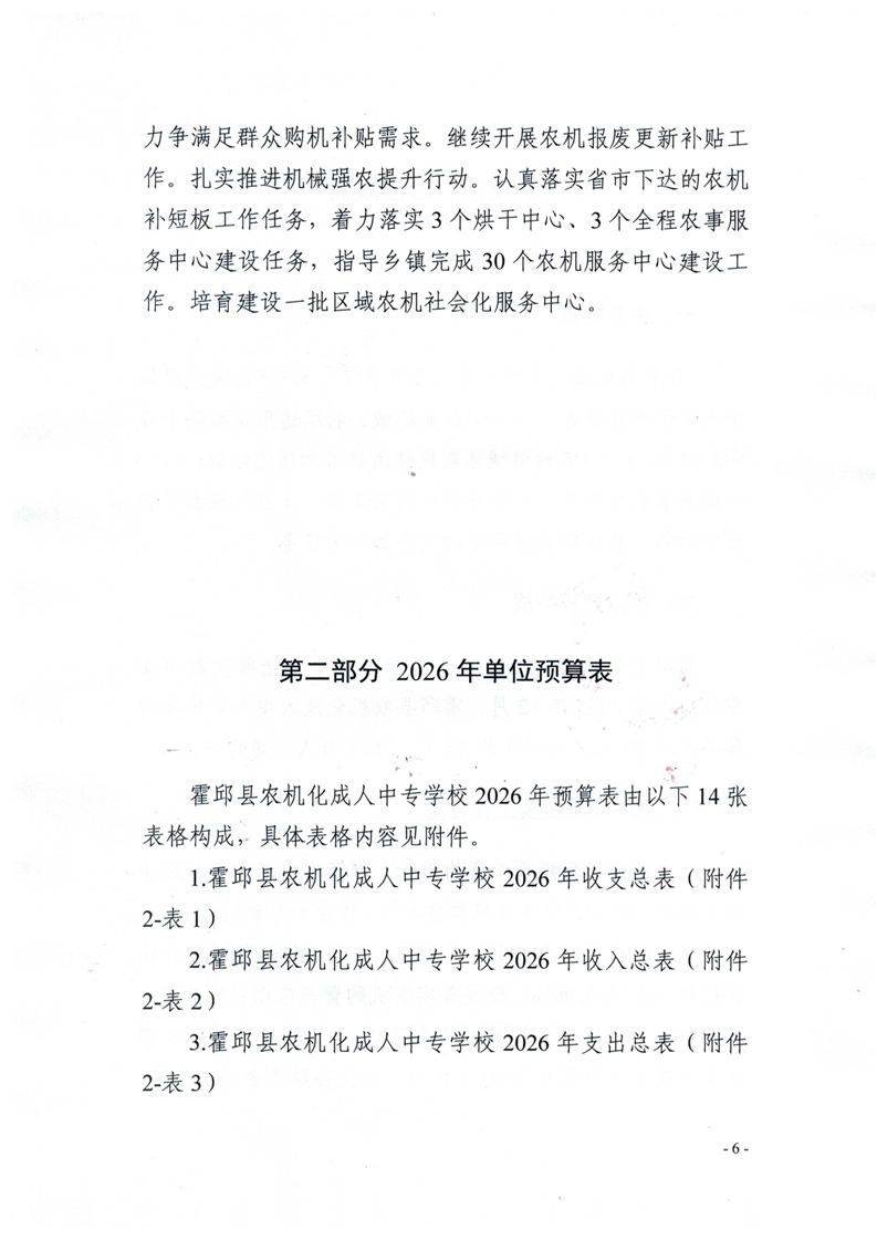霍邱县农机化成人中专学校2026年单位预算公开