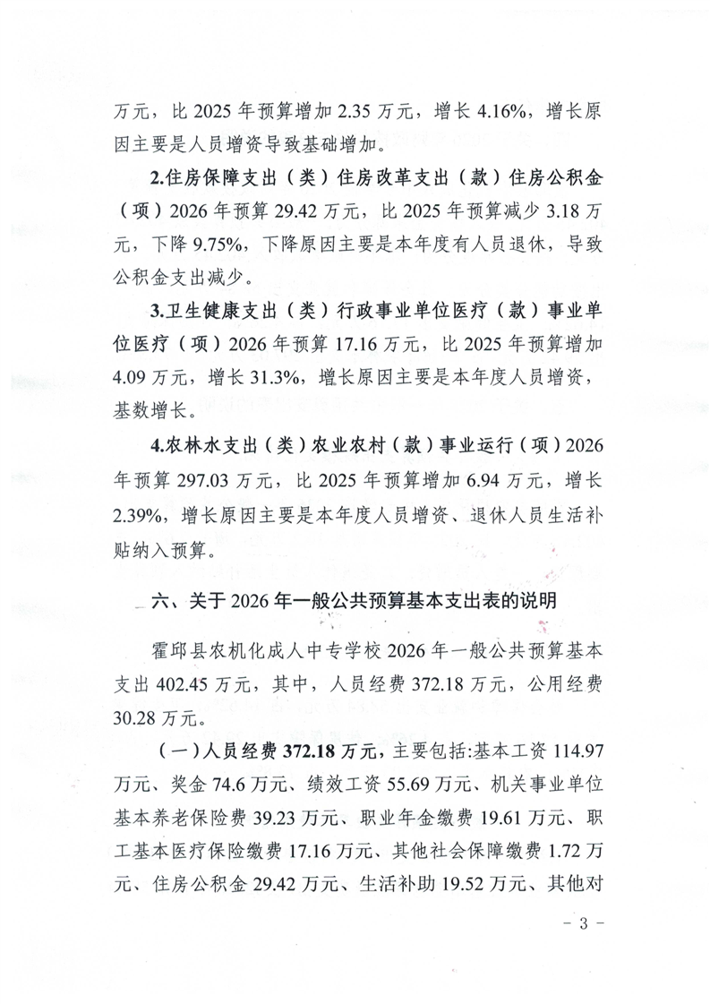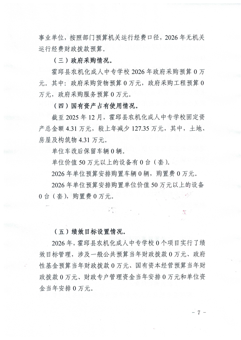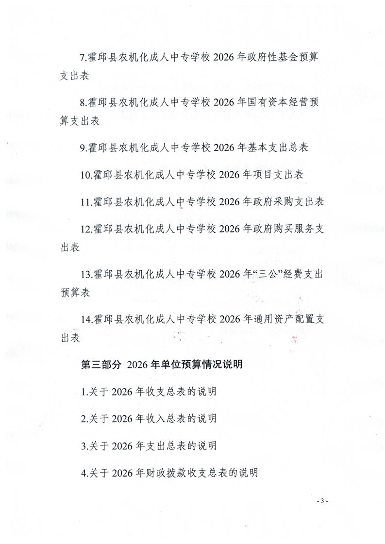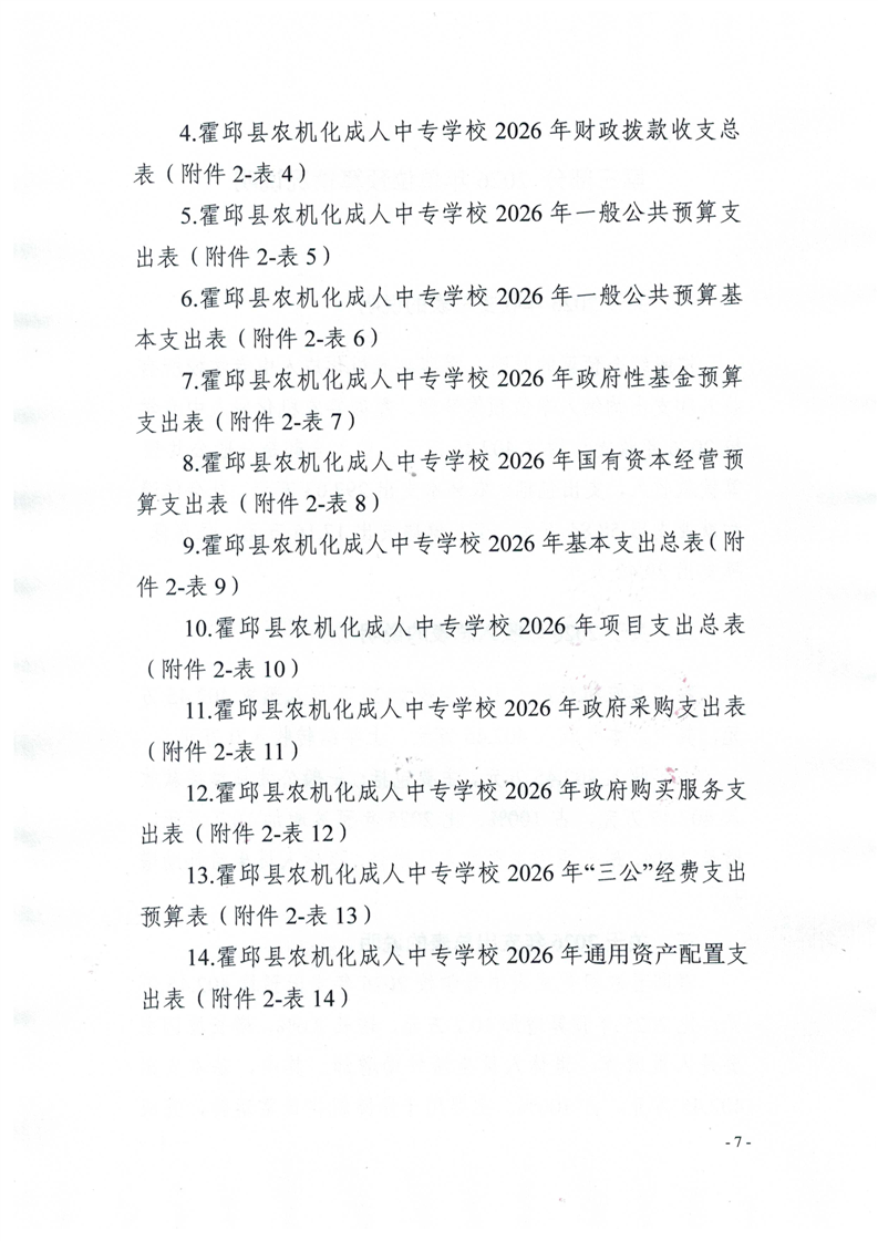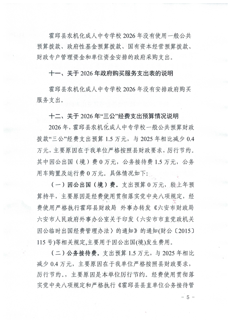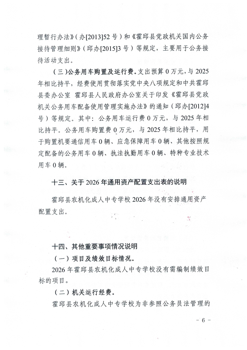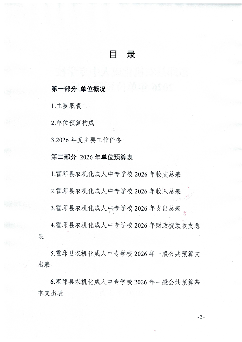 霍邱县农机化成人中专学校2026年单位预算公开