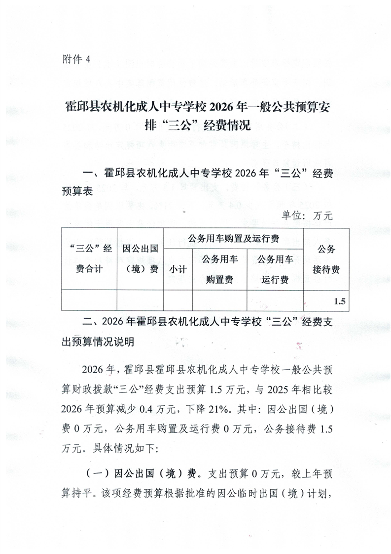 霍邱县农机化成人中专学校2026年一般公共预算安排“三公”经费情况