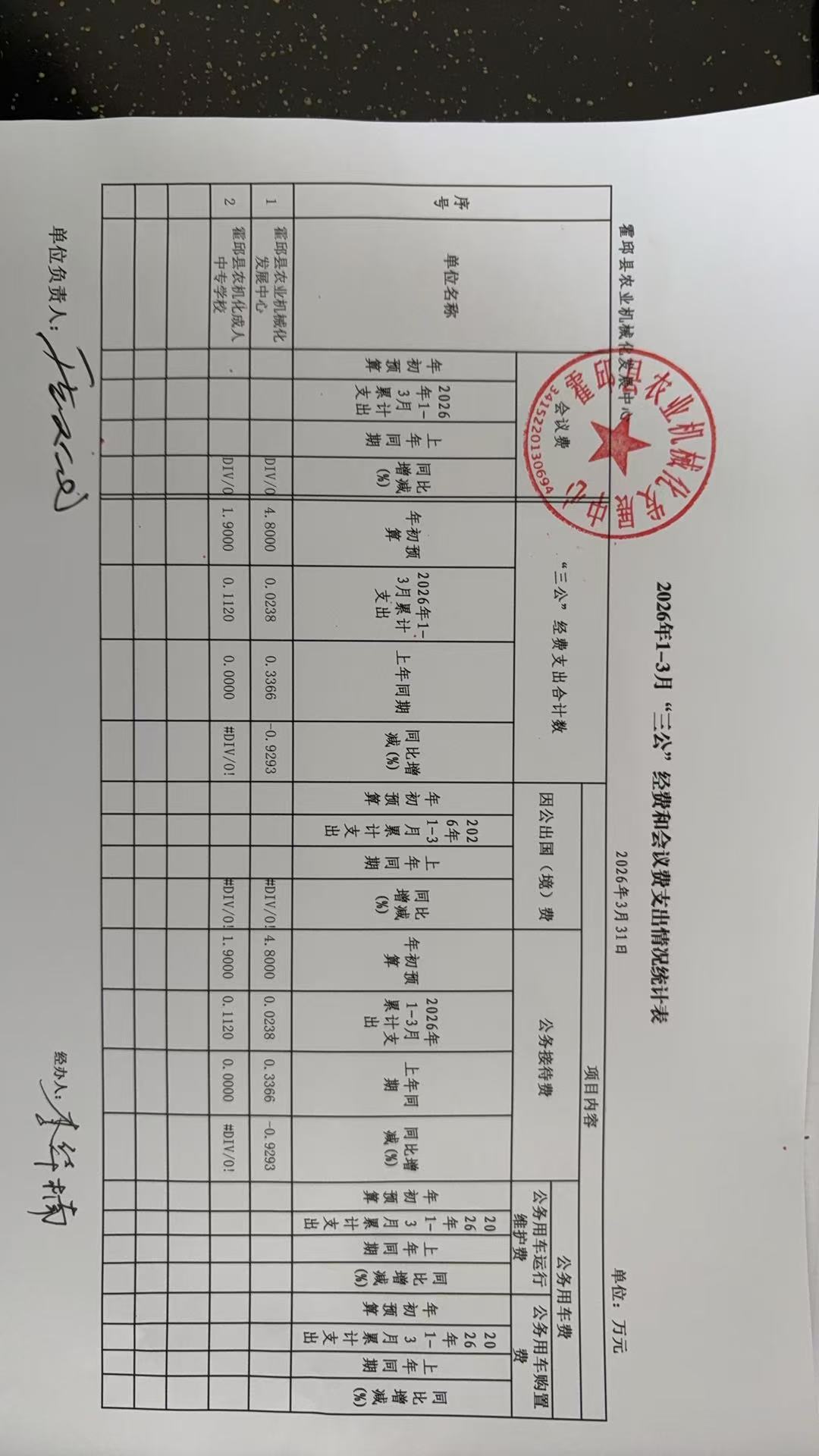 霍邱县农业机械化发展中心2026年1-3月“三公”经费