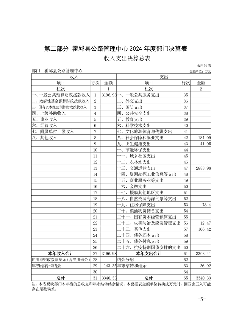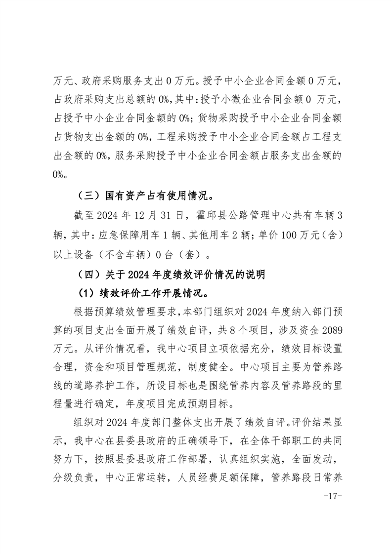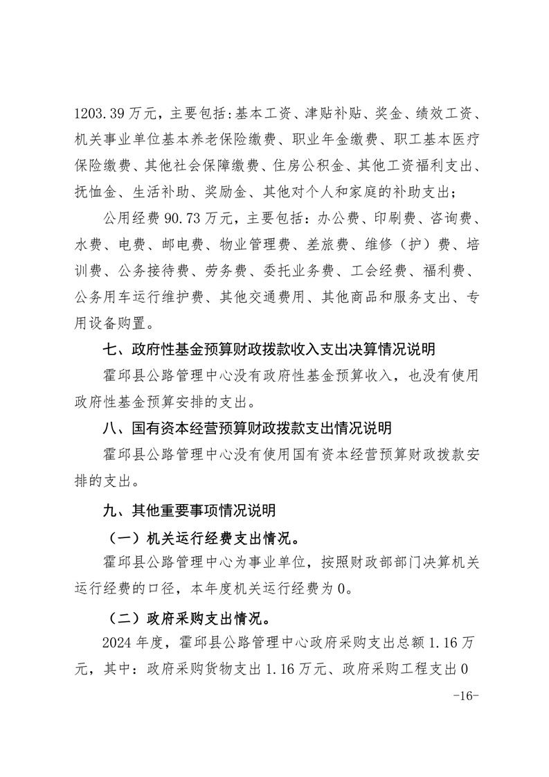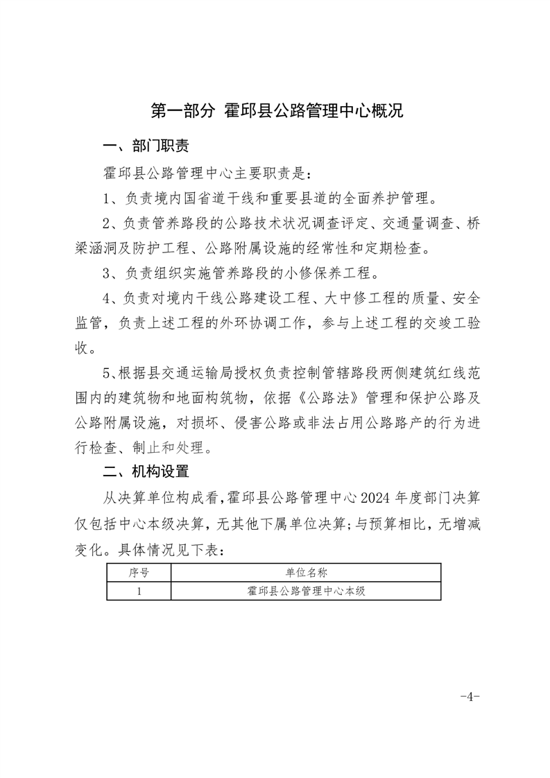 霍邱县公路管理中心2024年度部门决算公开
