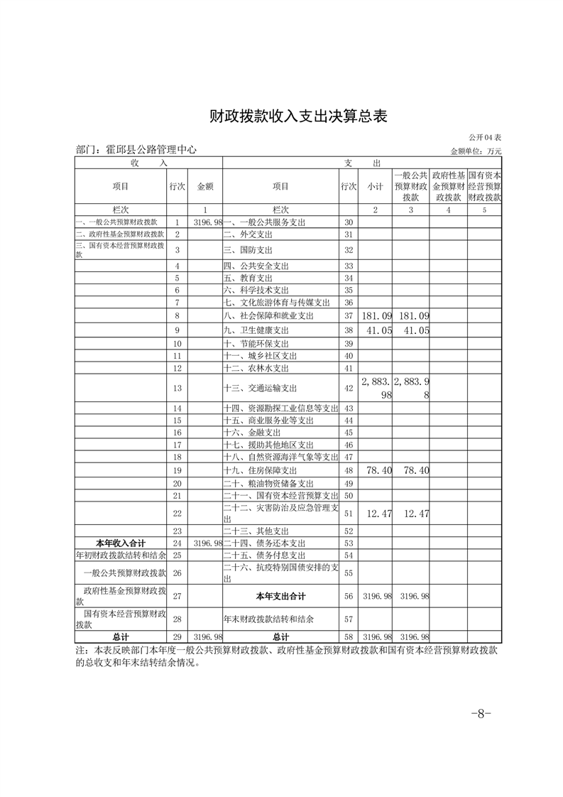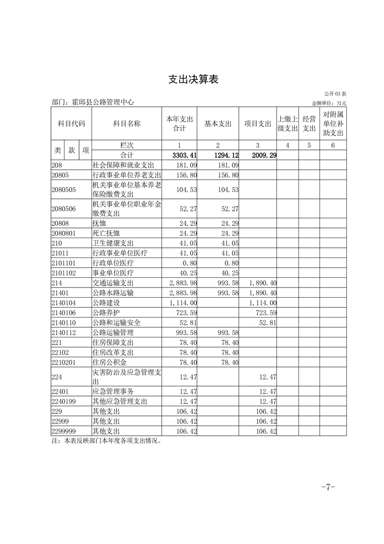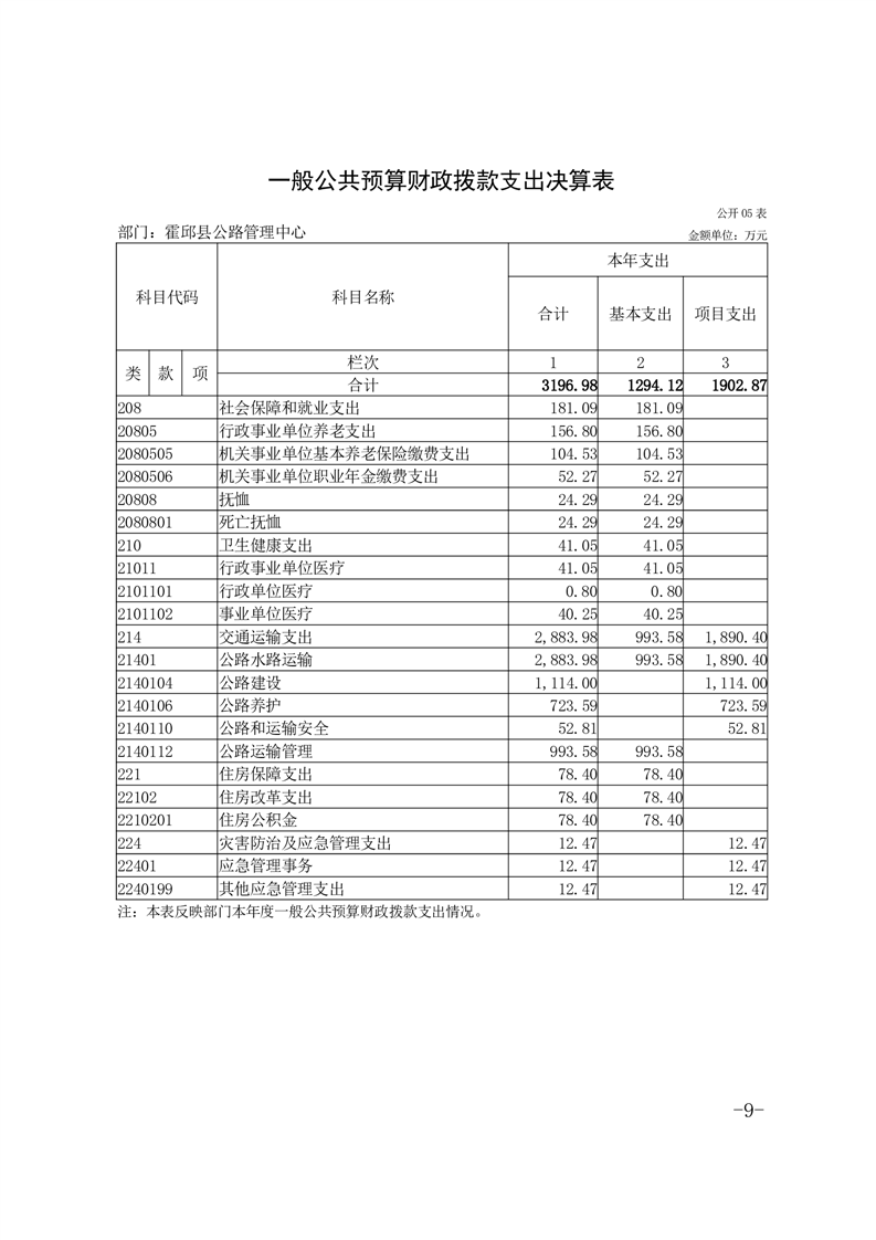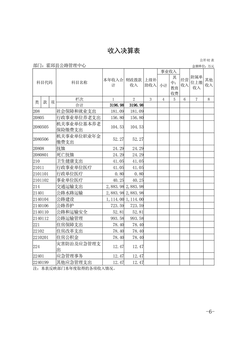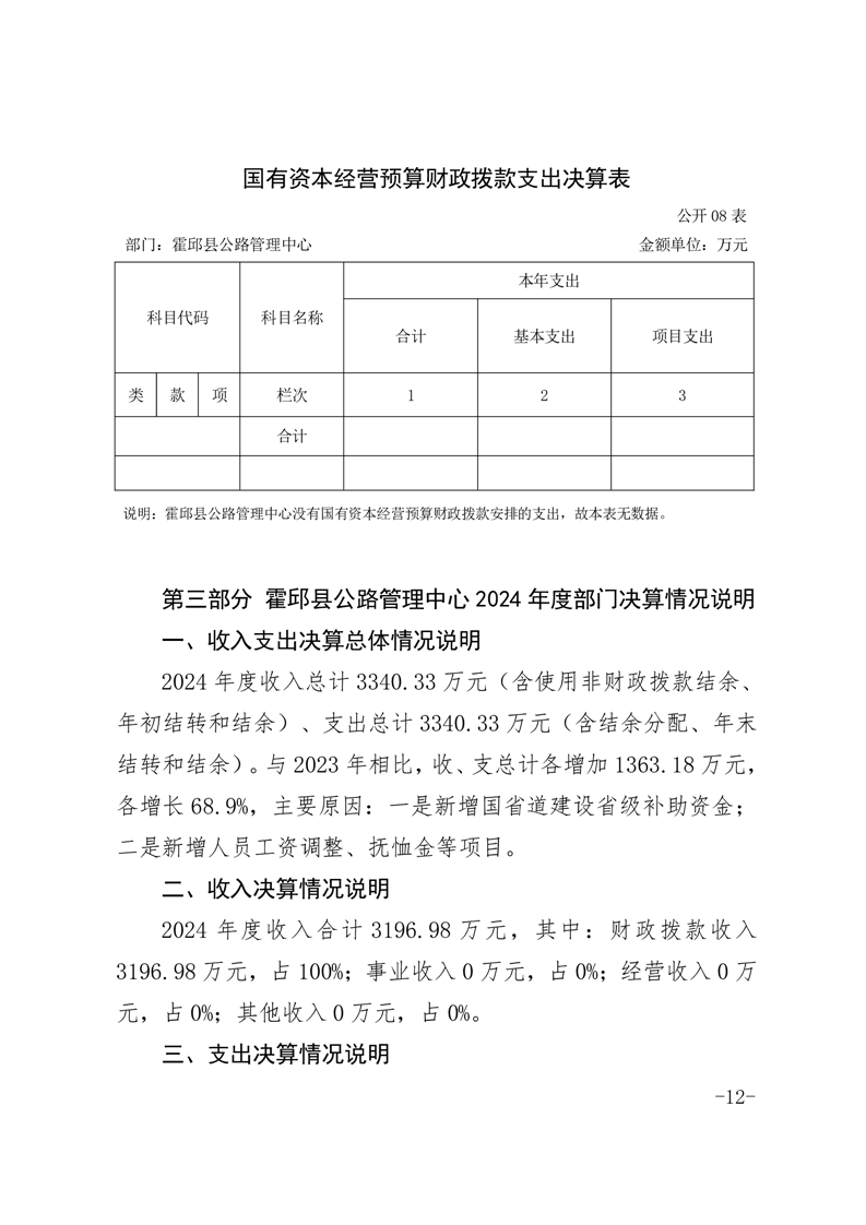 霍邱县公路管理中心2024年度部门决算公开